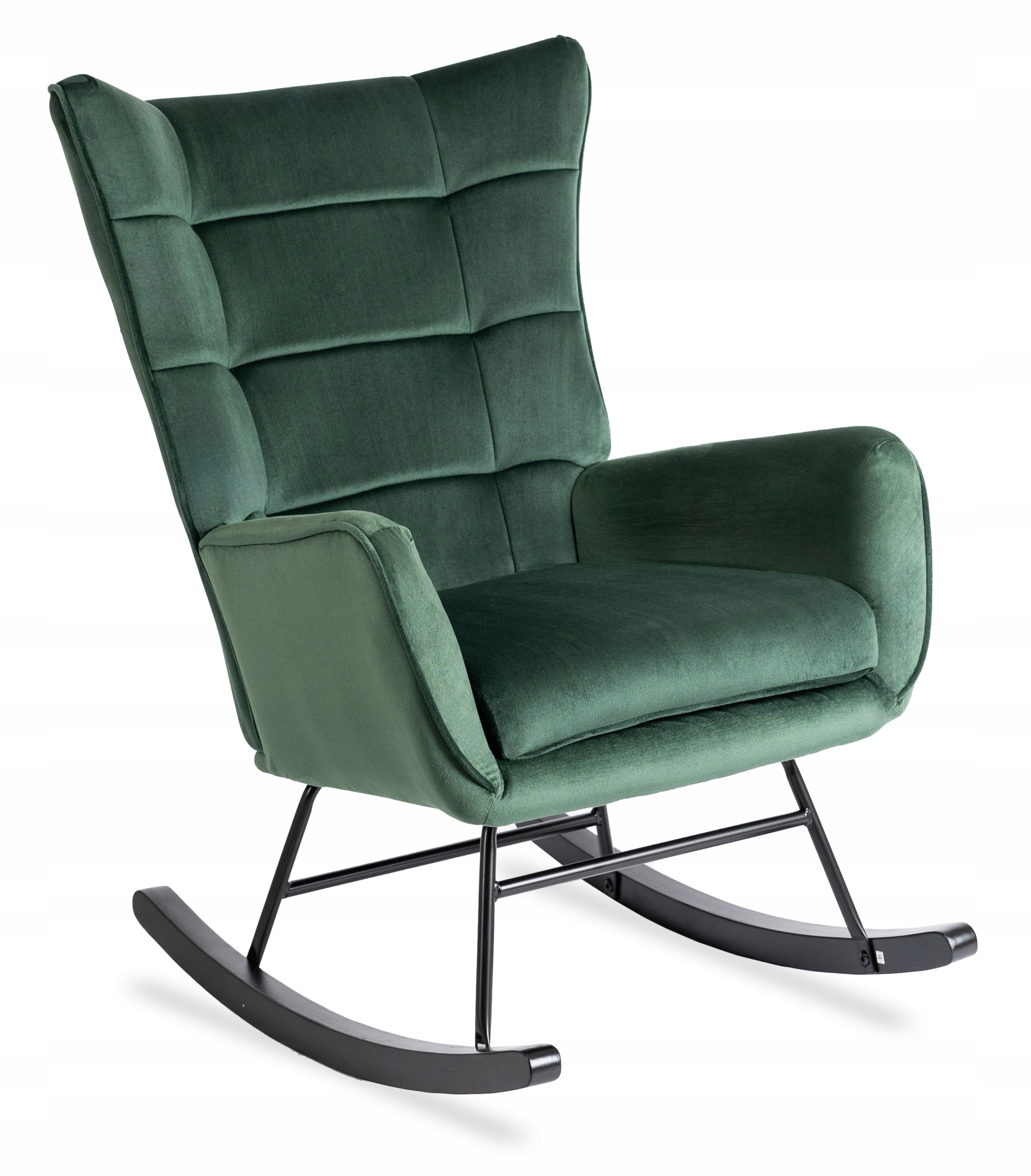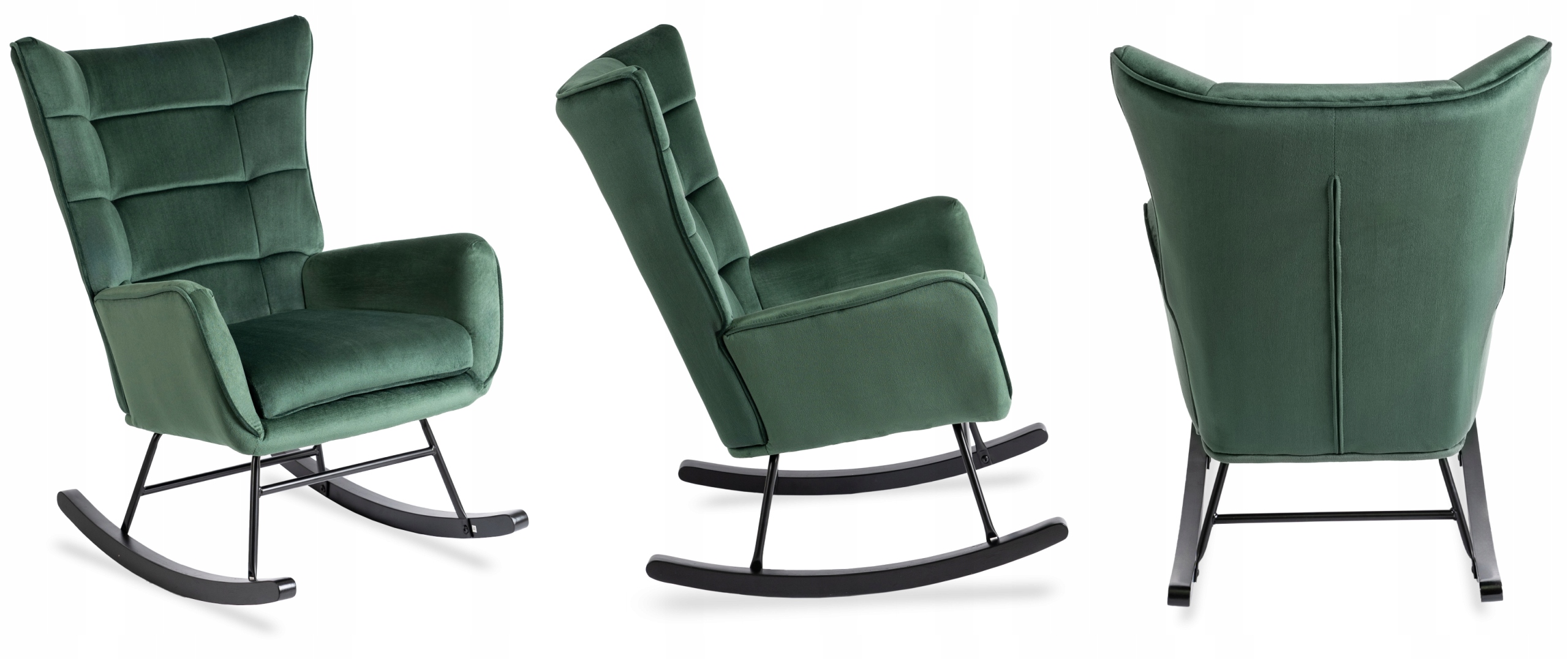 Fotel Bujany Na Biegunach Wypoczynkowy Welurowy Salon Loft Zielony JACKSON ⭐⭐⭐⭐⭐