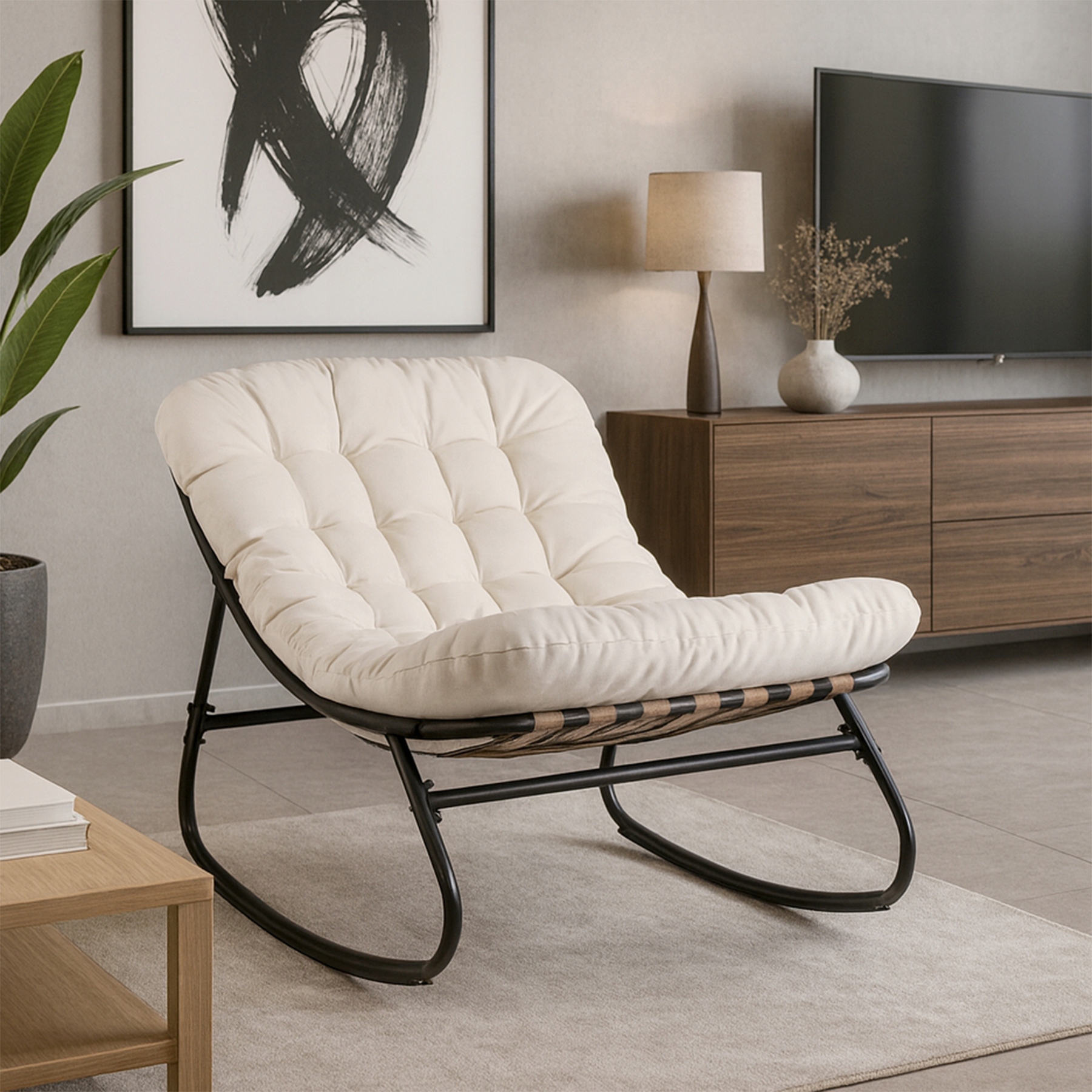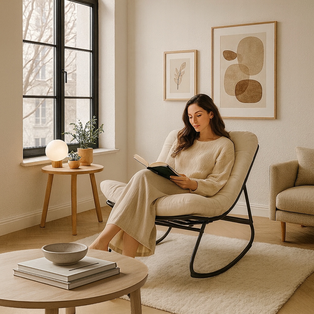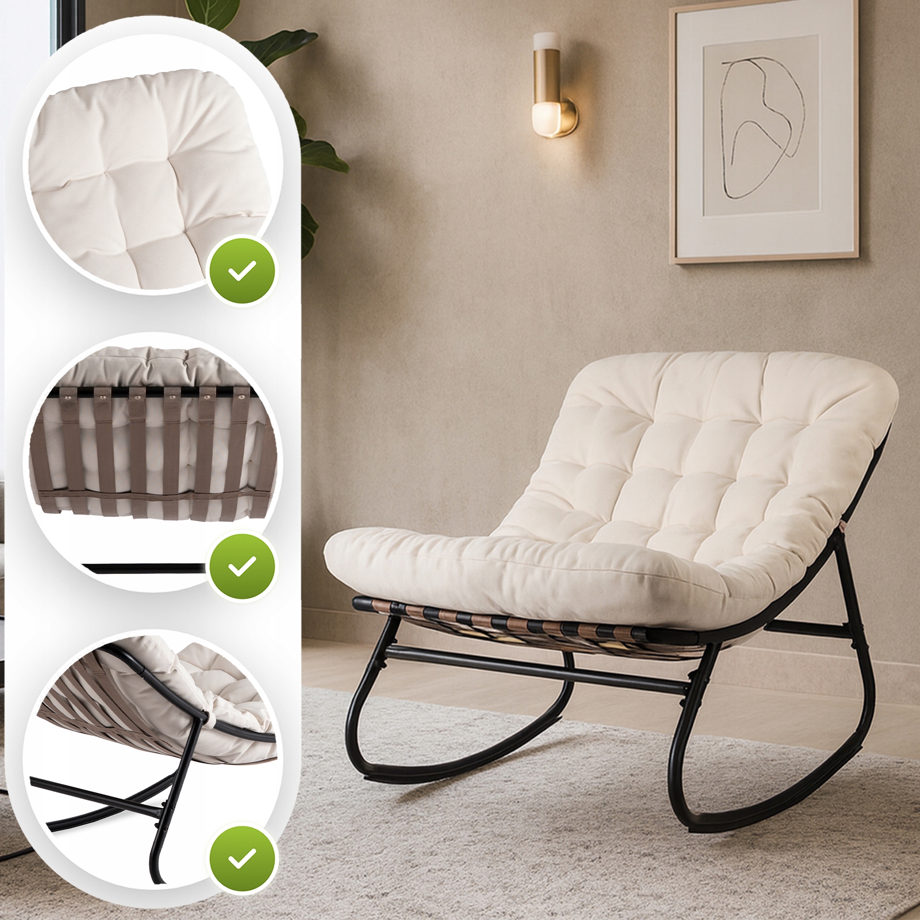 - Dla miłośników czytania – wygodne, głębokie siedzisko i delikatne bujanie sprzyjają długim chwilom z książką.