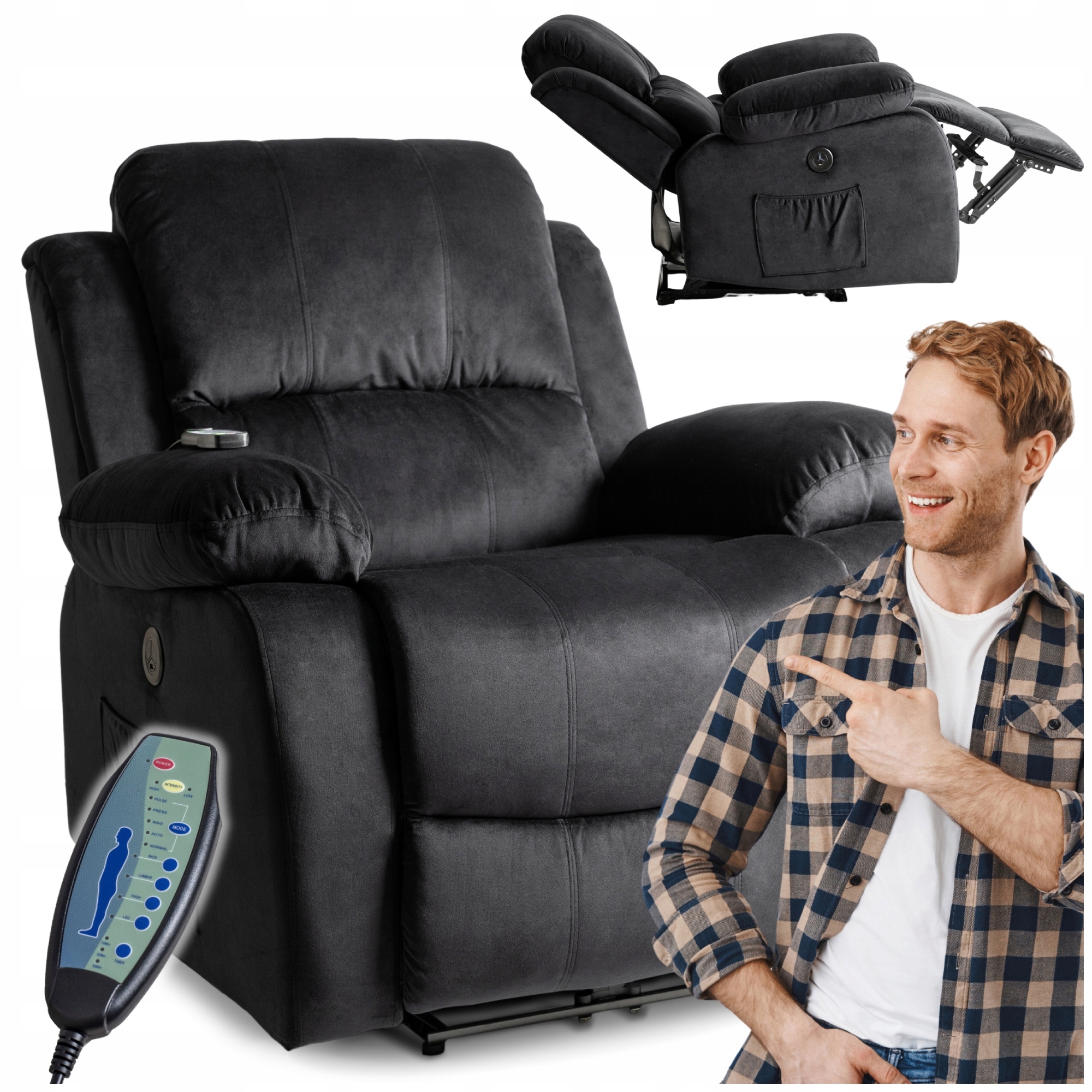 - Elektryczny fotel masujący ARON kolor czarny
