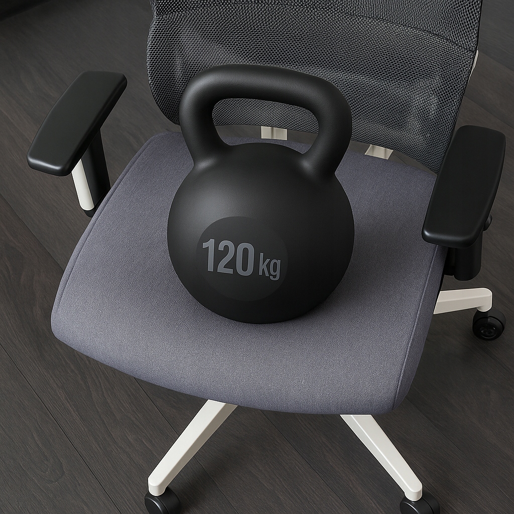 Stabilna konstrukcja oraz zastosowanie wysokiej jakości materiałów sprawiają, że krzesło bez problemu udźwignie obciążenie aż do 120 kg. Wytrzymały krzyżak zapewnia dodatkową stabilność i trwałość, co przekłada się na większe bezpieczeństwo i długowieczność nawet przy intensywnym użytkowaniu.