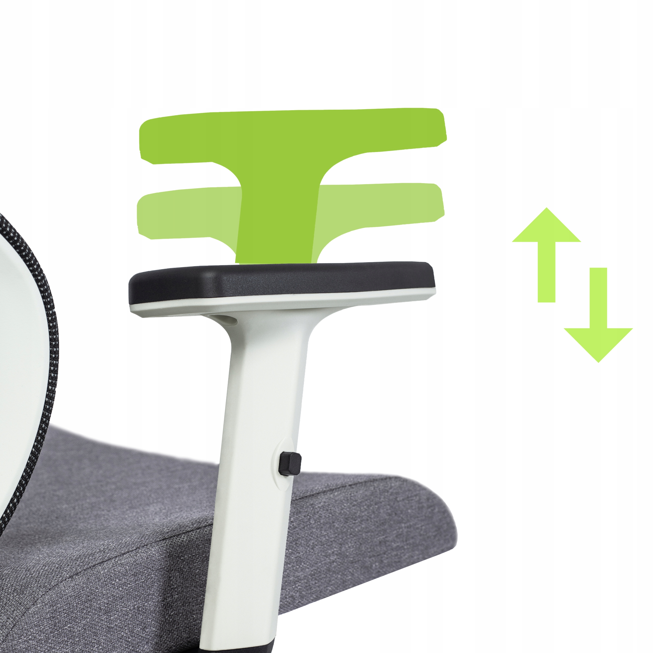Podłokietnik z regulacją góra–dół zapewnia komfort dopasowany do Twoich potrzeb. Dzięki łatwej obsłudze, możesz szybko dostosować jego wysokość. To idealne rozwiązanie dla osób ceniących ergonomię i wygodę podczas pracy.