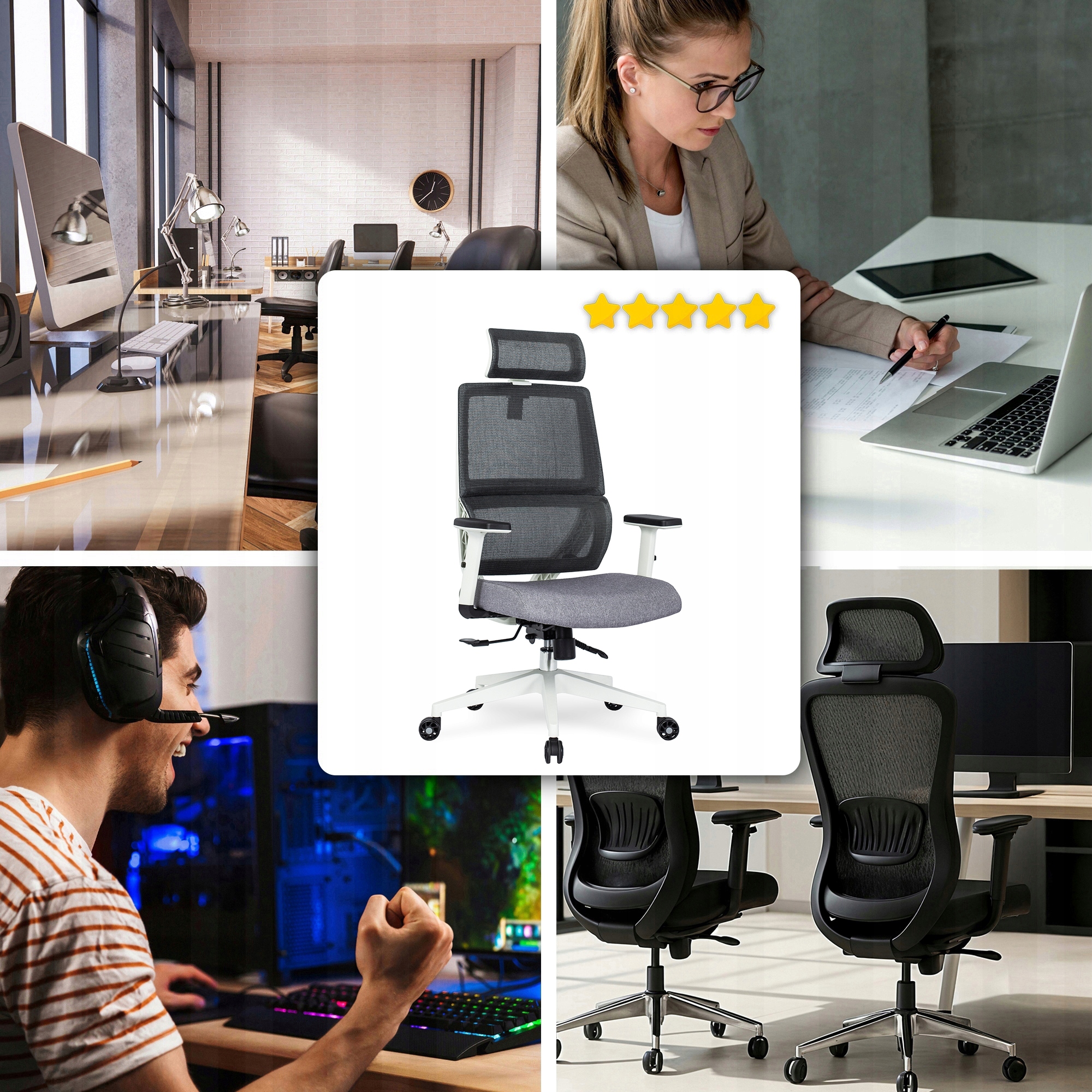 - Dla pracujących zdalnie – ergonomiczna konstrukcja i regulacja wysokości zapewniają wygodę nawet podczas wielogodzinnej pracy przy biurku.