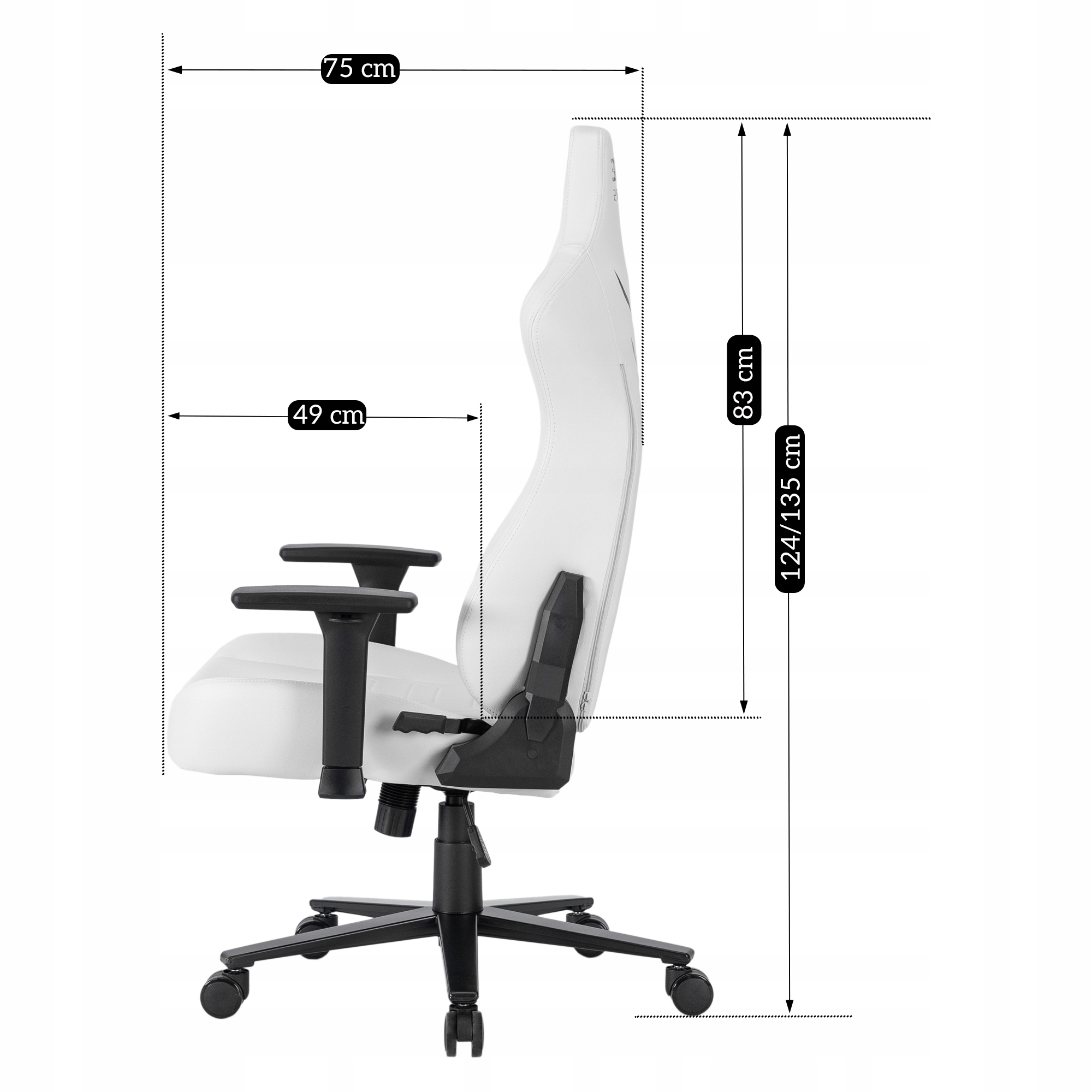 - Wysokość fotela: 124/135 cm