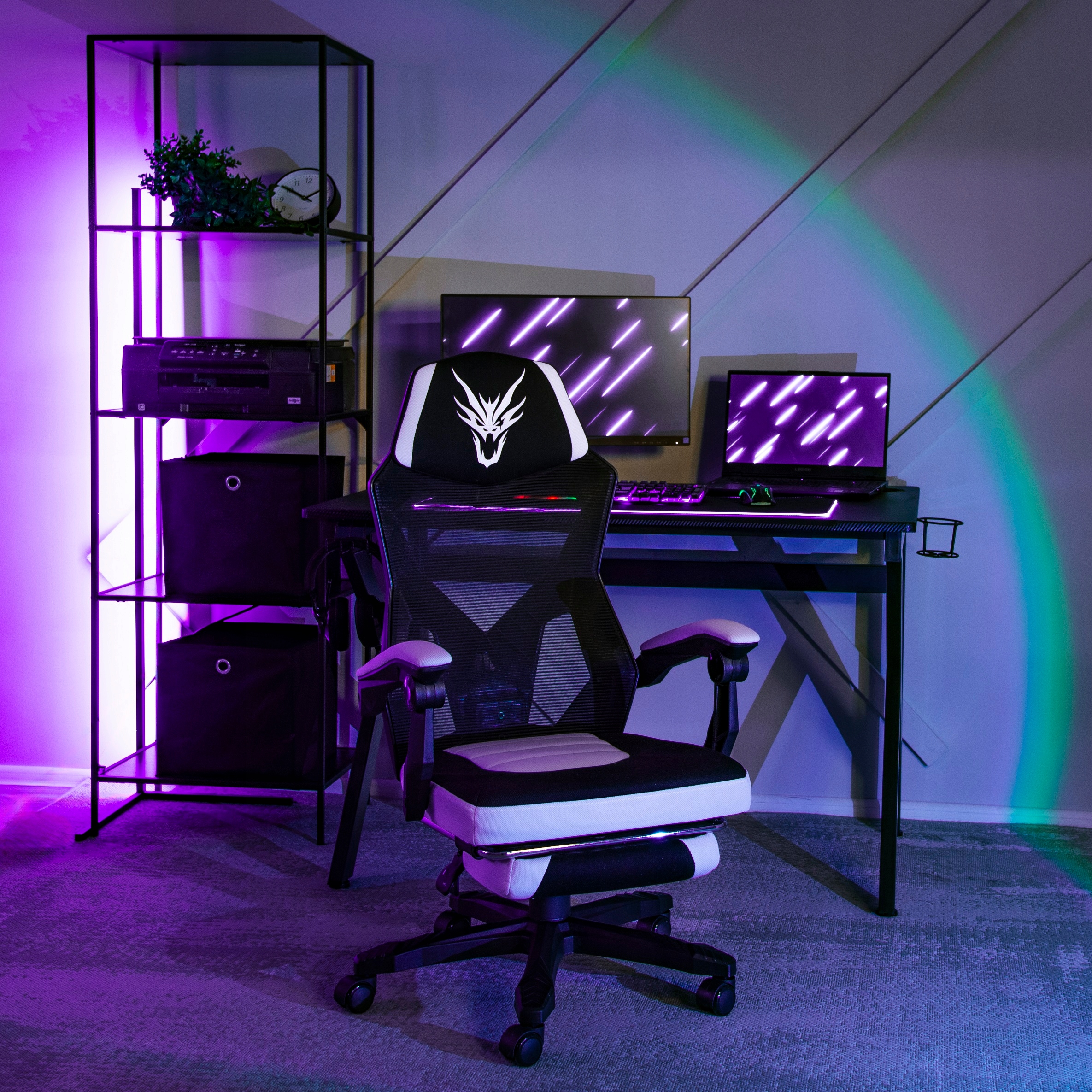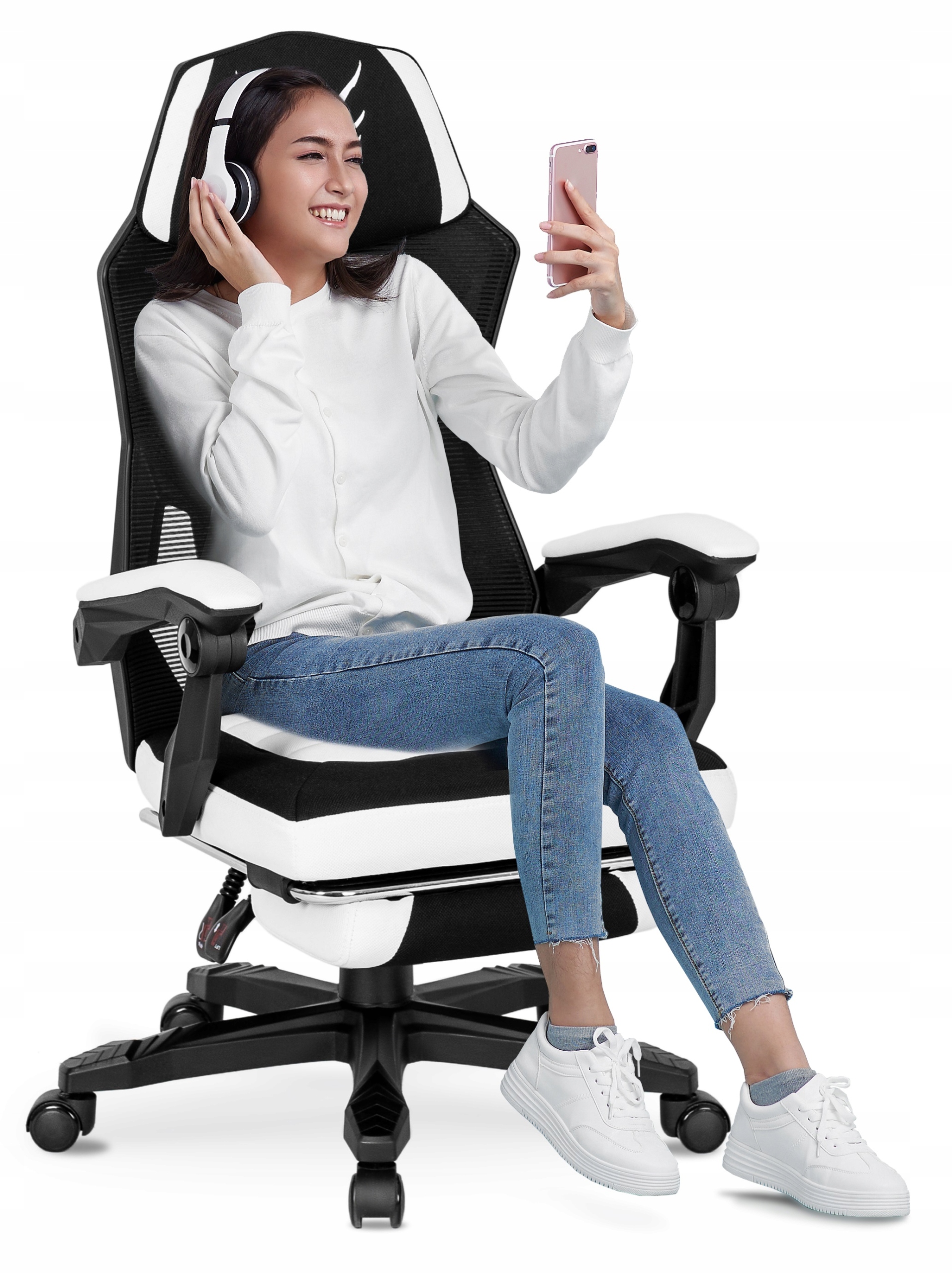Fotel Gamingowy Obrotowy Krzesło Biurowe z Podnóżkiem Czarny Biały BING ⭐⭐⭐⭐⭐