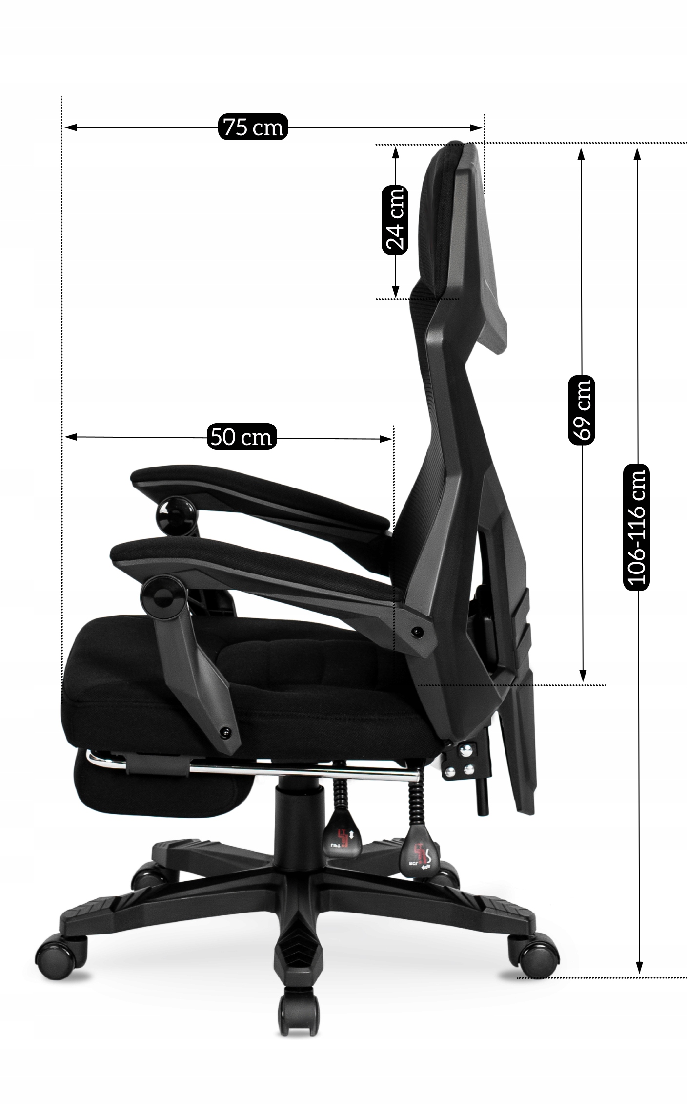 Bardzo praktyczny dodatek nie zawsze spotykany w fotelach obrotowych. Jeśli tylko chcesz to możesz wysunąć podnóżek i wyprostować nogi.