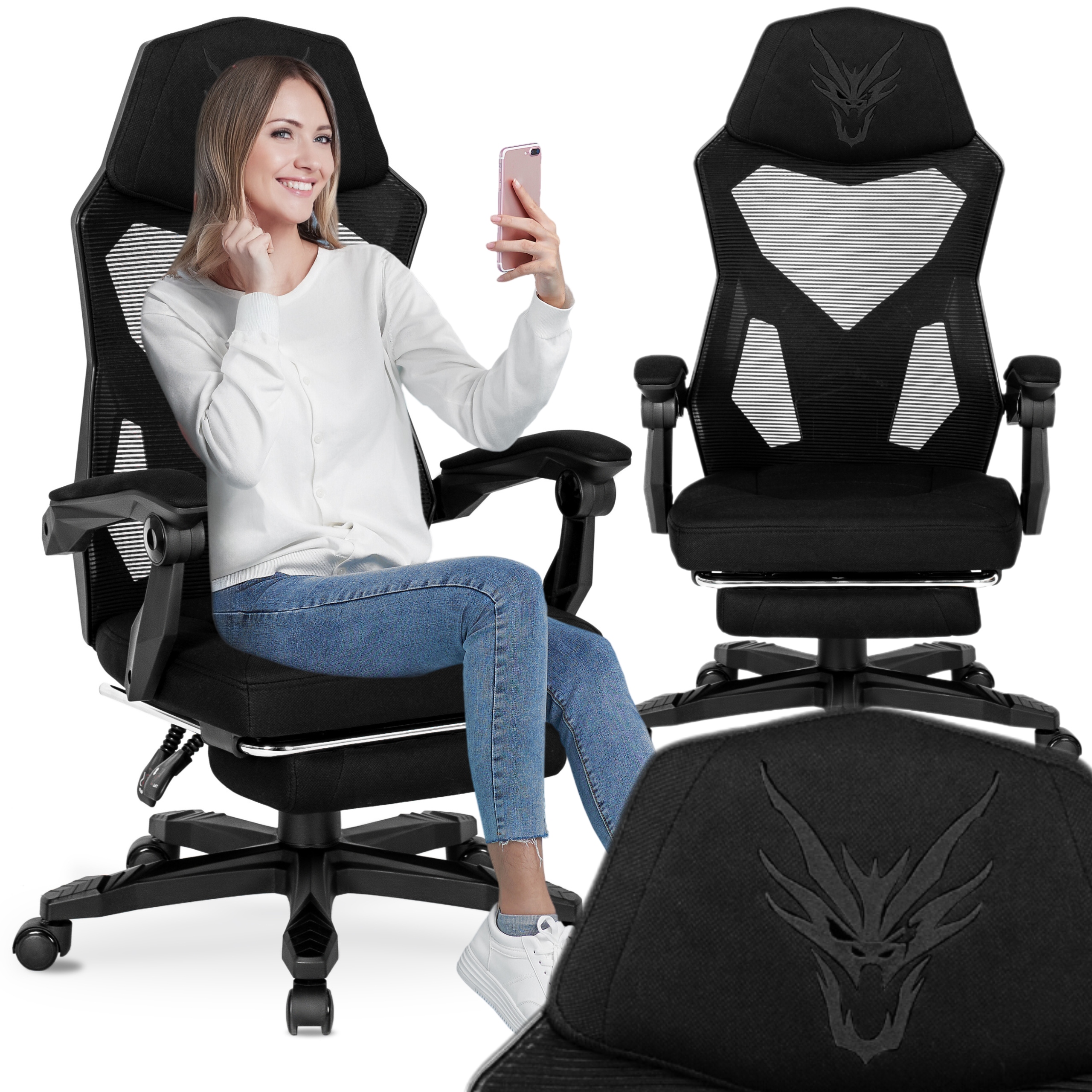 Fotel Gamingowy Obrotowy Krzesło Biurowe z Podnóżkiem Czarny BING ⭐⭐⭐⭐⭐