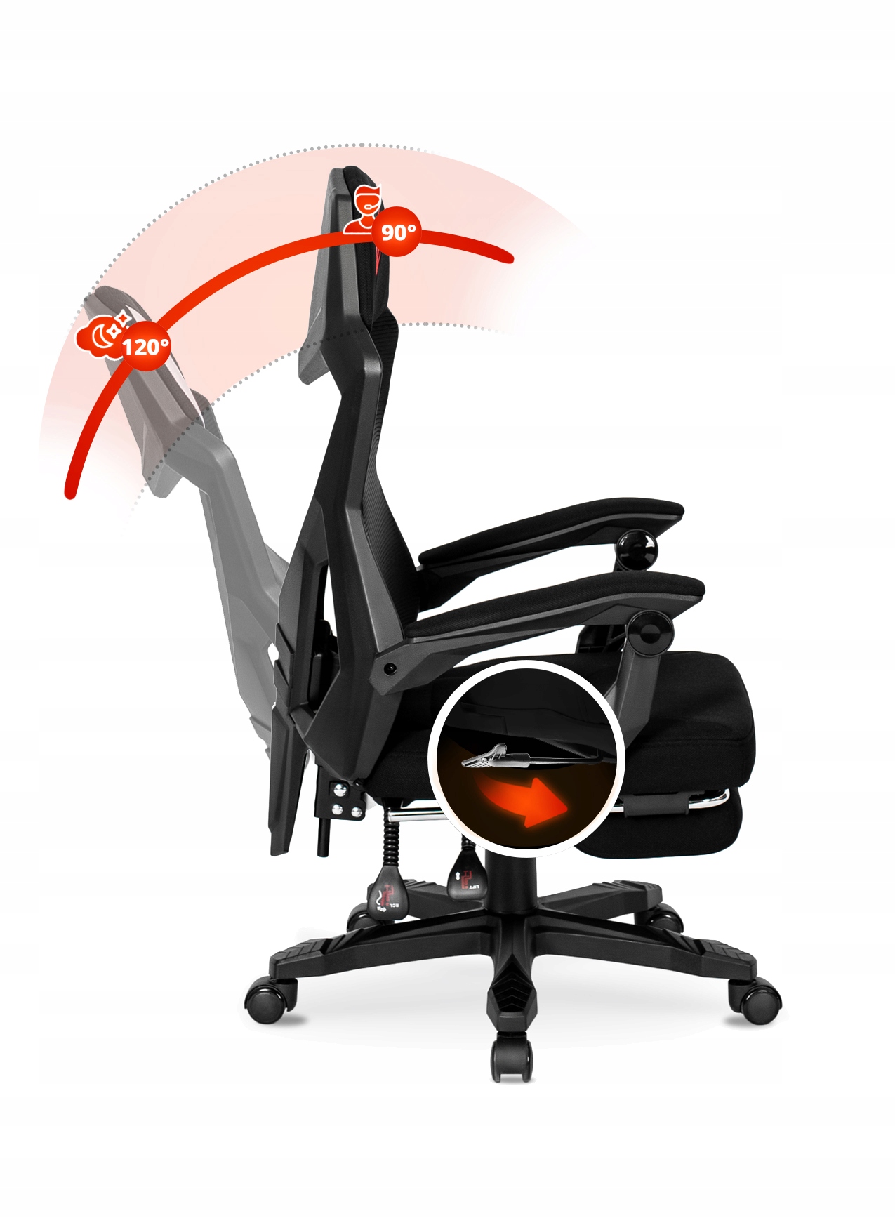 Jeśli chcesz, możesz odchylić i zablokować oparcie do 120° względem siedziska, co pozwoli Ci na uzyskanie pozycji półleżącej.