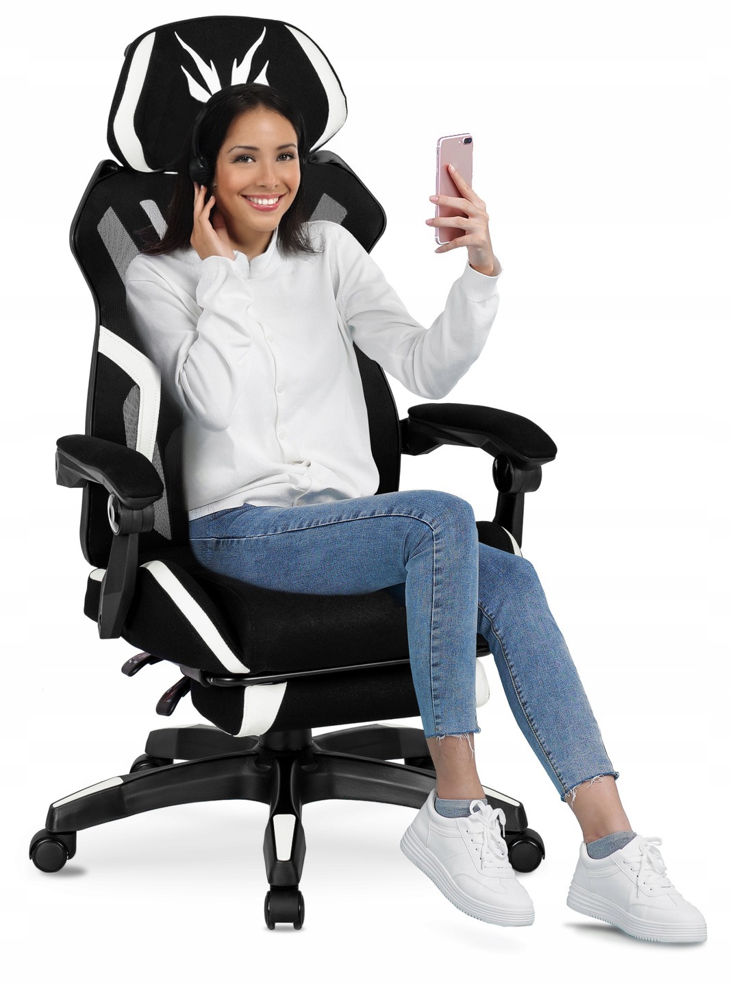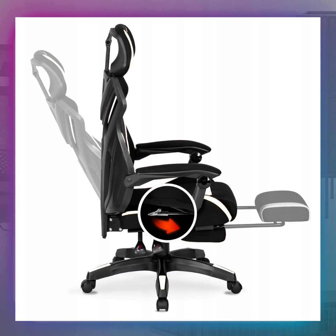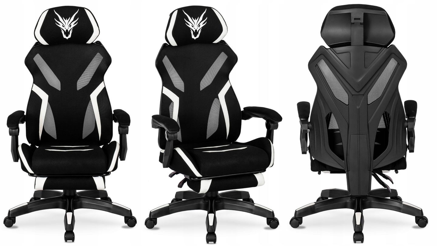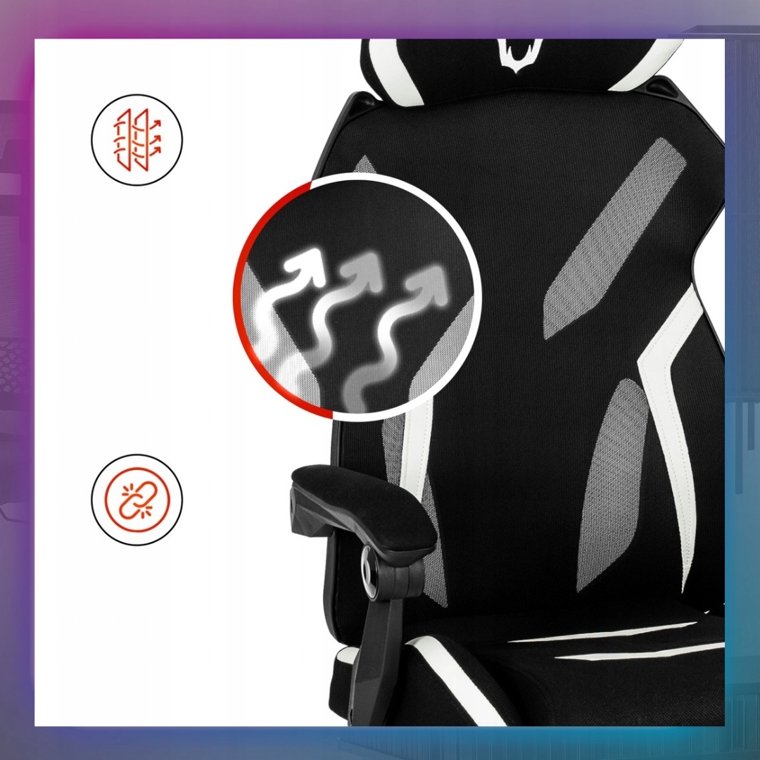Fotel Gamingowy Obrotowy z Podnóżkiem Krzesło Do Biurka MAXIMO Czarny Biały ⭐⭐⭐⭐⭐