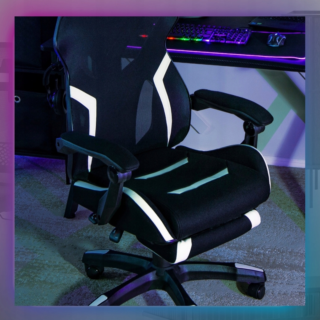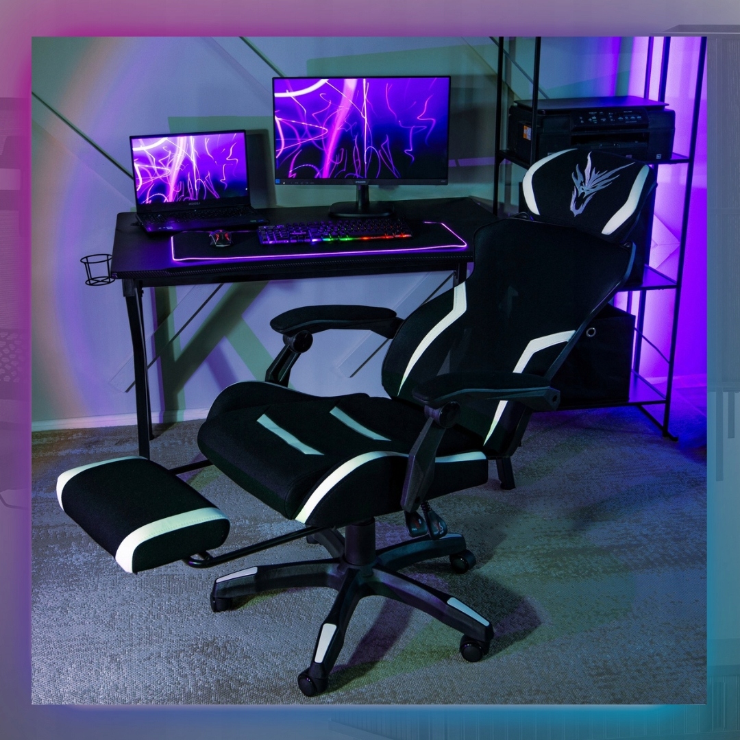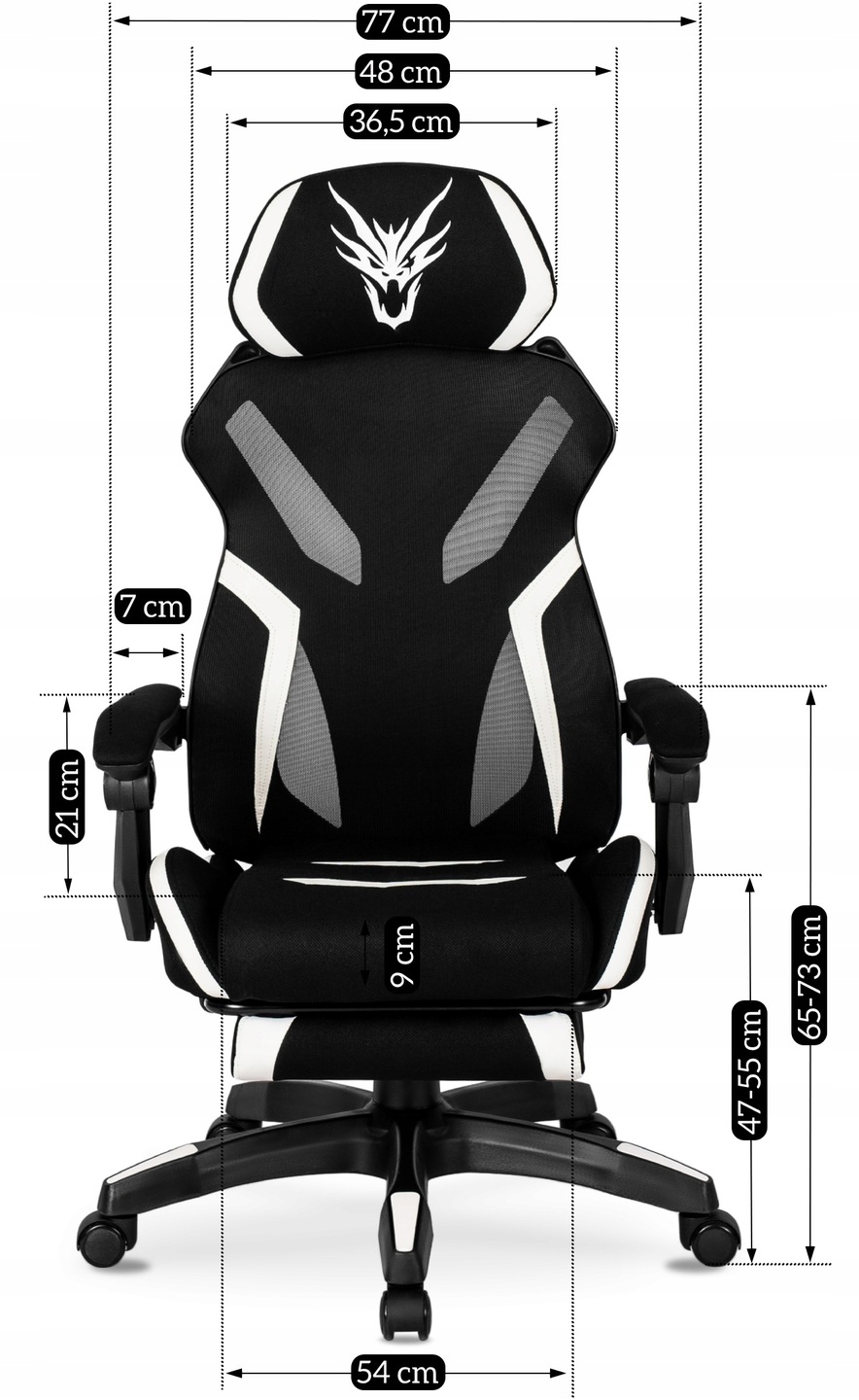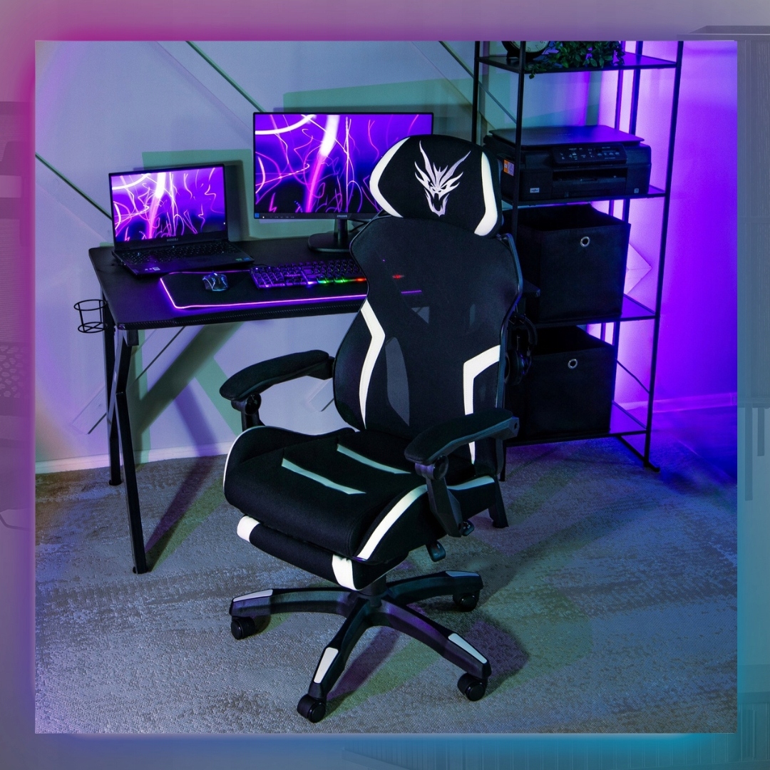 Fotel Gamingowy Obrotowy z Podnóżkiem Krzesło Do Biurka MAXIMO Czarny Biały ⭐⭐⭐⭐⭐