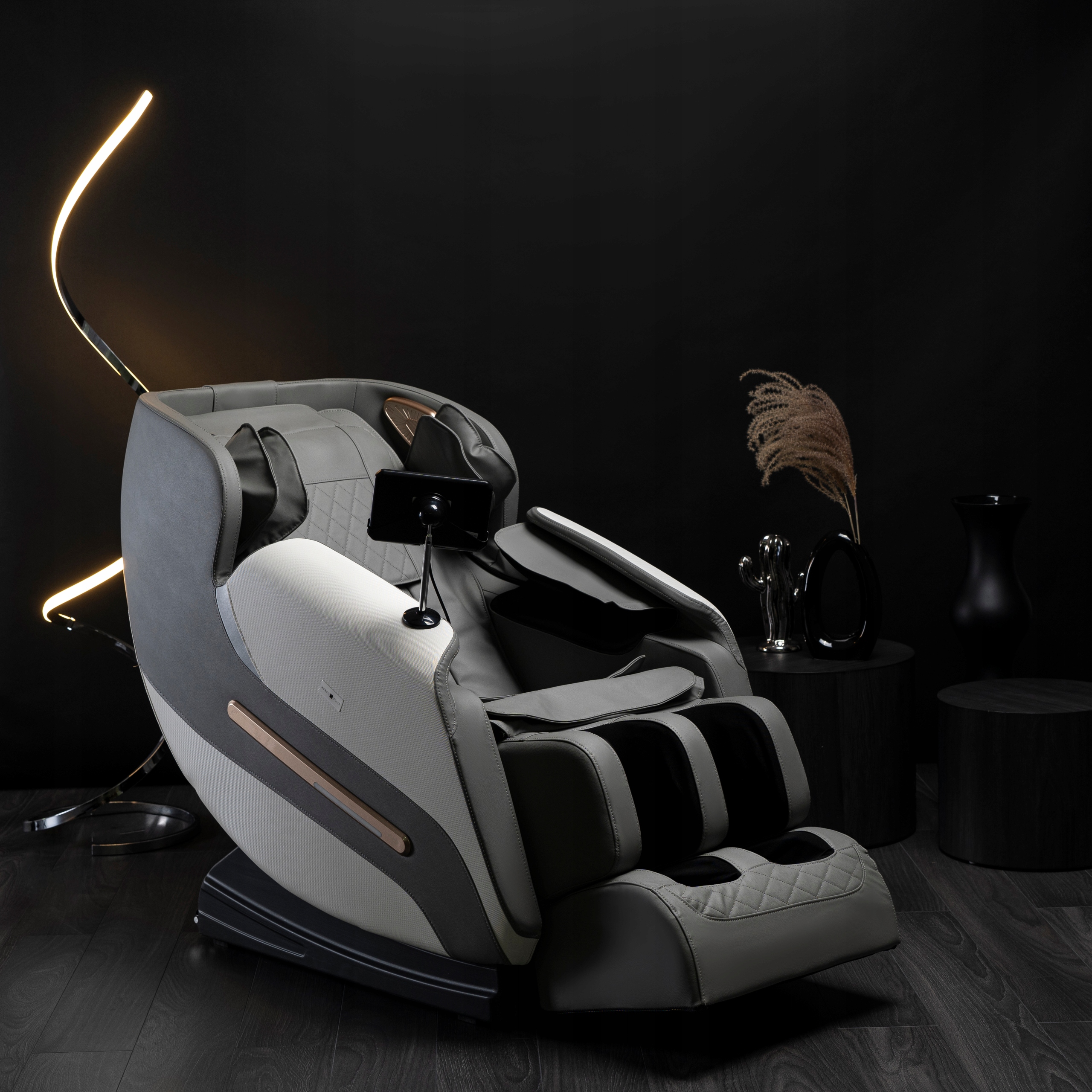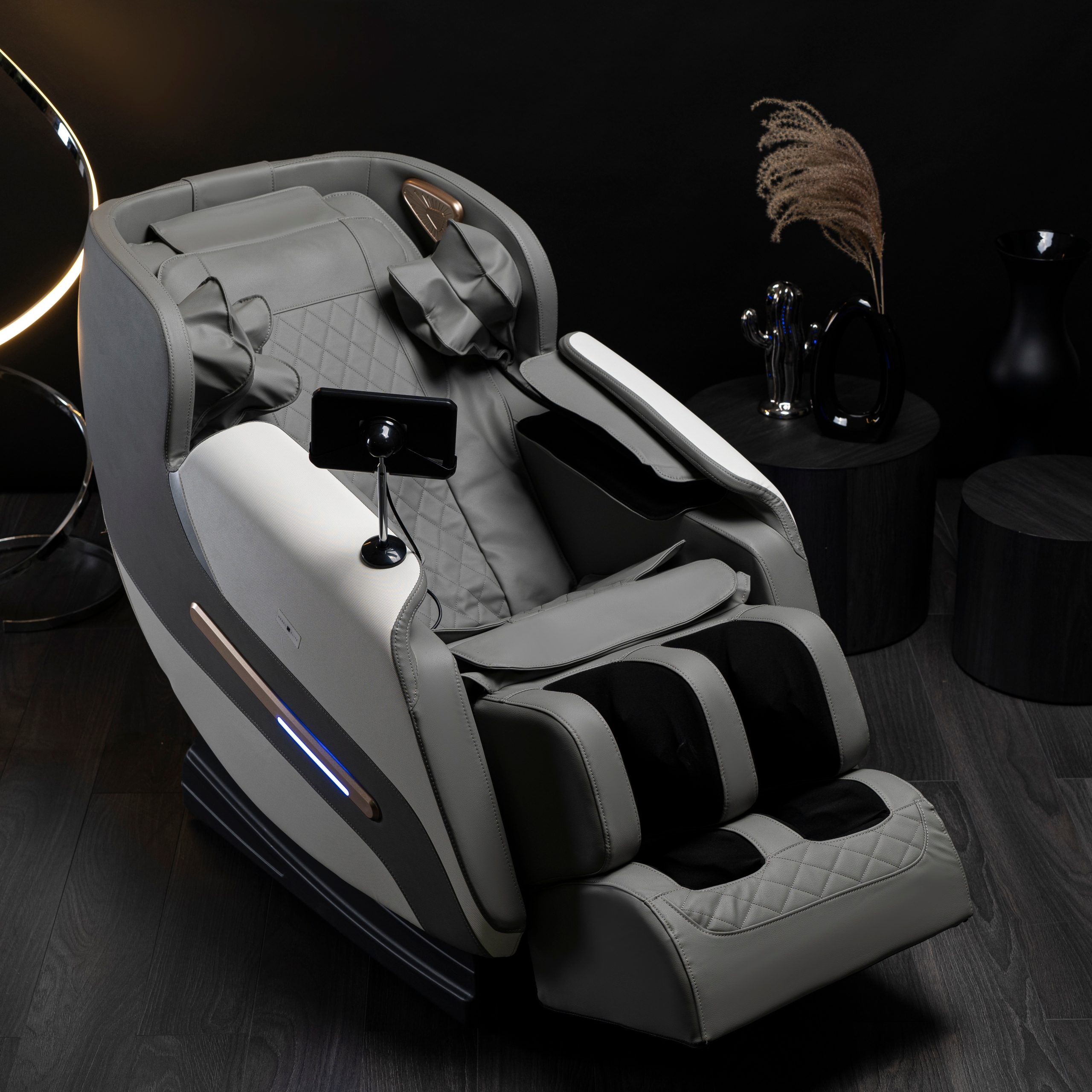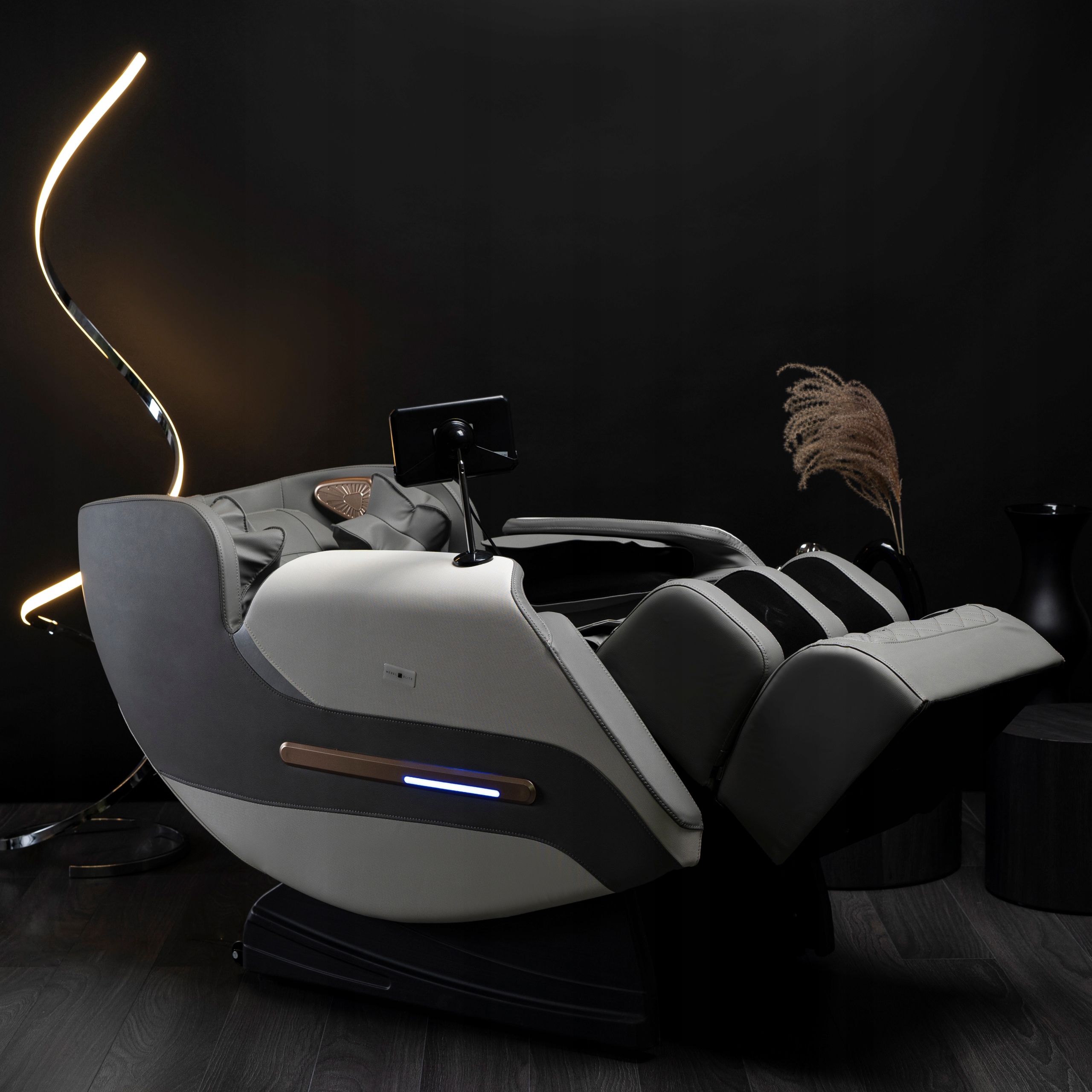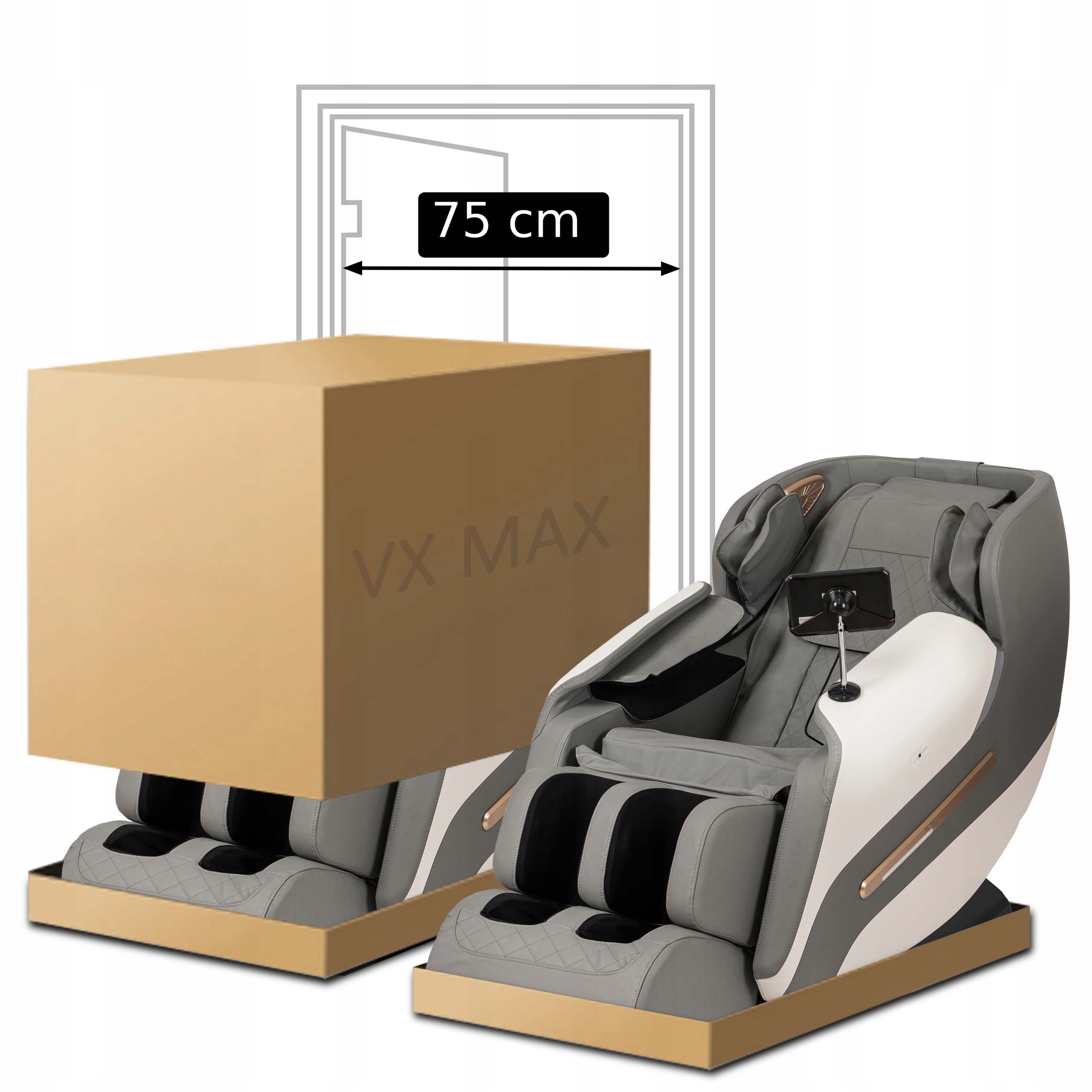 - Fotel masujący VX MAX w kolorze szaro-białym.