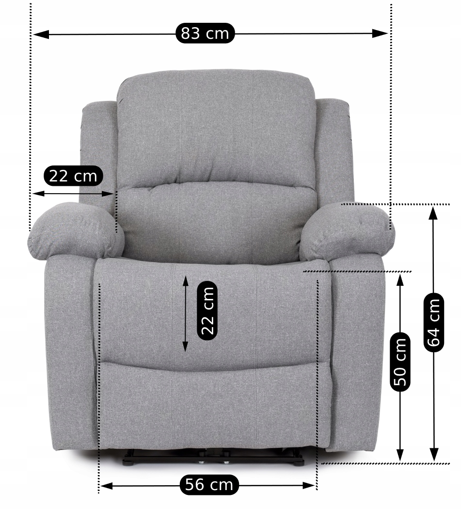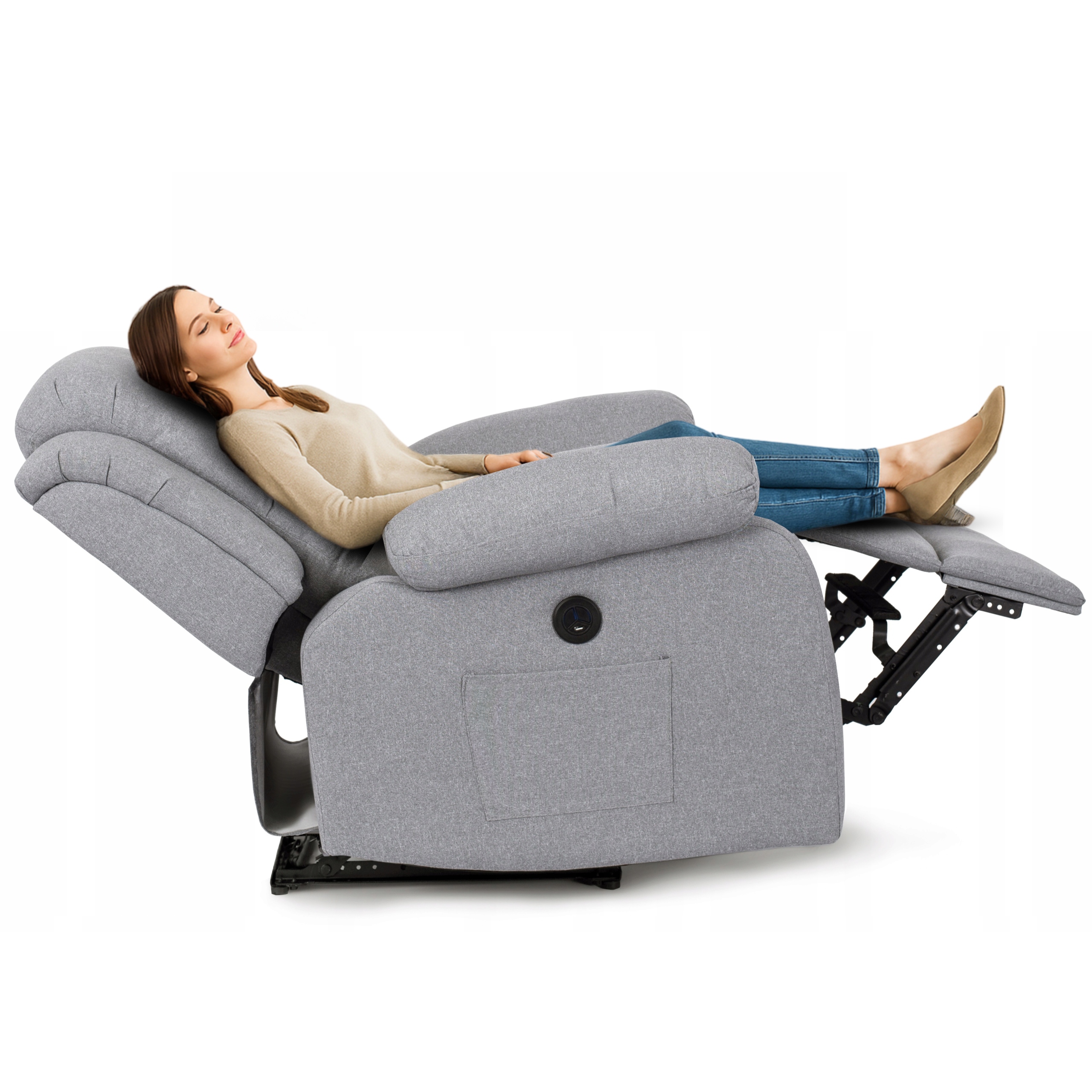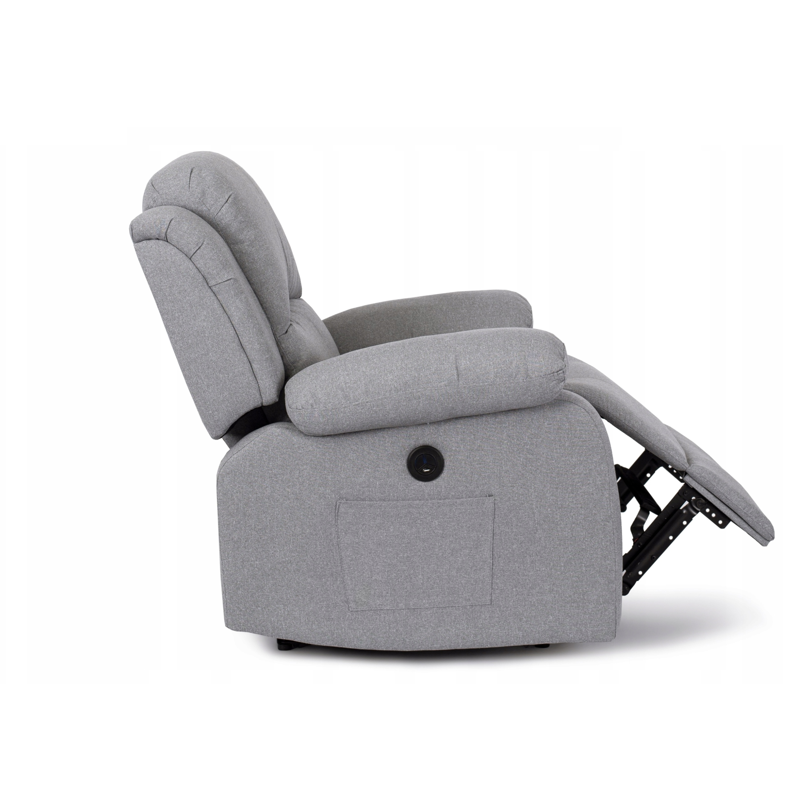 Fotel rozkładany elektrycznie to wygodny i stylowy mebel z 3 pozycjami rozłożenia, idealny do relaksu. Wykonany z wytrzymałej tkaniny w szarym kolorze, świetnie sprawdza się w codziennym użytkowaniu.