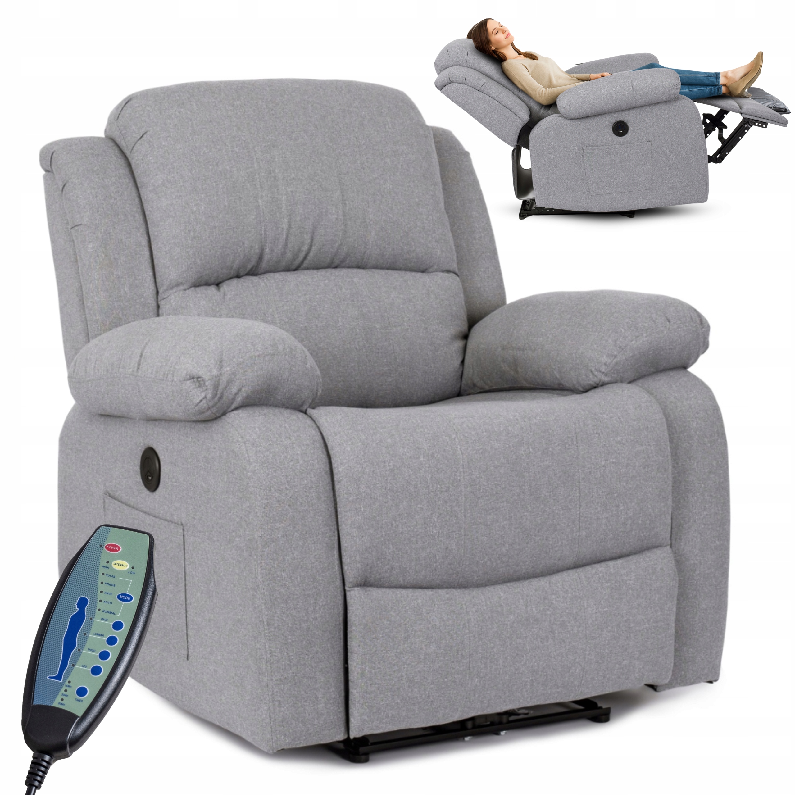 - Fotel elektrycznie rozkładany z funkcją masażu BONO w kolorze szarym
