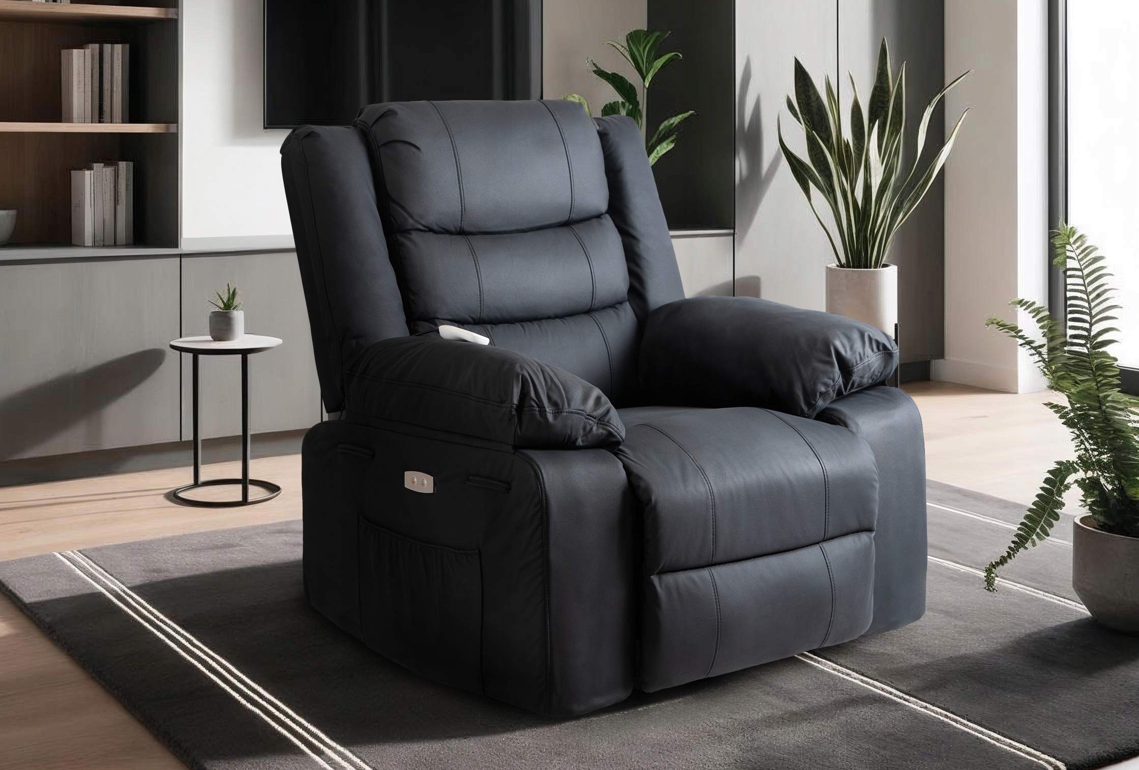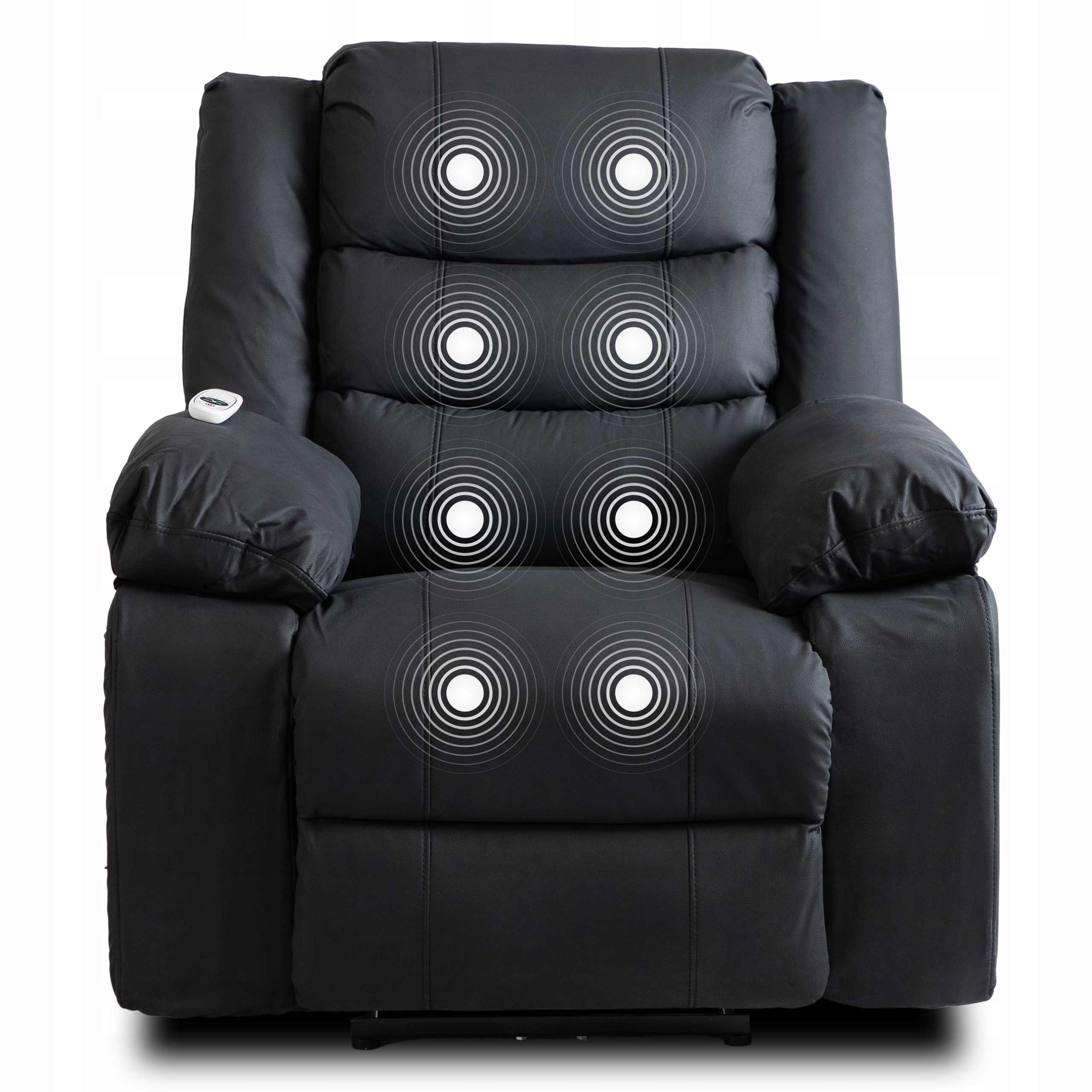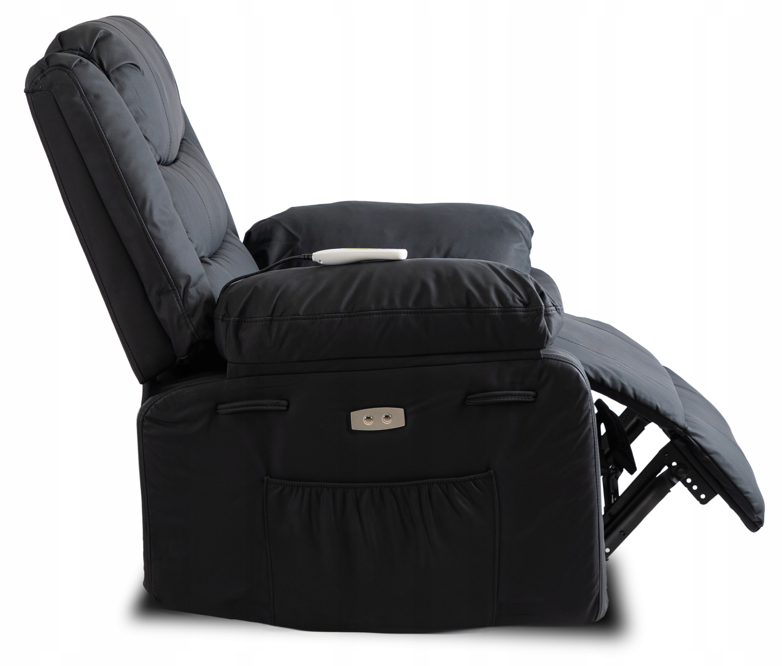 - Fotel z elektrycznym rozkładaniem oraz funkcją masażu JASPER w kolorze czarnym - ekoskóra