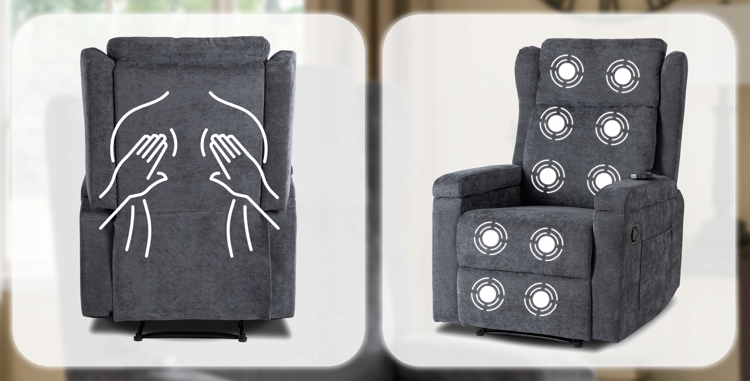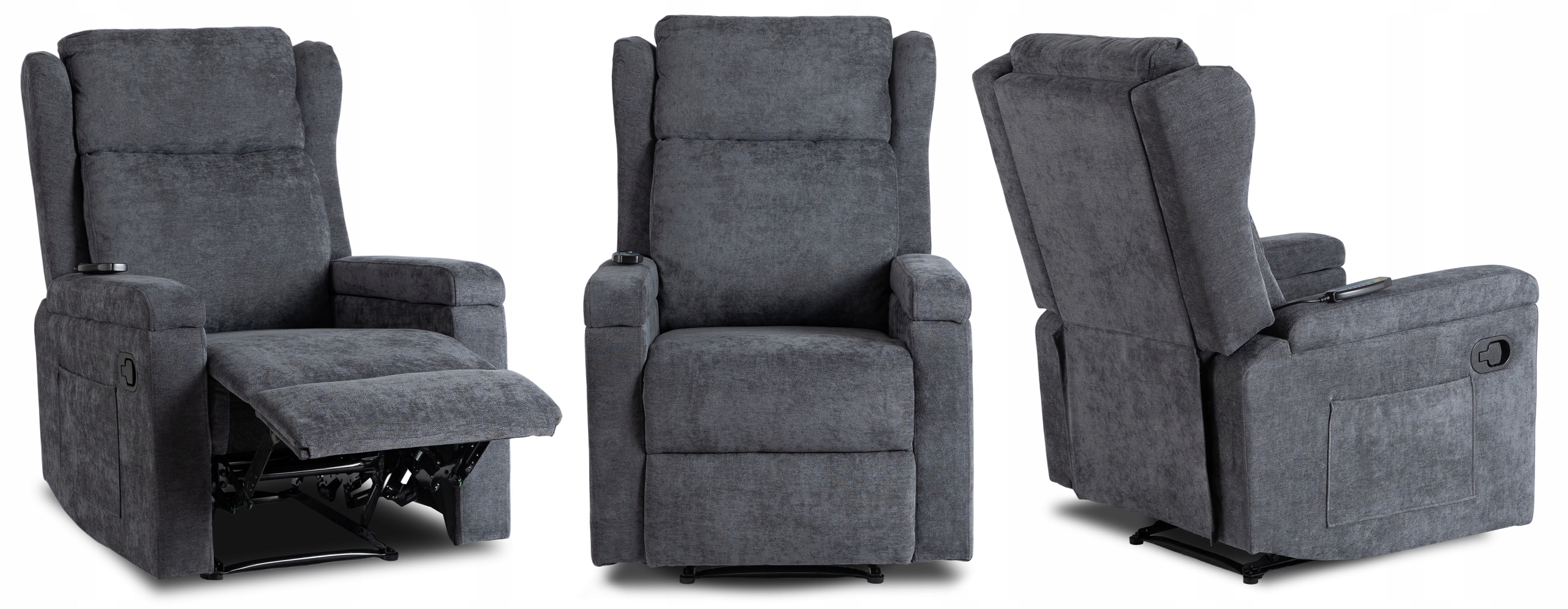 ✨ Fotel Masujący Rozkładany Wypoczynkowy Do Salonu Ciemny Szary SEBASTIAN