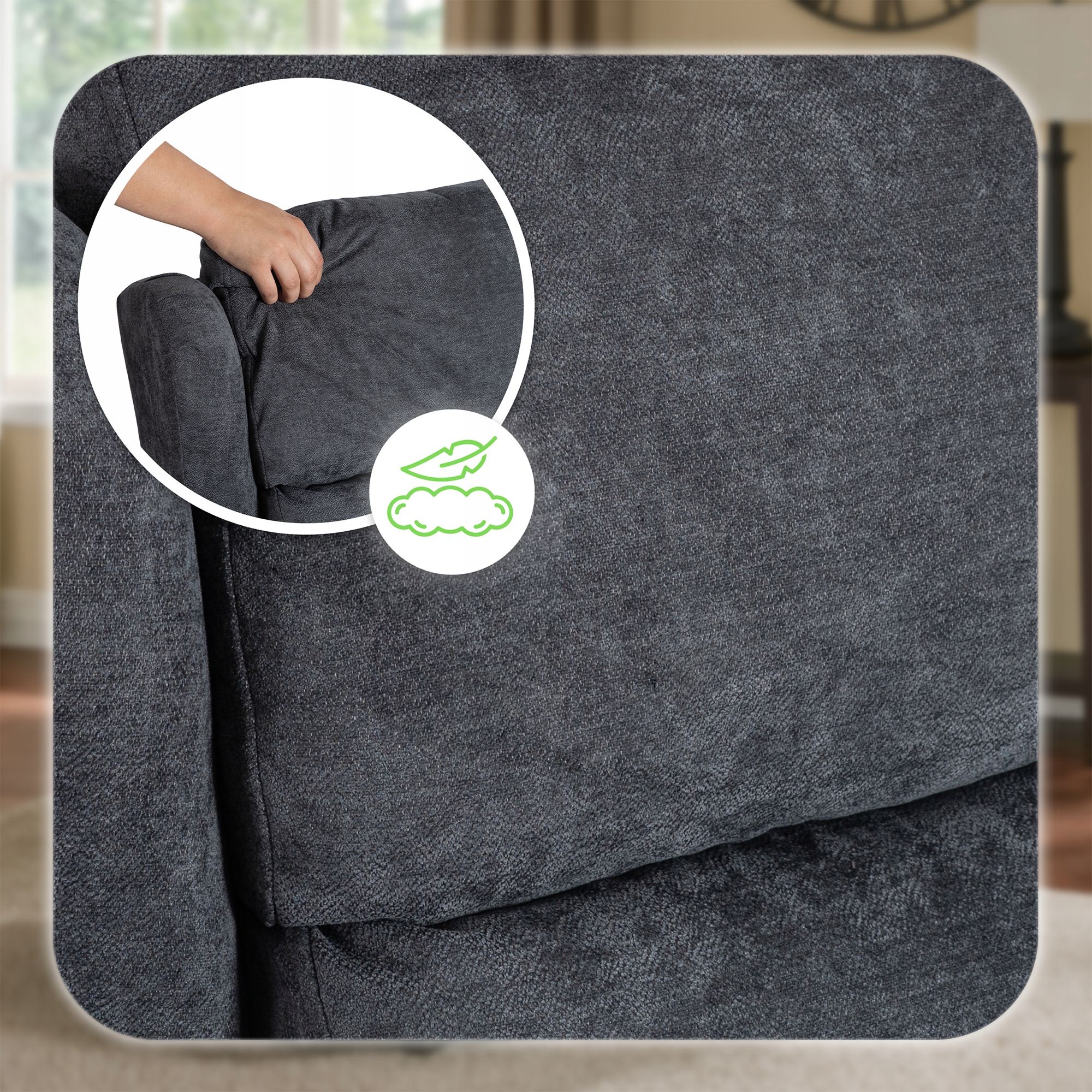 • Miła w dotyku powierzchnia – miękka i przyjemna faktura tkaniny podnosi komfort użytkowania, niezależnie od pozycji i pory dnia.