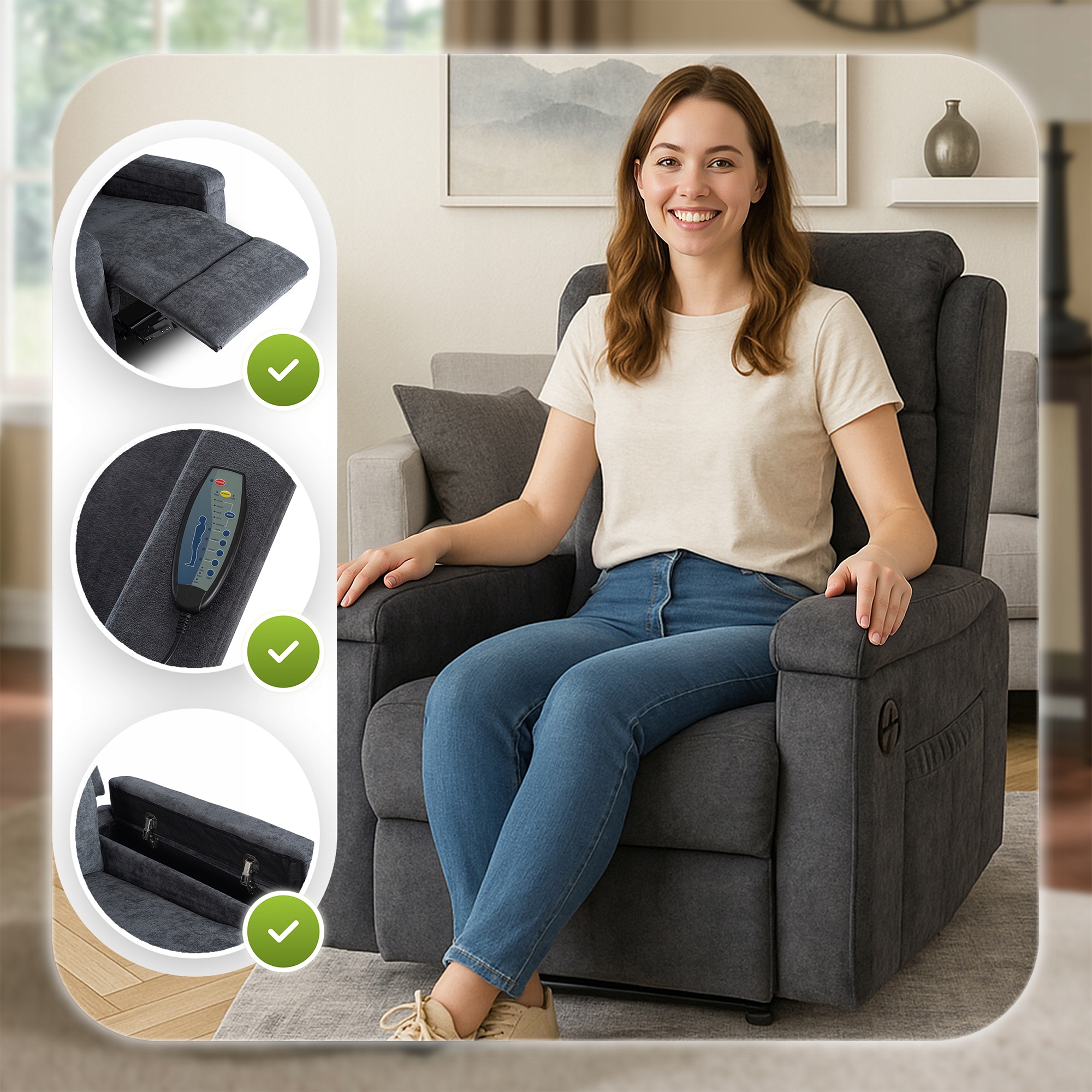 • Dla rodziców małych dzieci – stabilna konstrukcja i komfortowe podparcie sprawiają, że fotel świetnie sprawdzi się przy karmieniu czy usypianiu malucha.