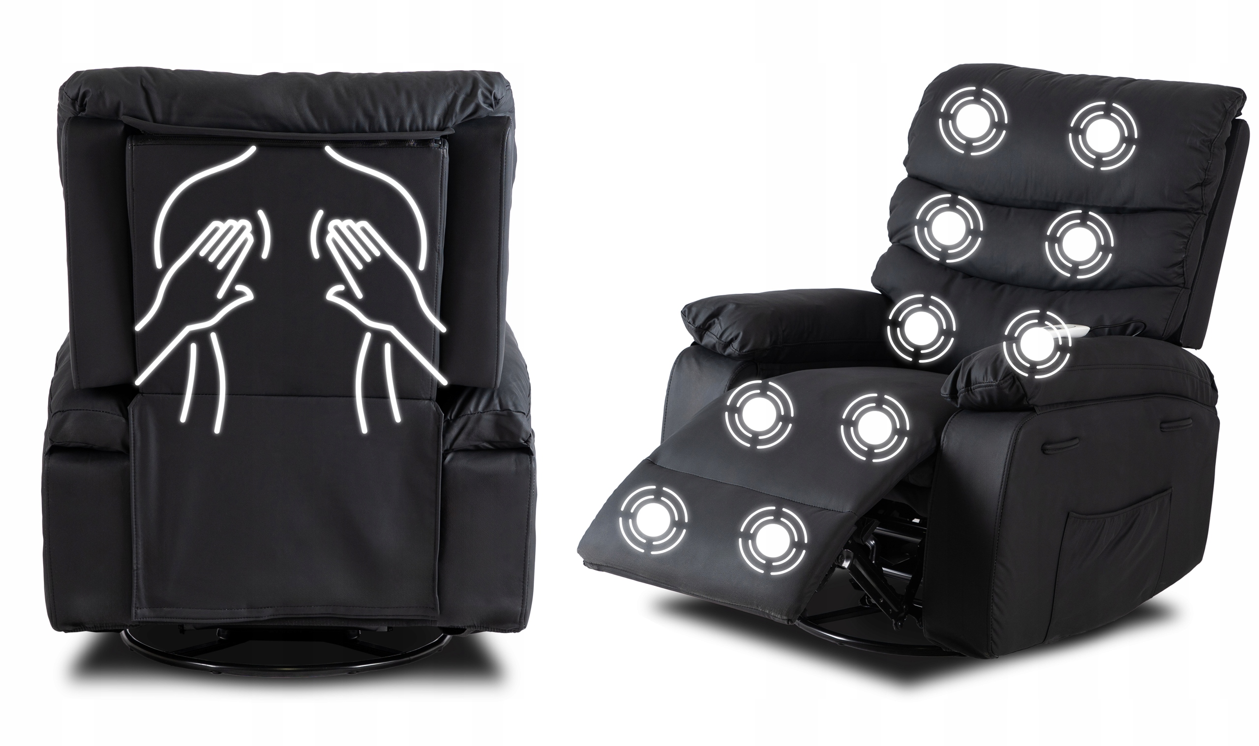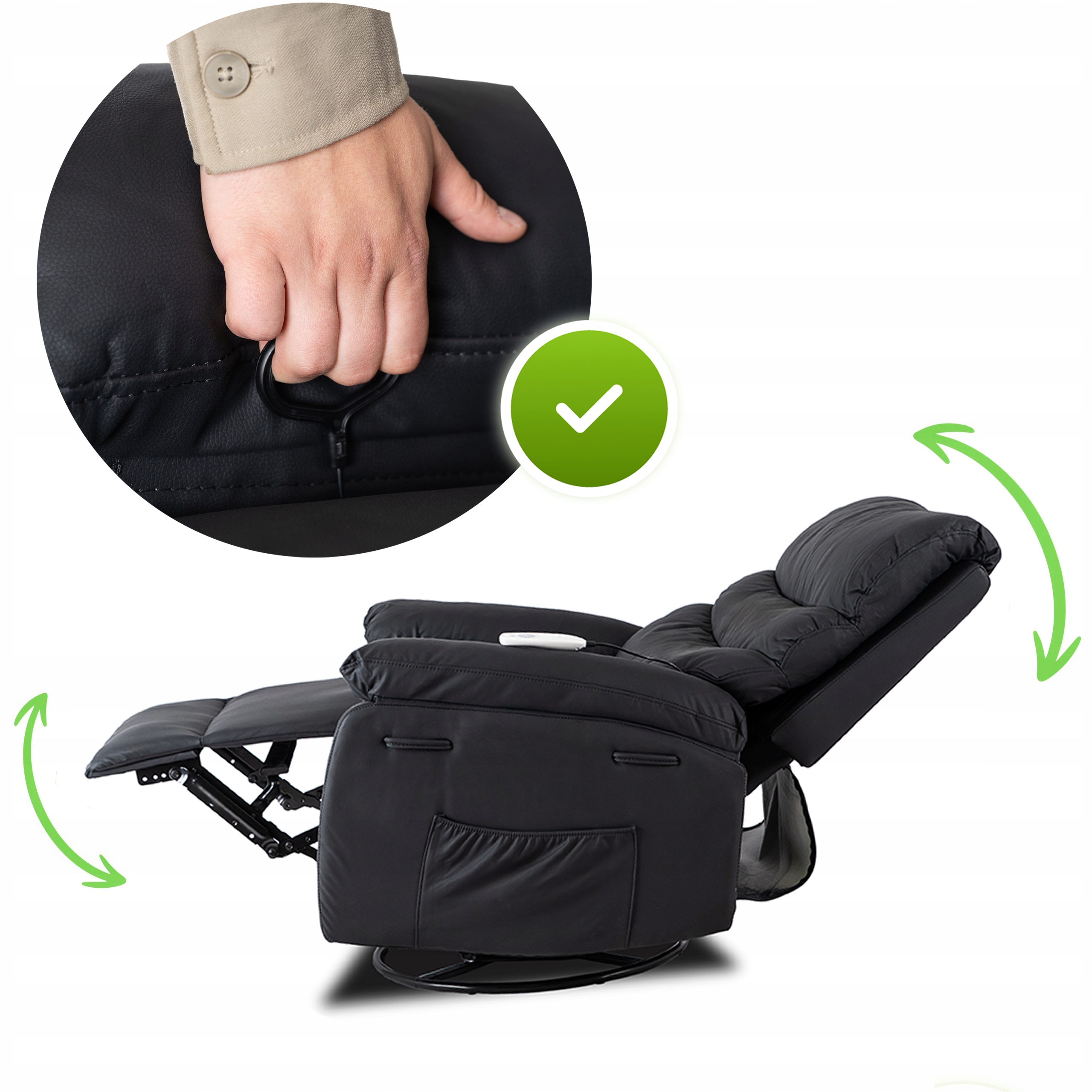 - Wbudowana funkcja masażu oraz obrotowa podstawa 360° gwarantują pełen relaks i wygodę użytkowania.