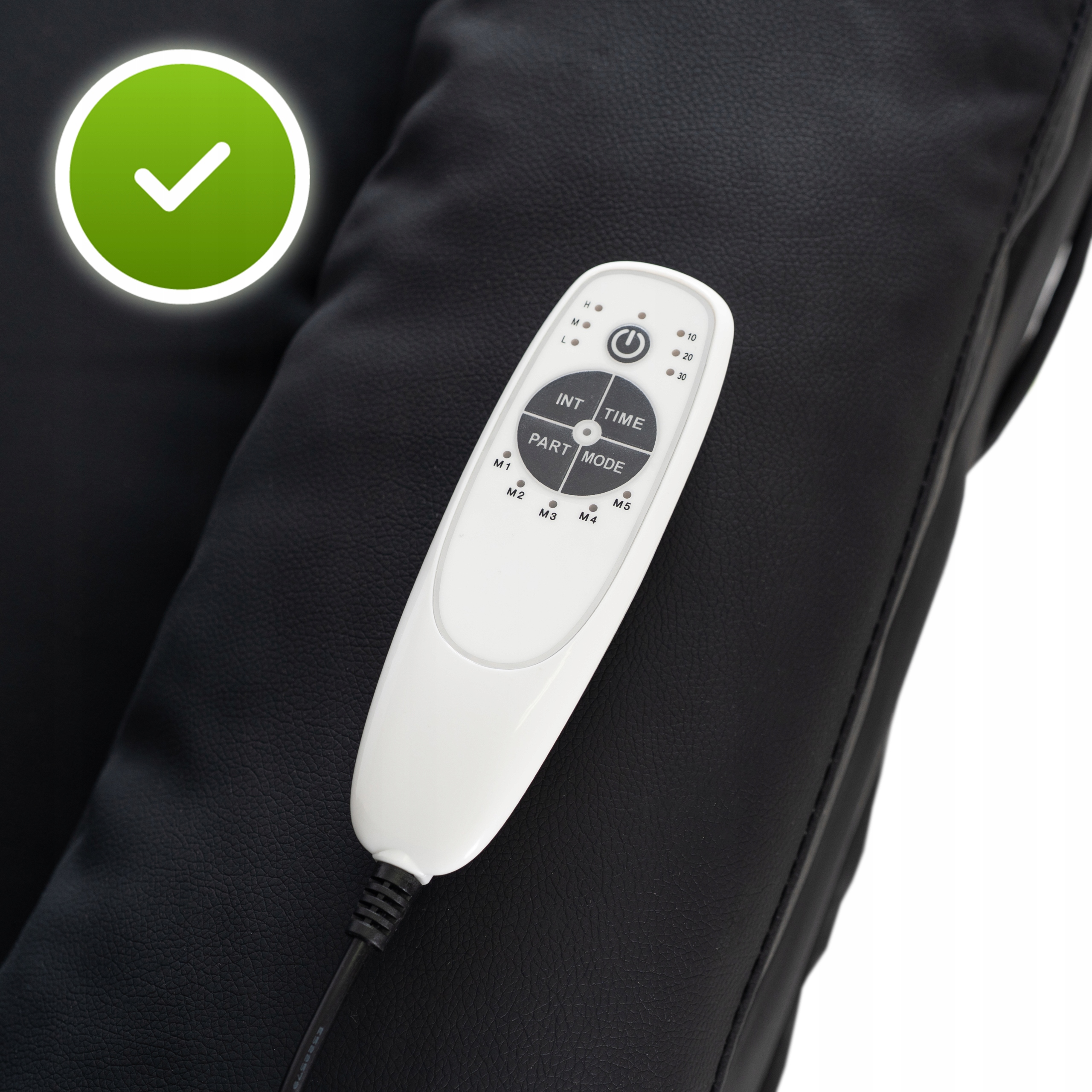 Wszystkimi funkcjami sterujesz intuicyjnym pilotem, który zapewnia pełną kontrolę bez konieczności wstawania z fotela. Komfort, relaks i regeneracja – wszystko na wyciągnięcie ręki.