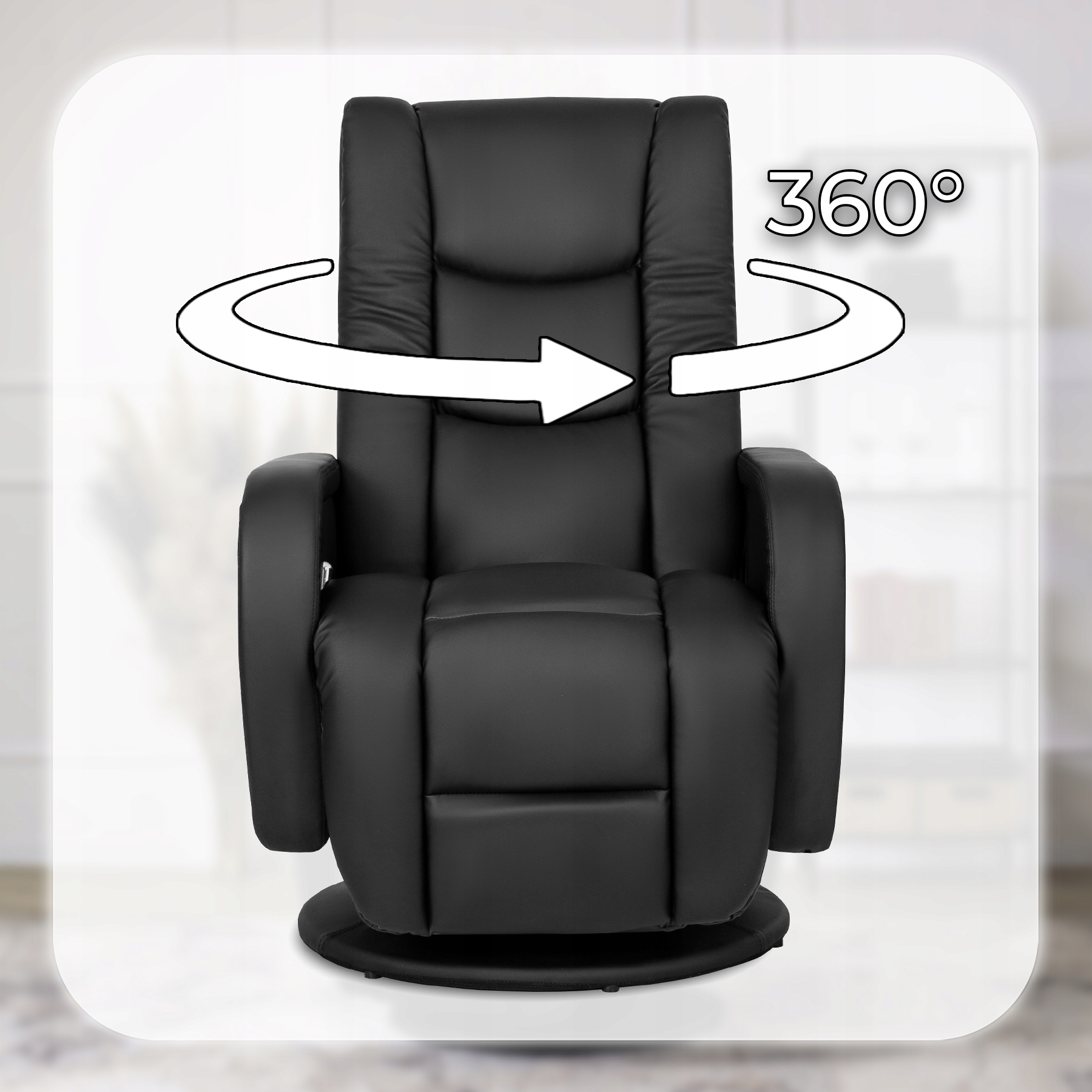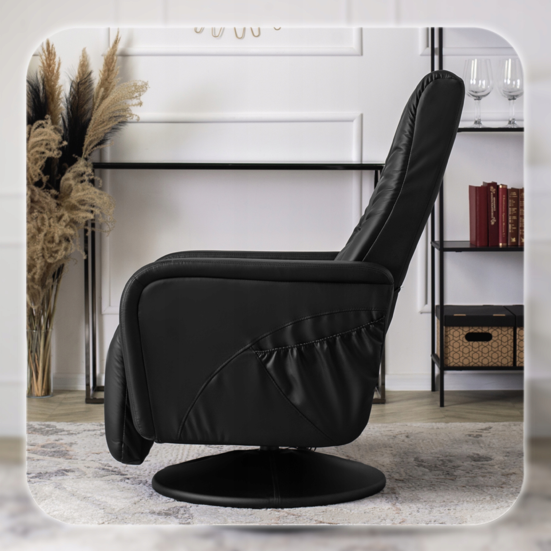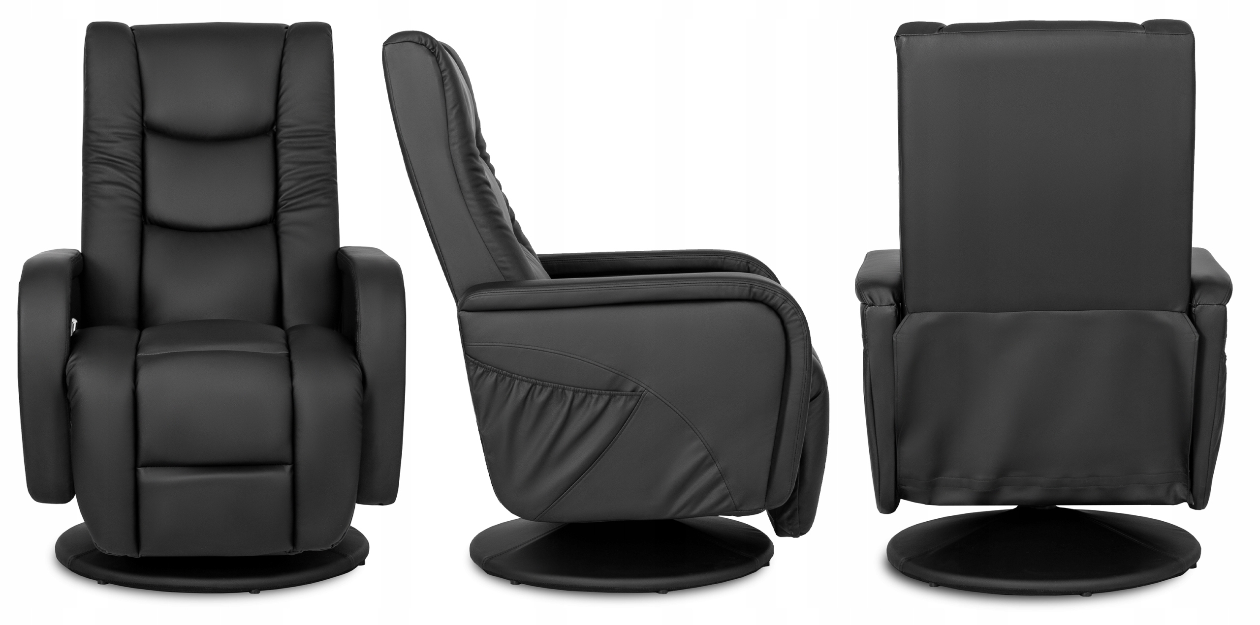 Fotel SPIKE to połączenie nowoczesnego designu i funkcjonalności. Czarna tapicerka z trwałej skóry ekologicznej nadaje mu elegancki wygląd, który pasuje do wnętrz w różnym stylu. Dzięki funkcji obrotu 360°, możliwości rozłożenia oraz wbudowanym programom masażu, fotel gwarantuje nie tylko wyjątkowy styl, ale też pełen komfort podczas odpoczynku po pracy, oglądania filmów czy popołudniowej drzemki.