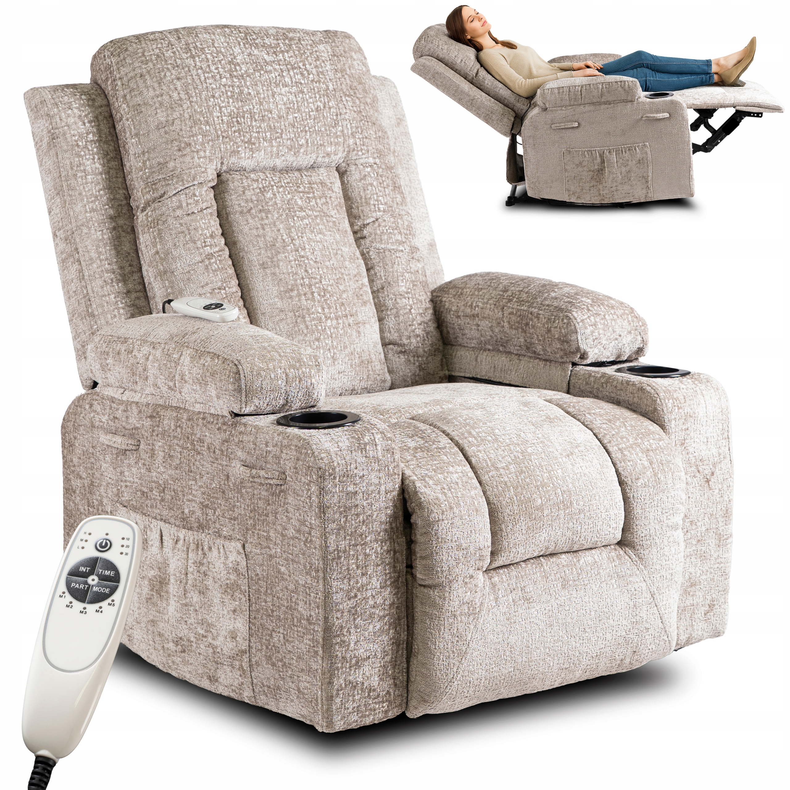 - Fotel rozkładany z funkcją masażu BOX w kolorze beżowy