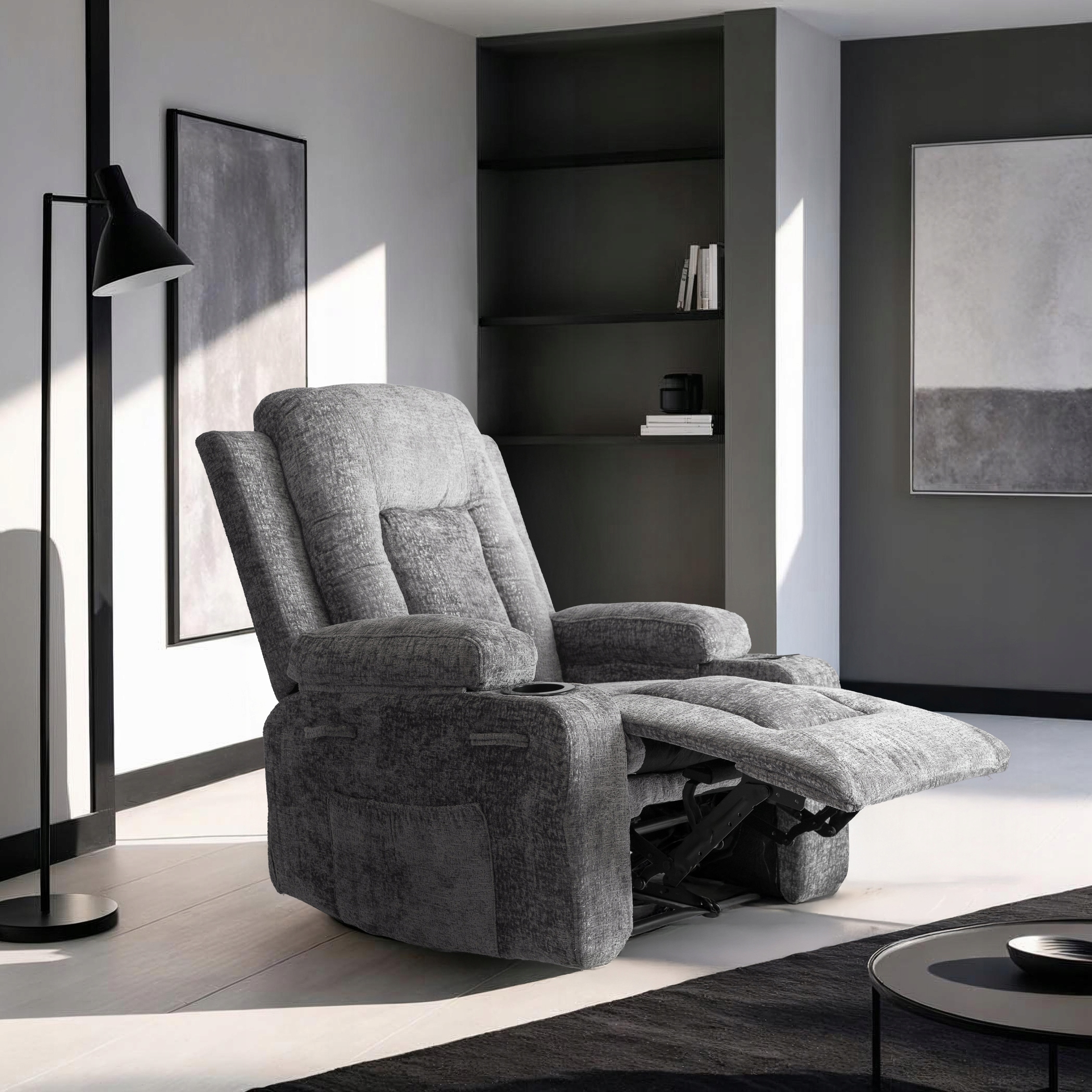 - Fotel rozkładany z funkcją masażu BOX w kolorze popielaty