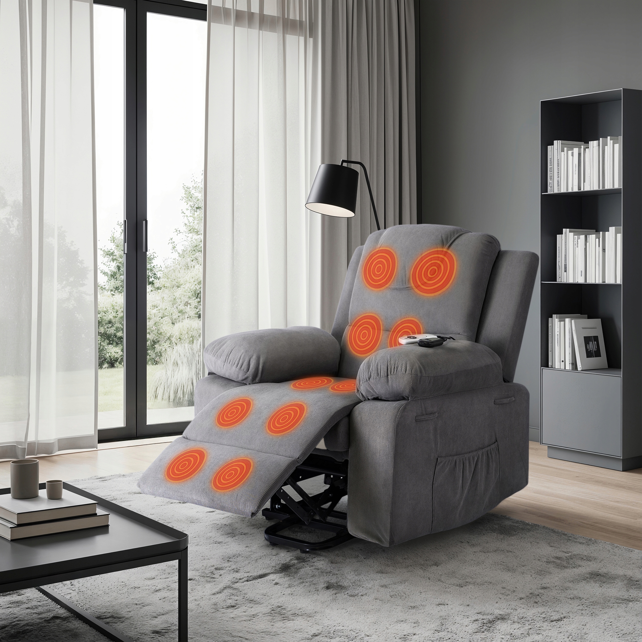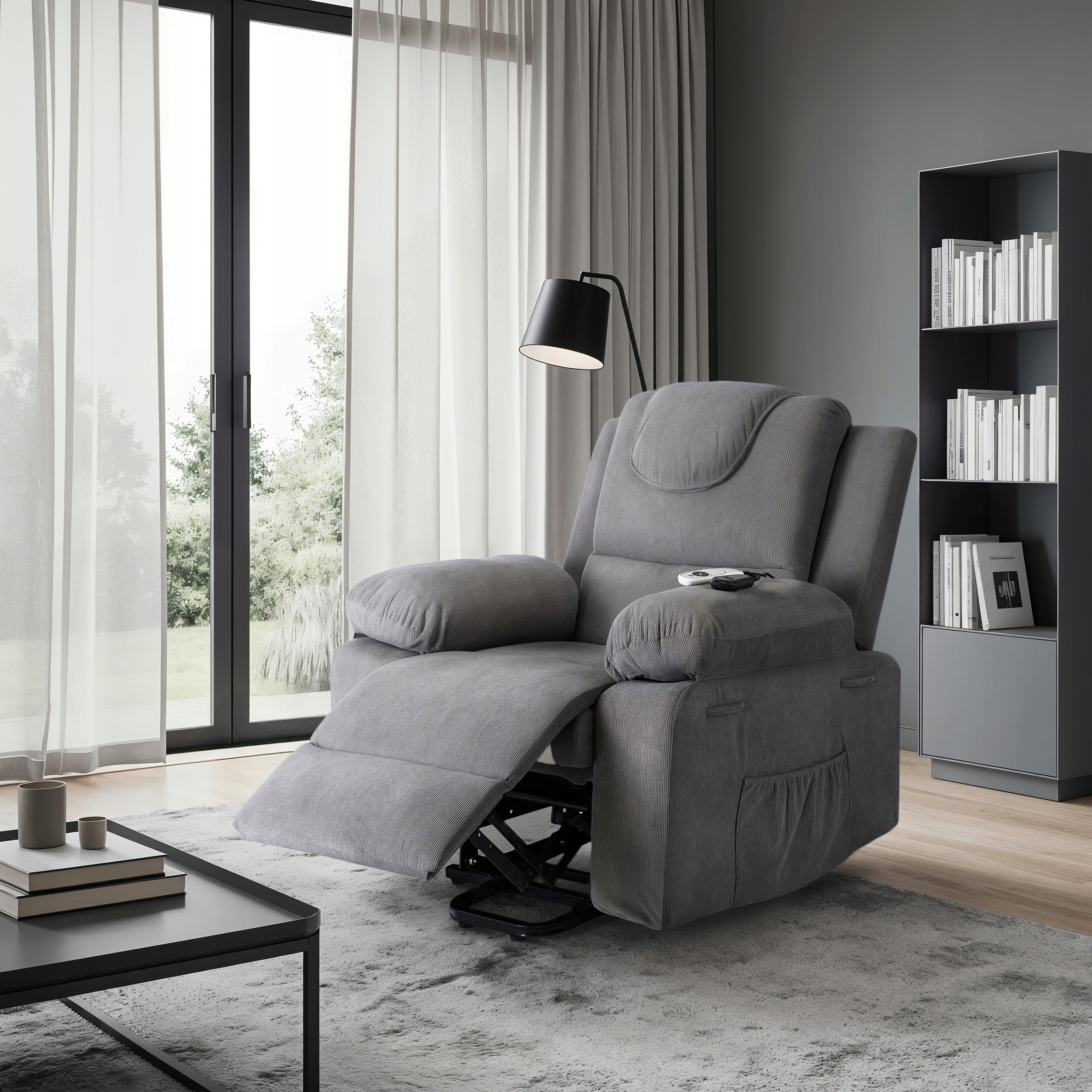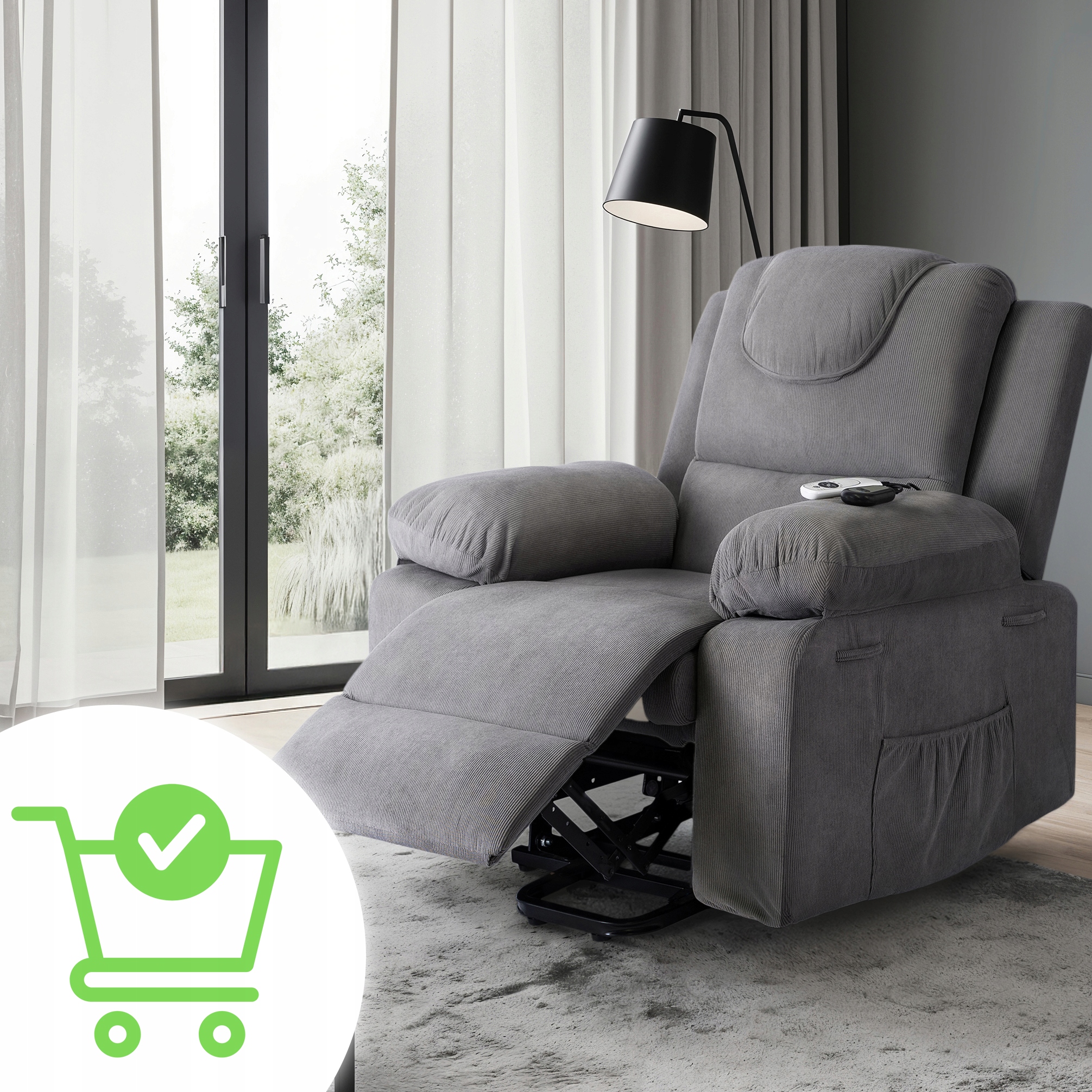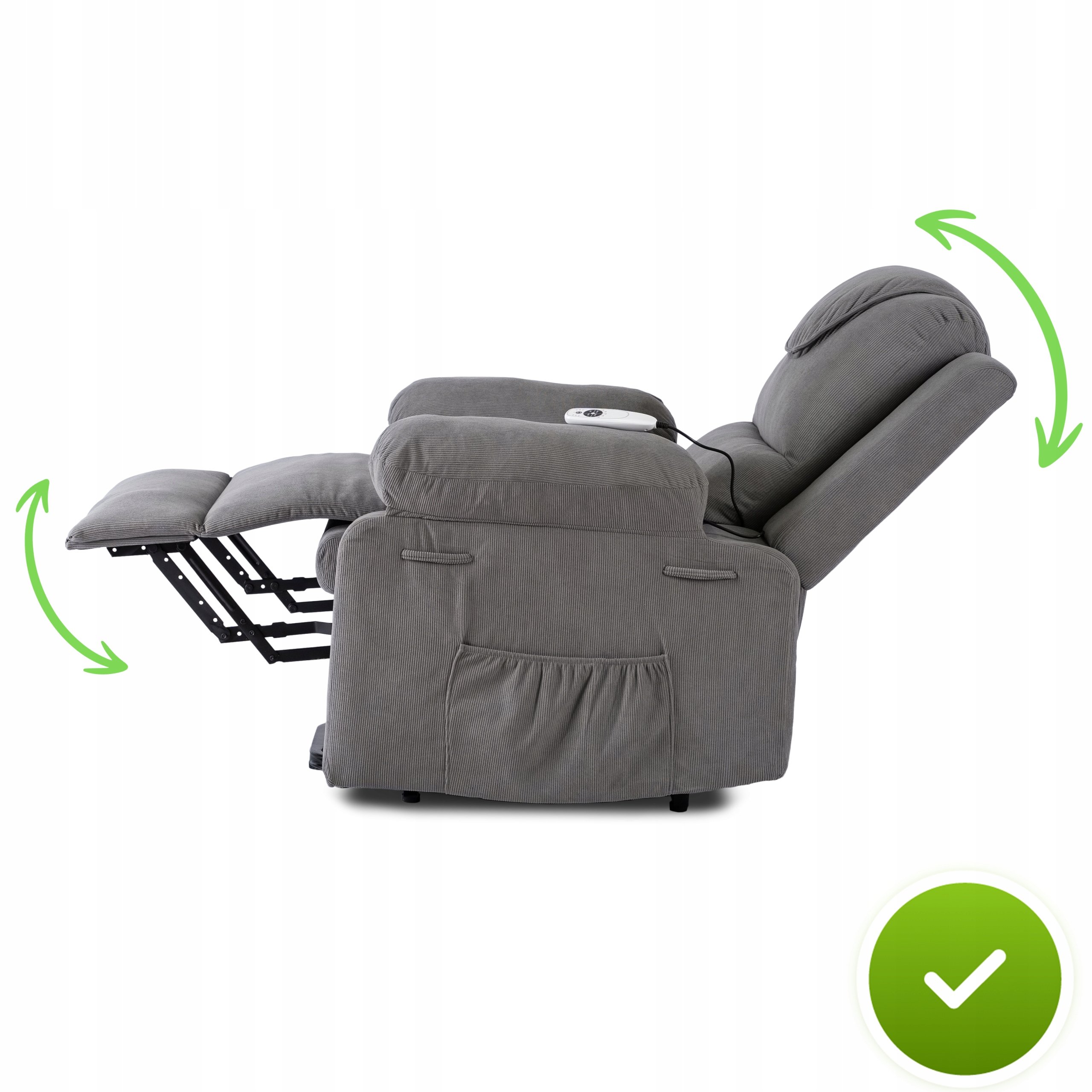 Fotel Masujący Rozkładany z Podnoszeniem Masażem Dla Seniora Szary FENIX