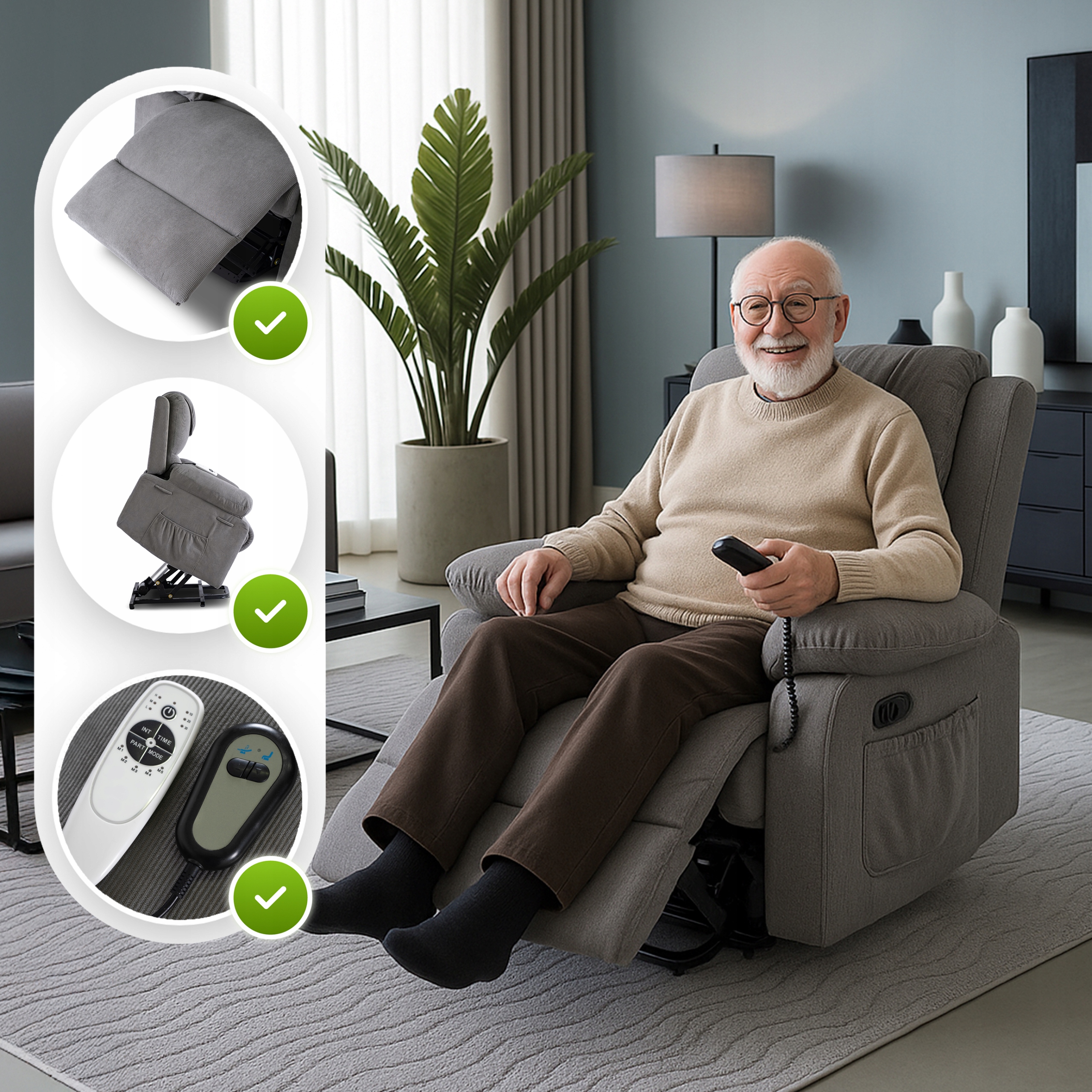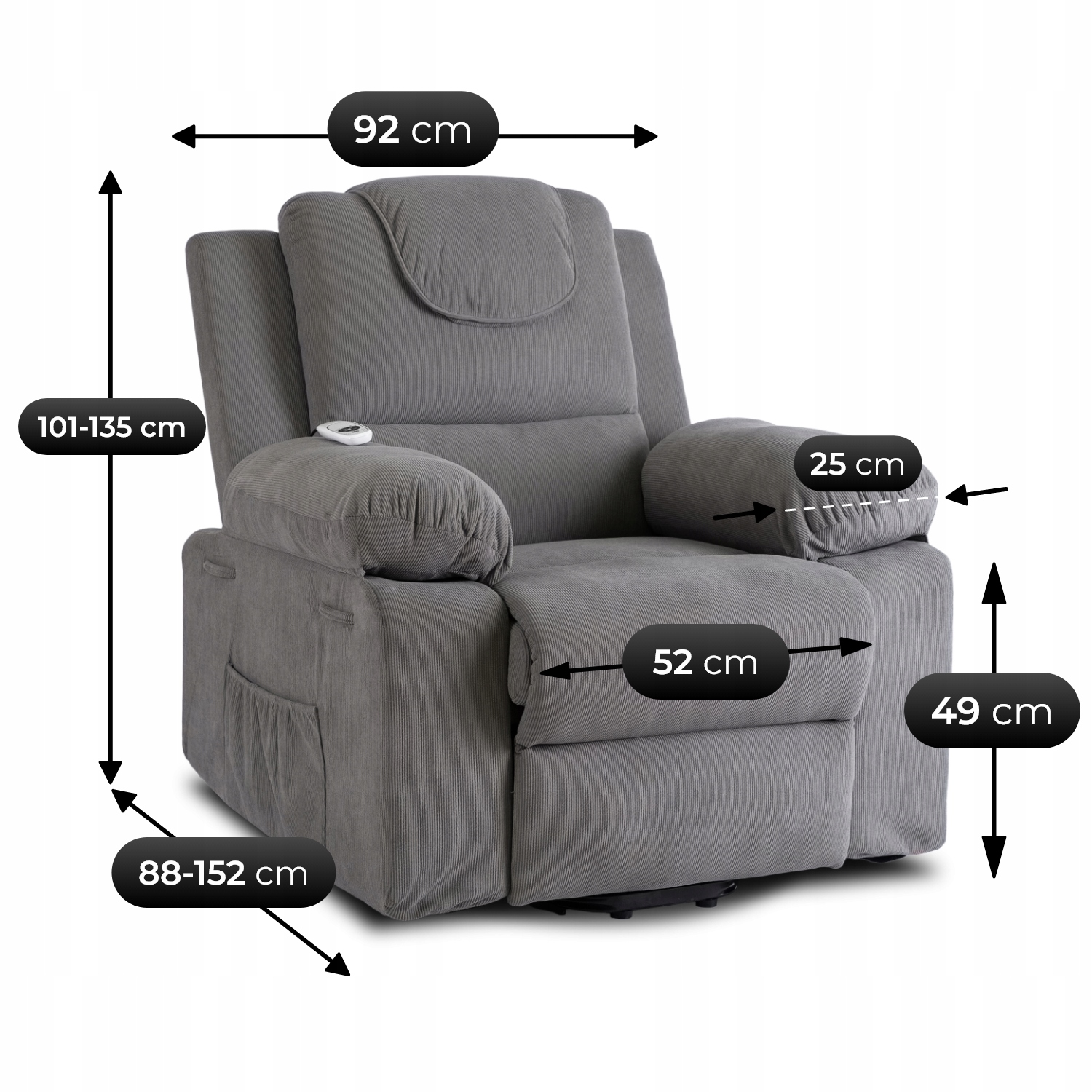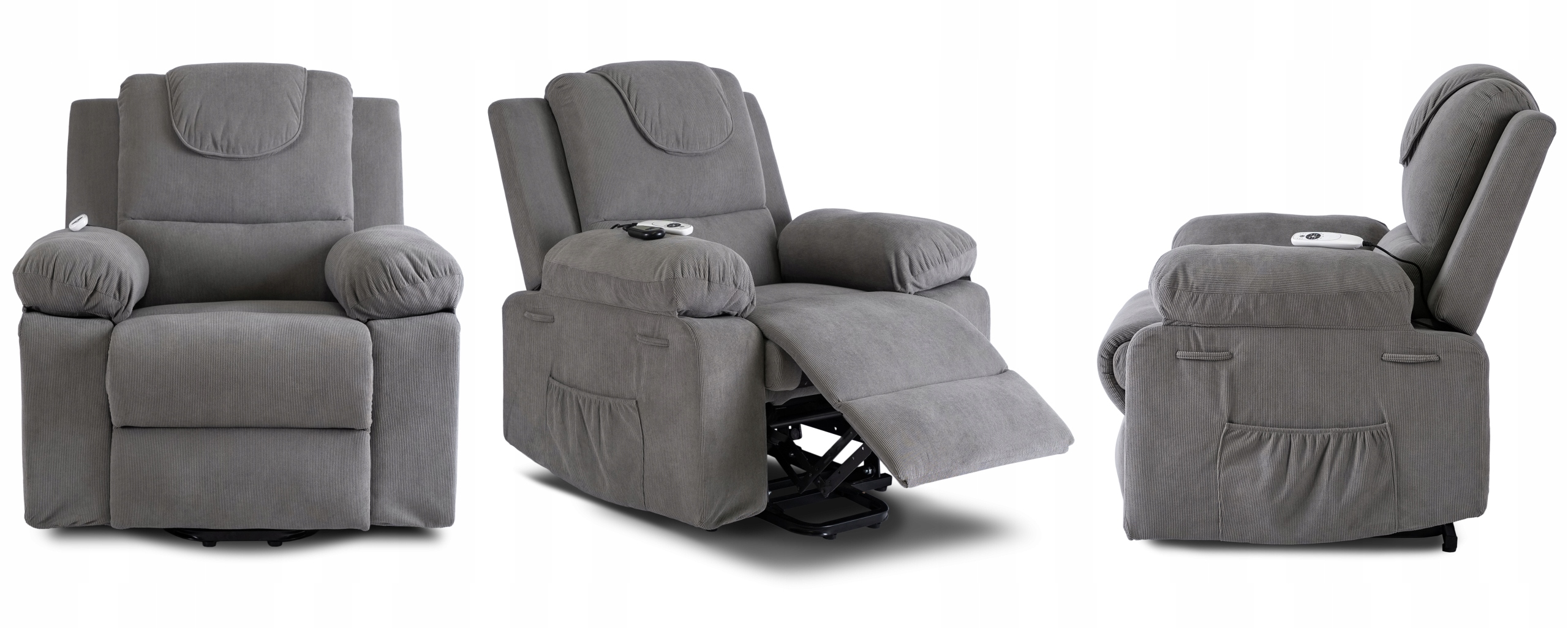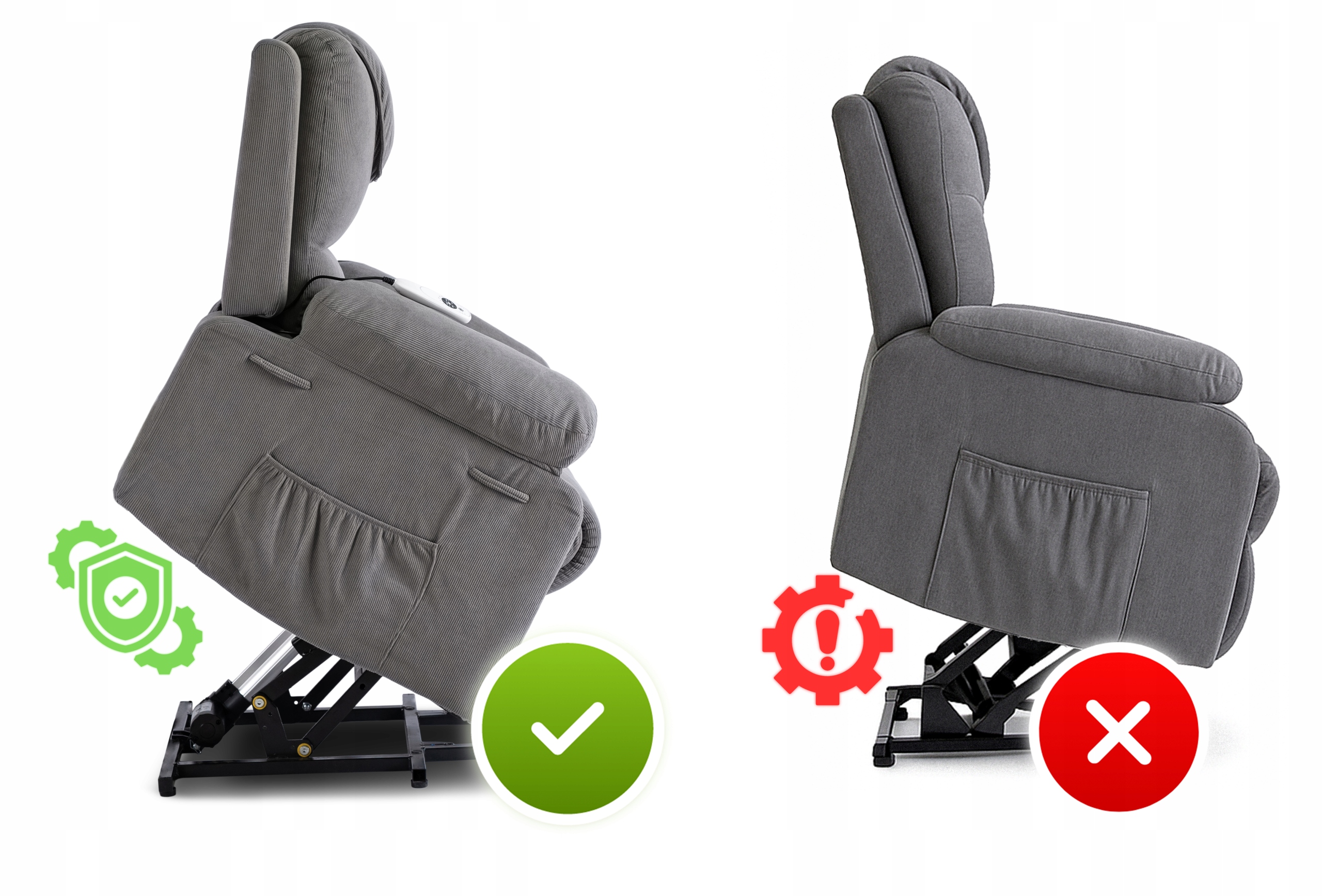 • Funkcja wspomagająca wstawanie – mechanizm podnoszący ułatwia bezpieczne i wygodne podniesienie się z fotela, szczególnie dla osób starszych.
