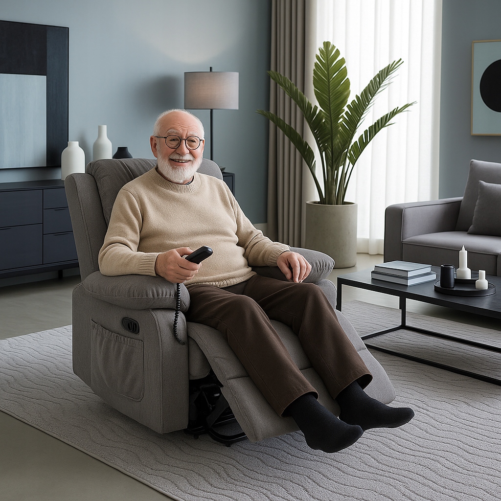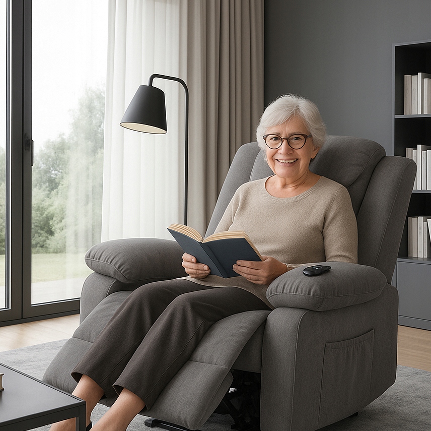 • Dla seniorów – doskonałe podparcie pleców i nóg wspiera krążenie i pomaga w codziennym odpoczynku, szczególnie przy problemach ze stawami. Dodatkowo funkcja podnoszenia siedziska ułatwia wstawanie.