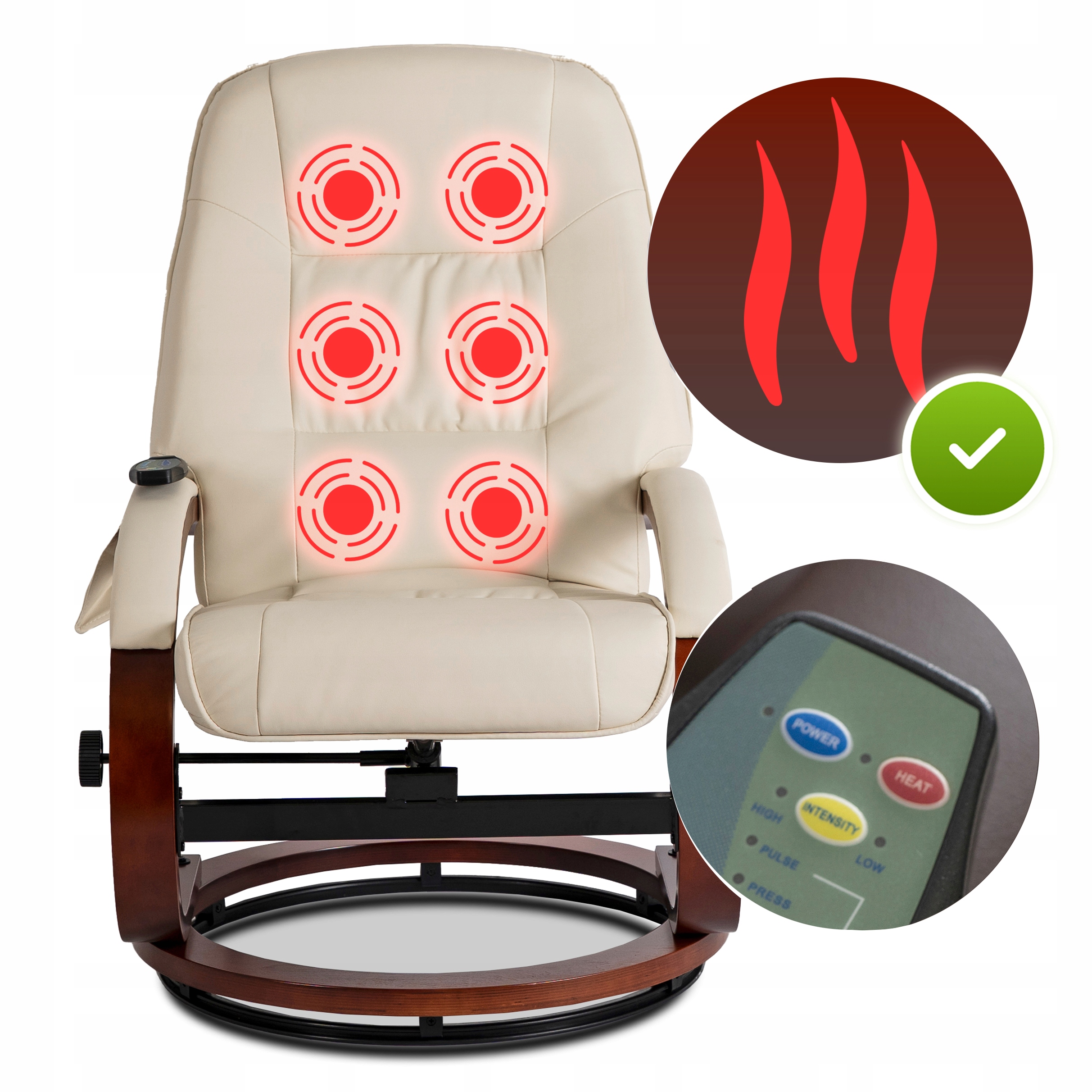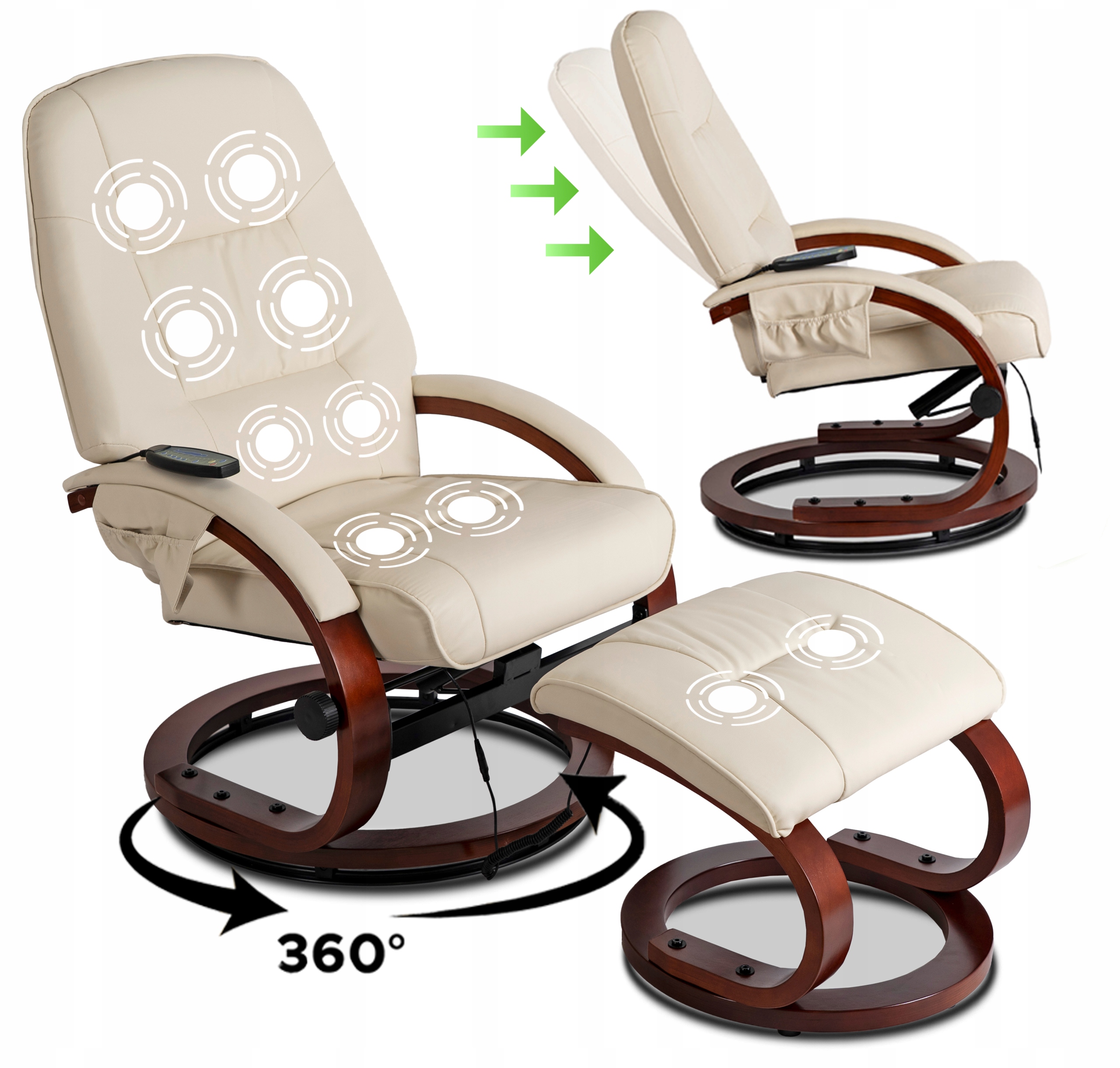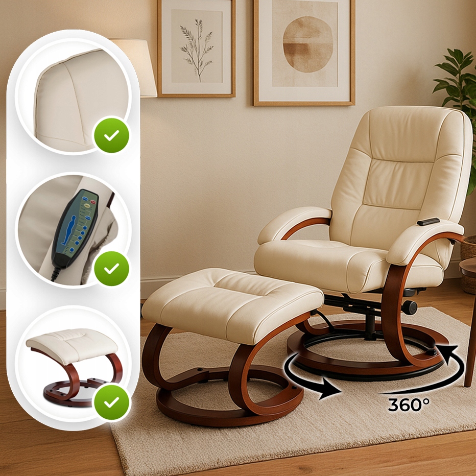 ✨ Fotel Masujący Z Podnóżkiem Wypoczynkowy Z Masażem Obrotowy Beżowy CANO