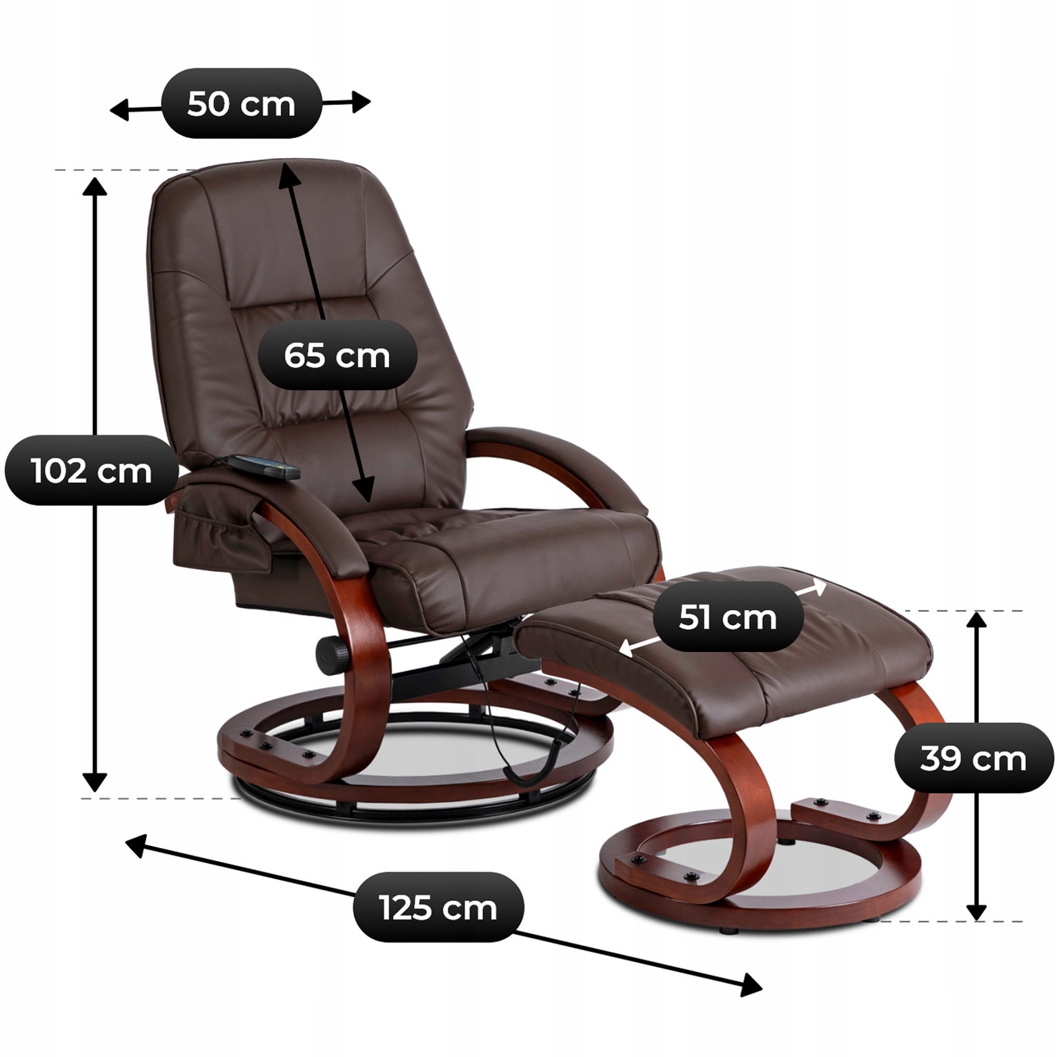 Całością sterujesz za pomocą intuicyjnego pilota, bez konieczności wstawania z fotela – komfort, regeneracja i relaks zawsze w zasięgu ręki.