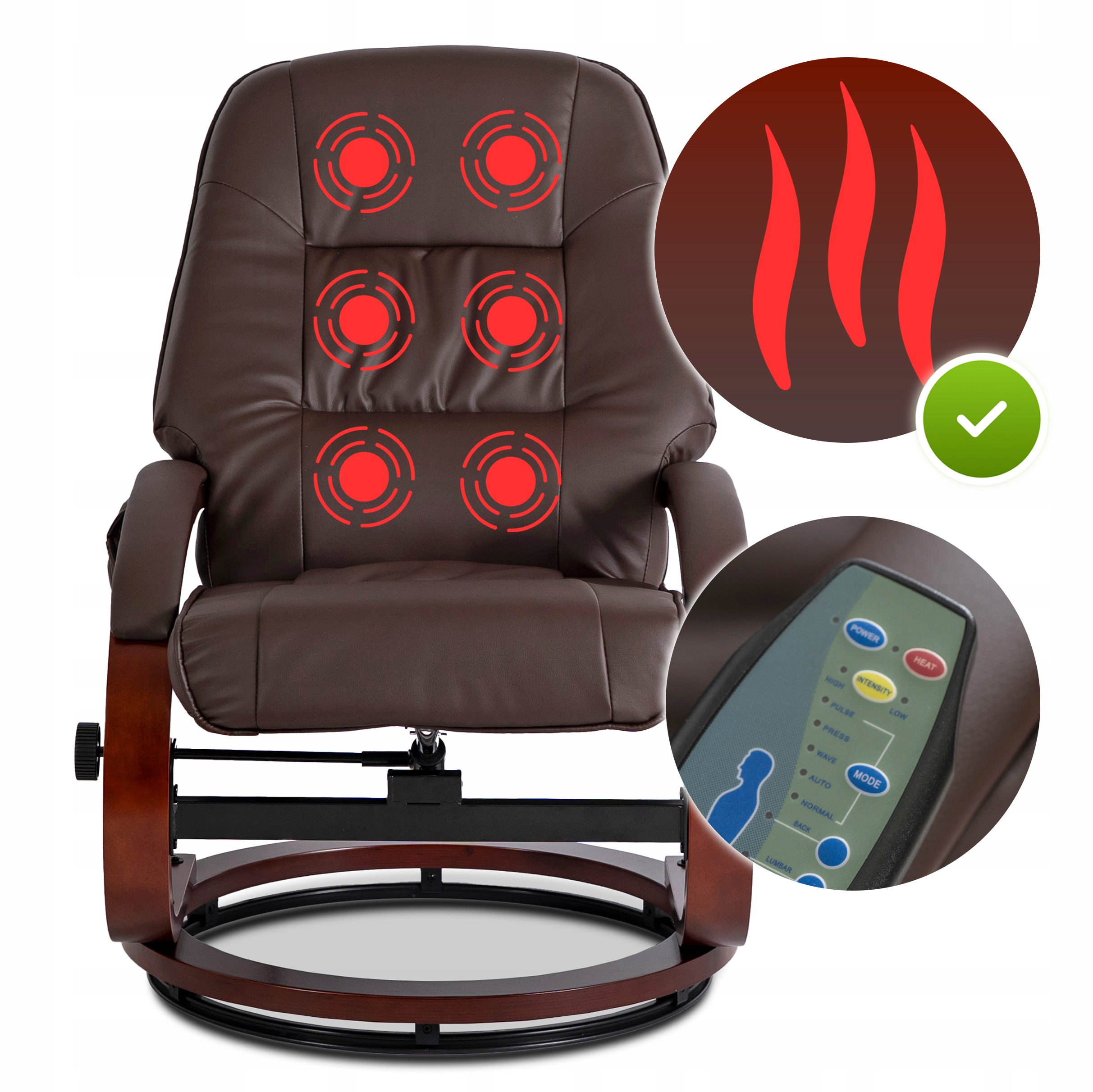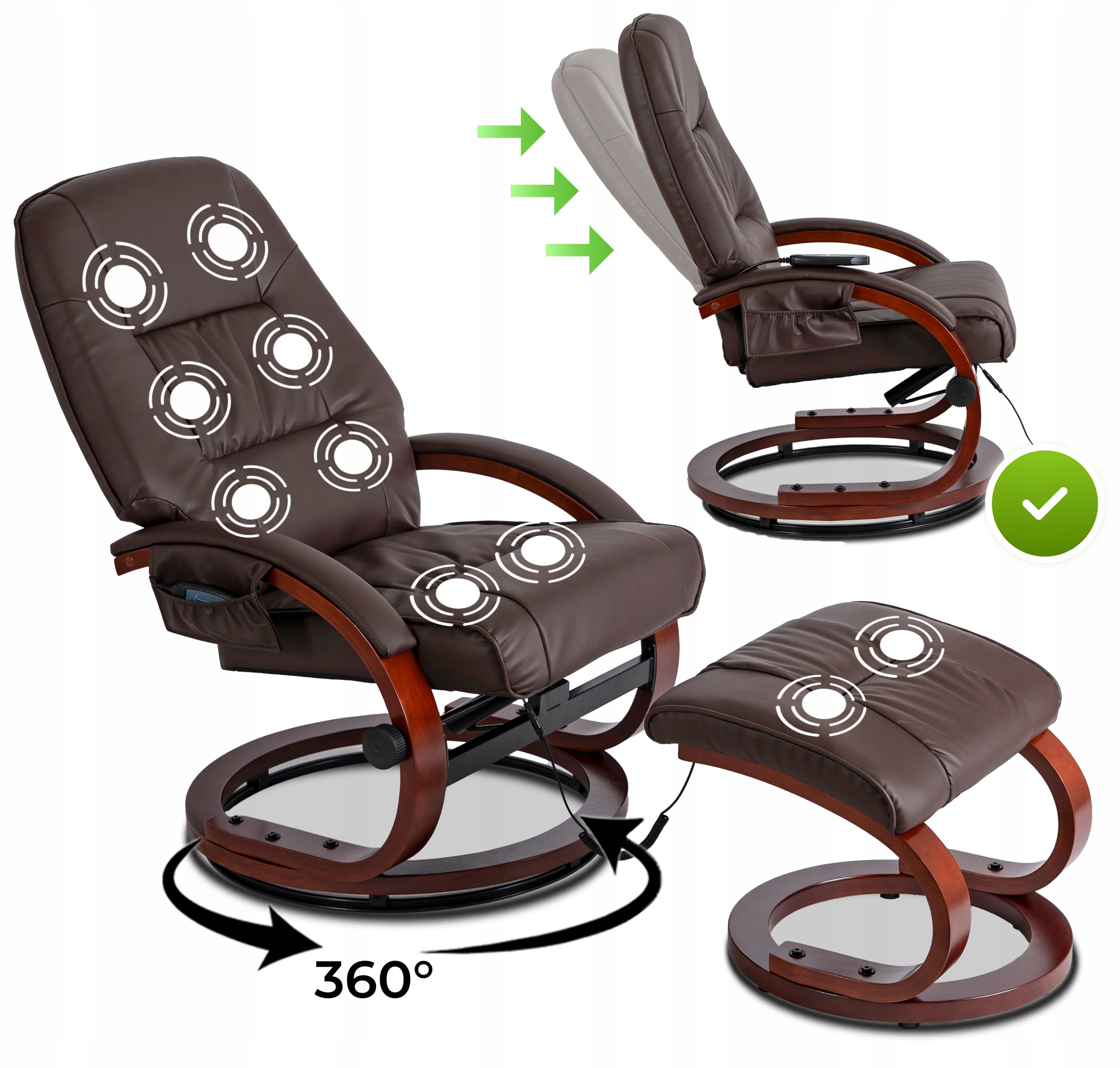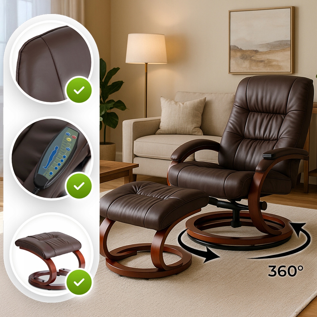 ✨ Fotel Masujący Z Podnóżkiem Wypoczynkowy Z Masażem Obrotowy Brązowy CANO