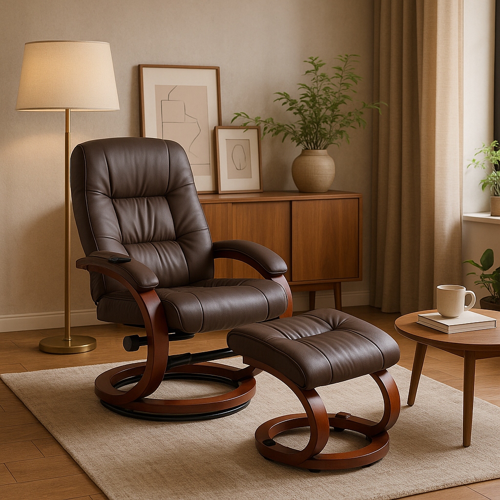 Fotel CANO w szlachetnym odcieniu brązu to połączenie elegancji i wygody. Tapicerka z miękkiej, ekoskóry otula ciało, a wbudowany system masażu z funkcją podgrzewania zamienia każdy moment w domowy relaks.