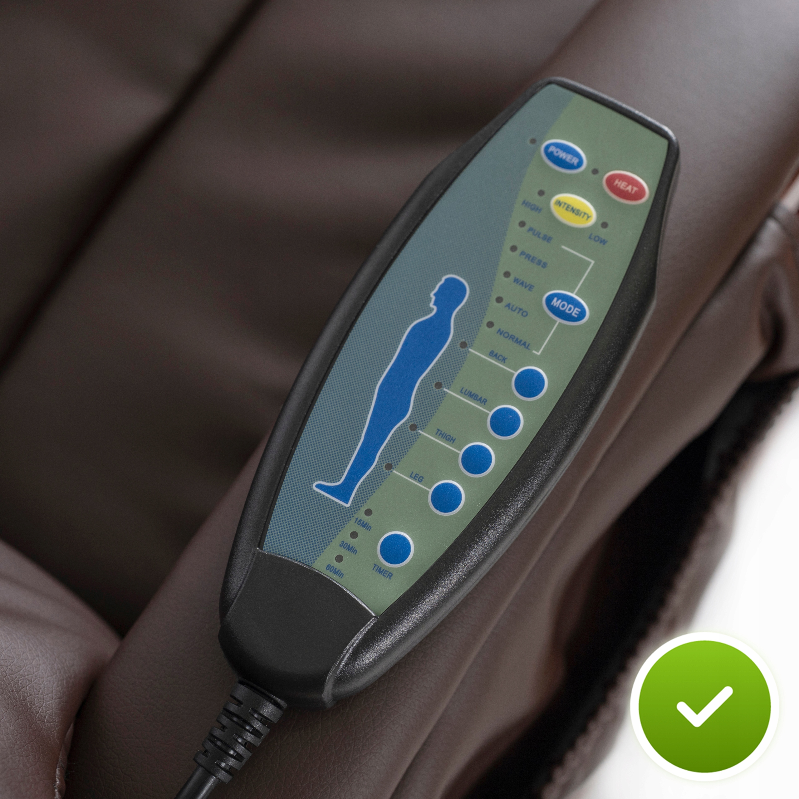 Fotel CANO wyposażono w praktyczny pilot, dzięki któremu włączysz masaż, dopasujesz jego intensywność oraz uruchomisz funkcję grzania jednym kliknięciem.