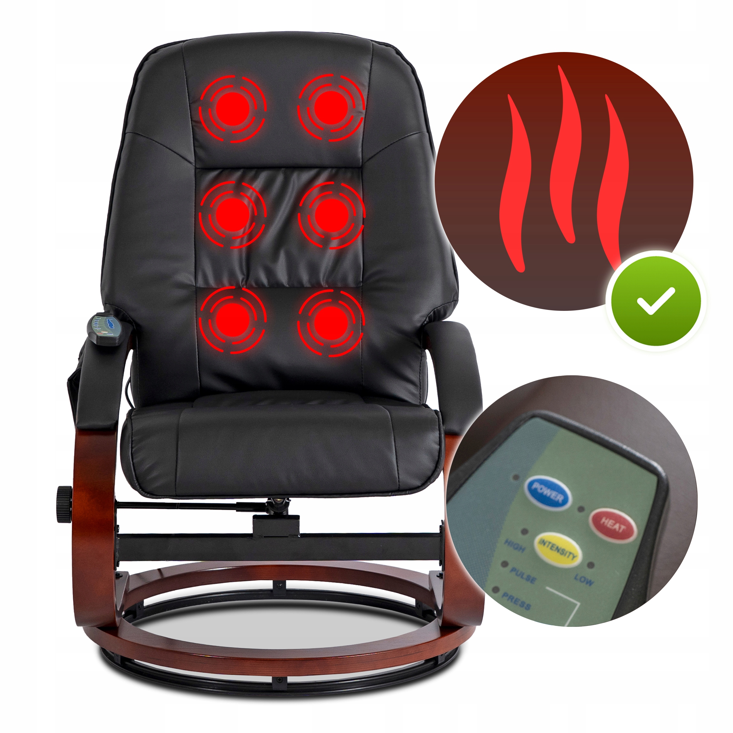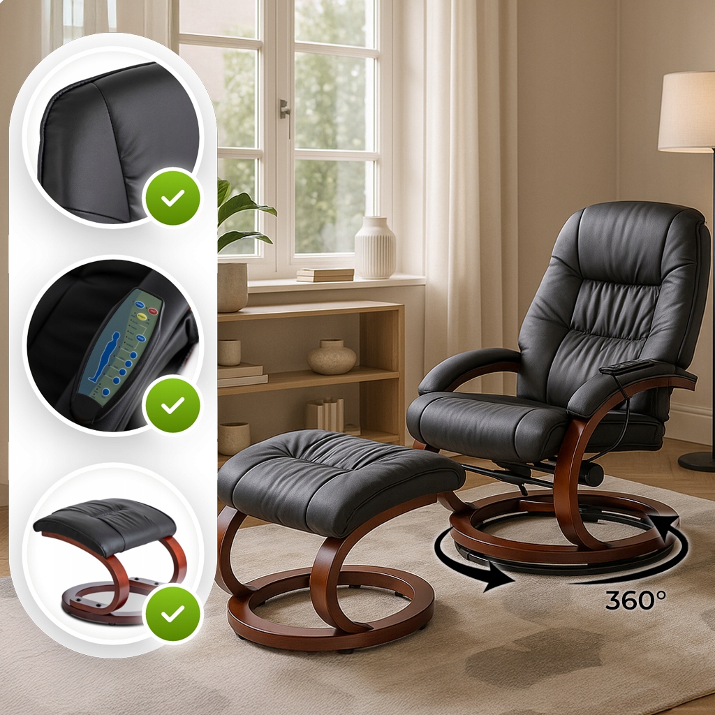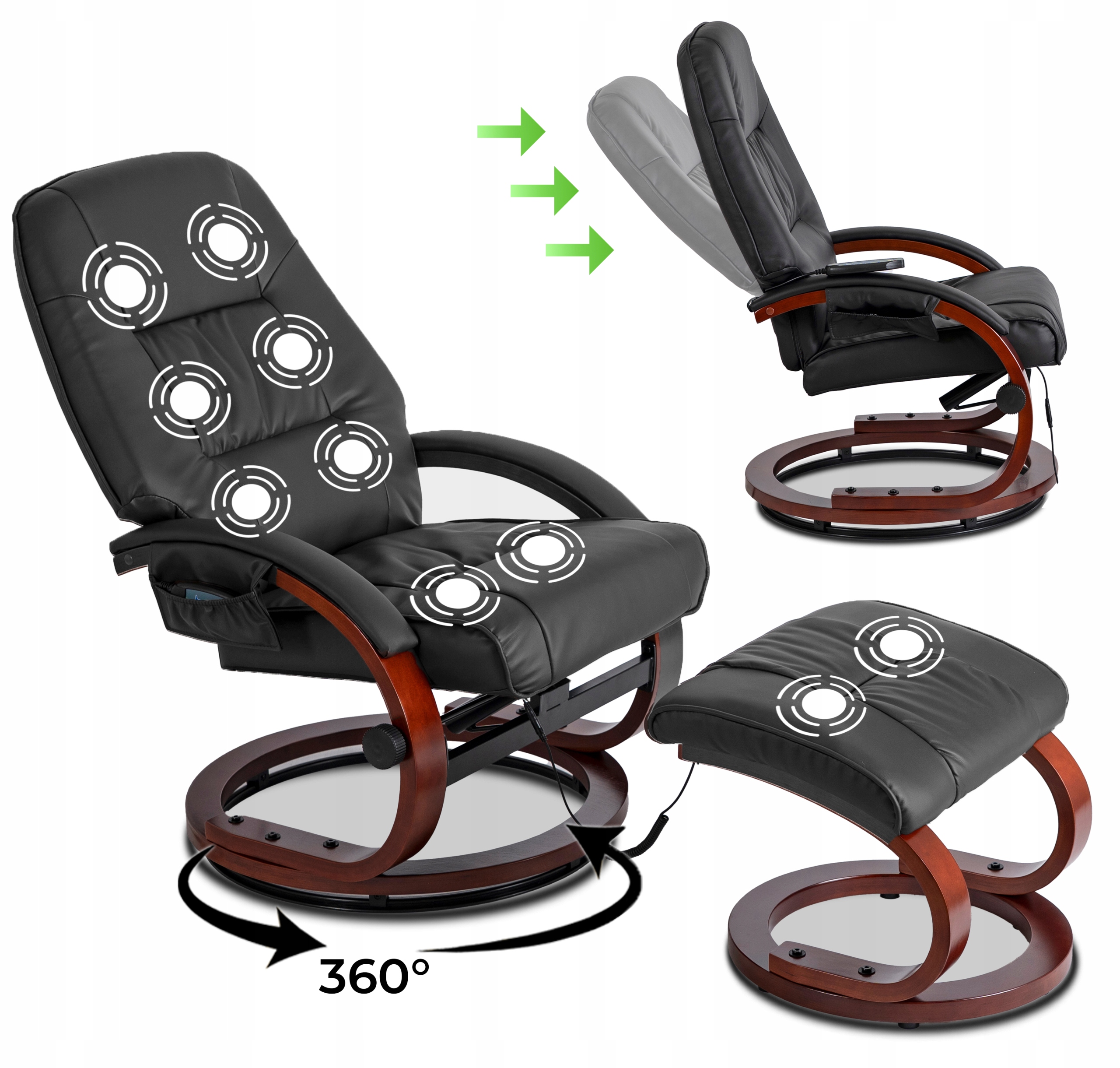 ✨ Fotel Masujący Z Podnóżkiem Wypoczynkowy Z Masażem Obrotowy Czarny CANO