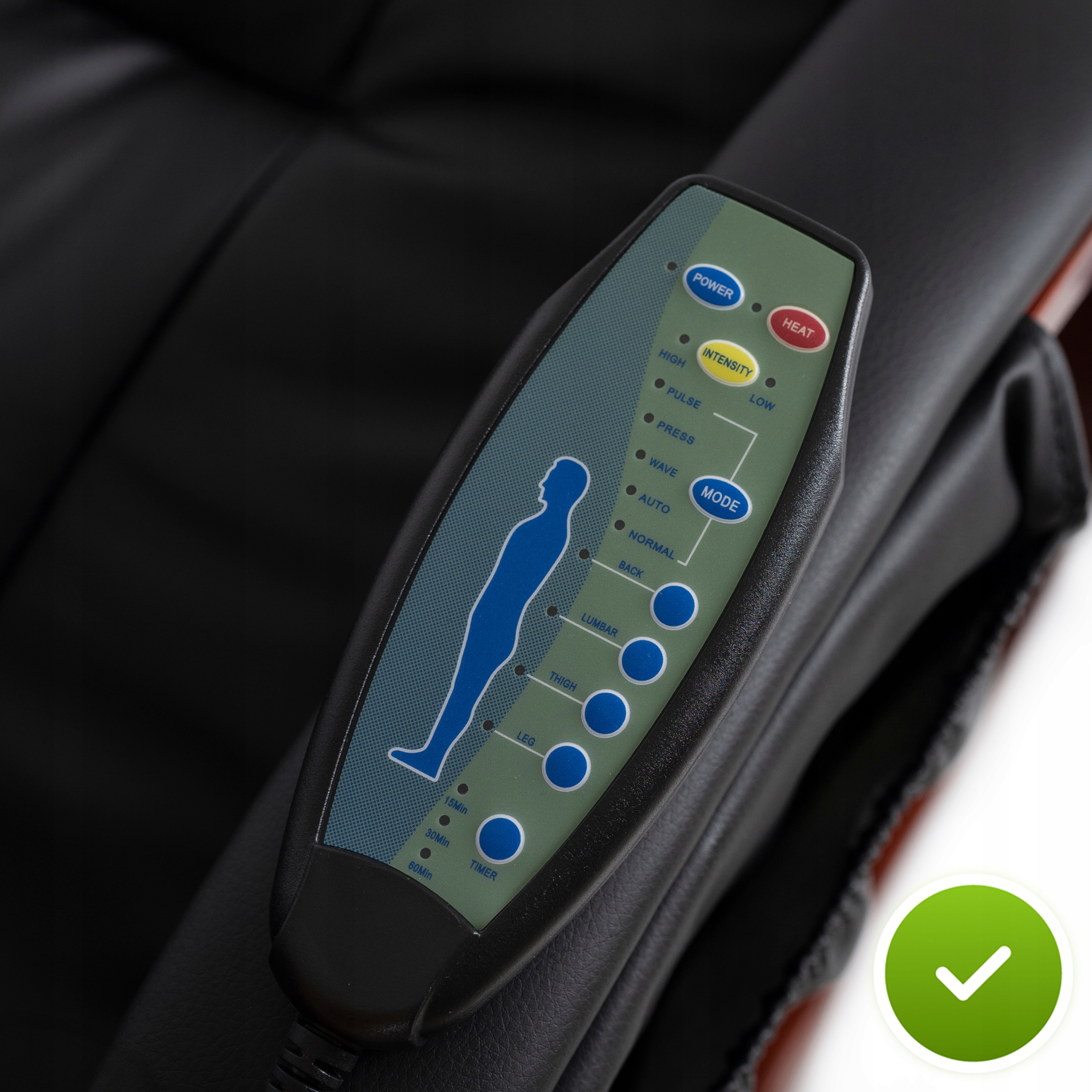 Fotel CANO wyposażono w praktyczny pilot, dzięki któremu włączysz masaż, dopasujesz jego intensywność oraz uruchomisz funkcję grzania jednym kliknięciem.