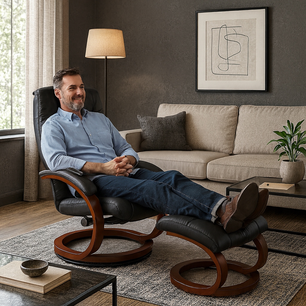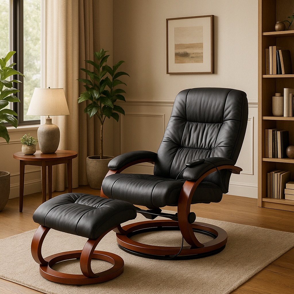 Całością sterujesz za pomocą intuicyjnego pilota, bez konieczności wstawania z fotela – komfort, regeneracja i relaks zawsze w zasięgu ręki.