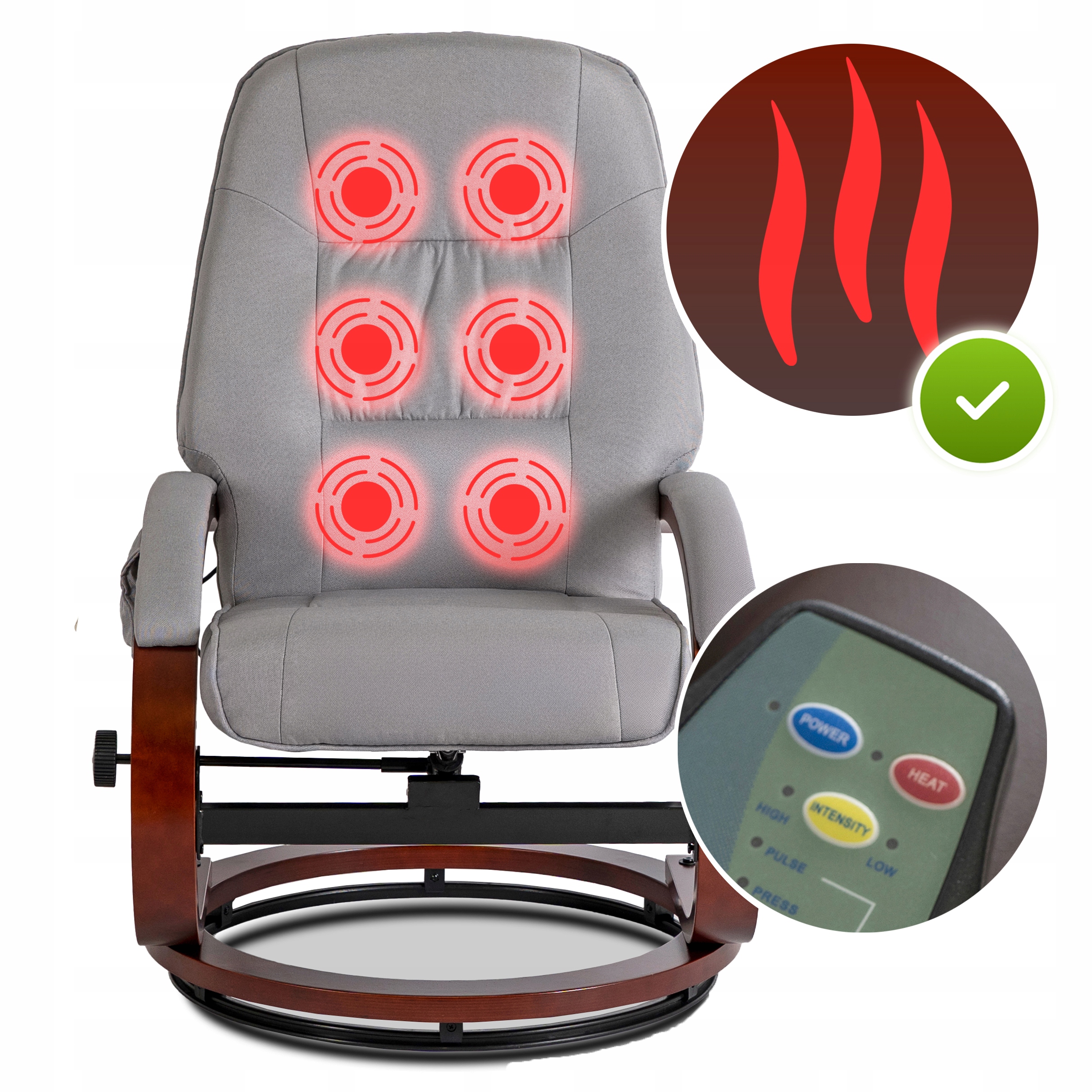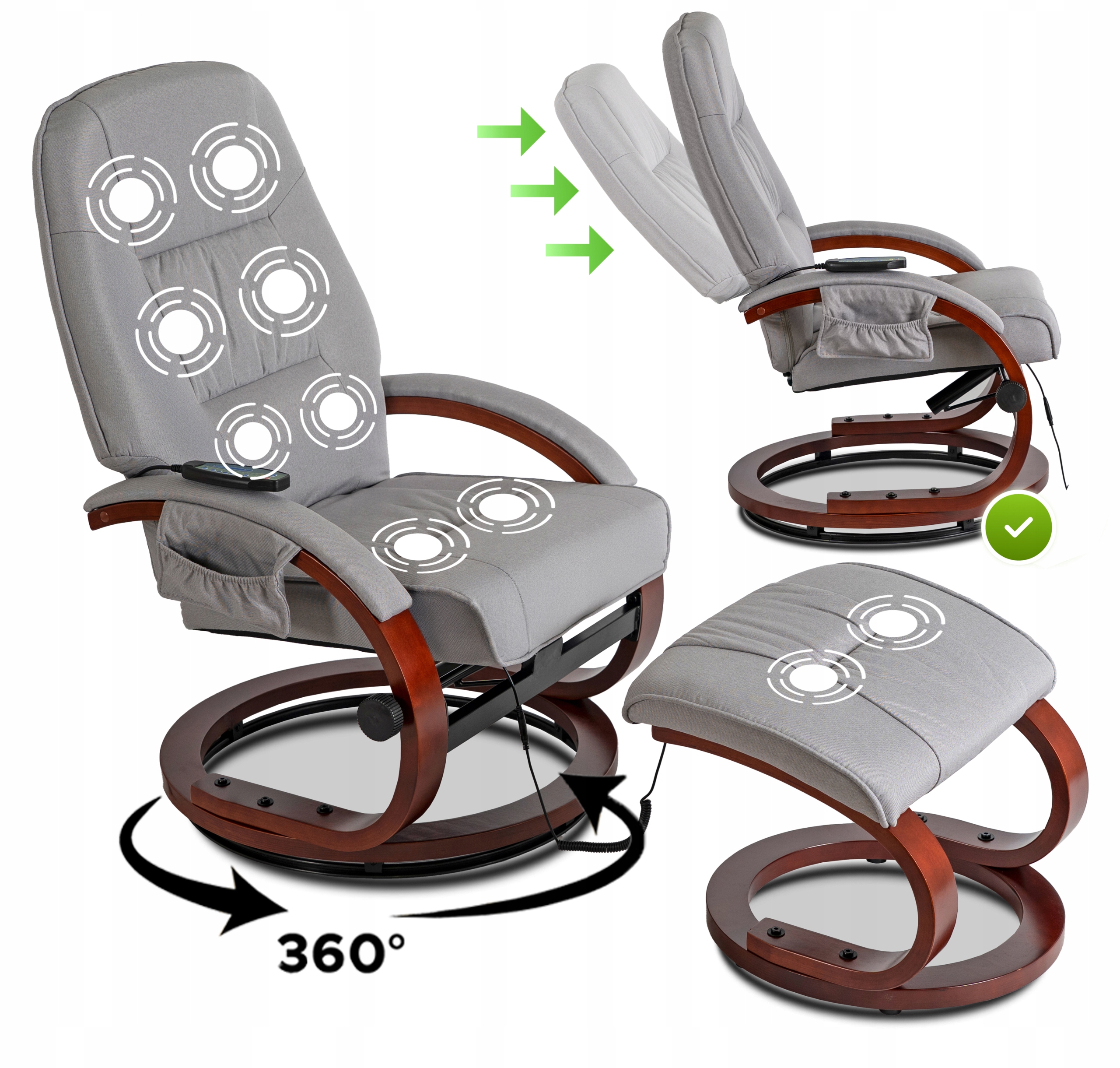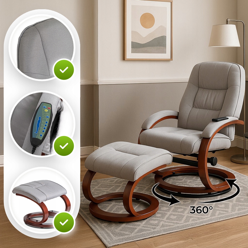 ✨ Fotel Masujący Z Podnóżkiem Wypoczynkowy Z Masażem Obrotowy Szary CANO