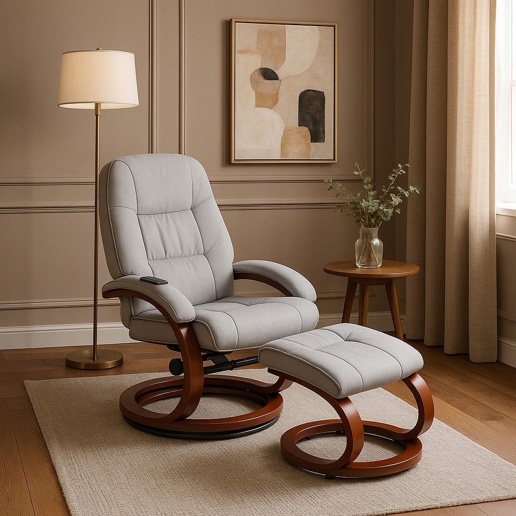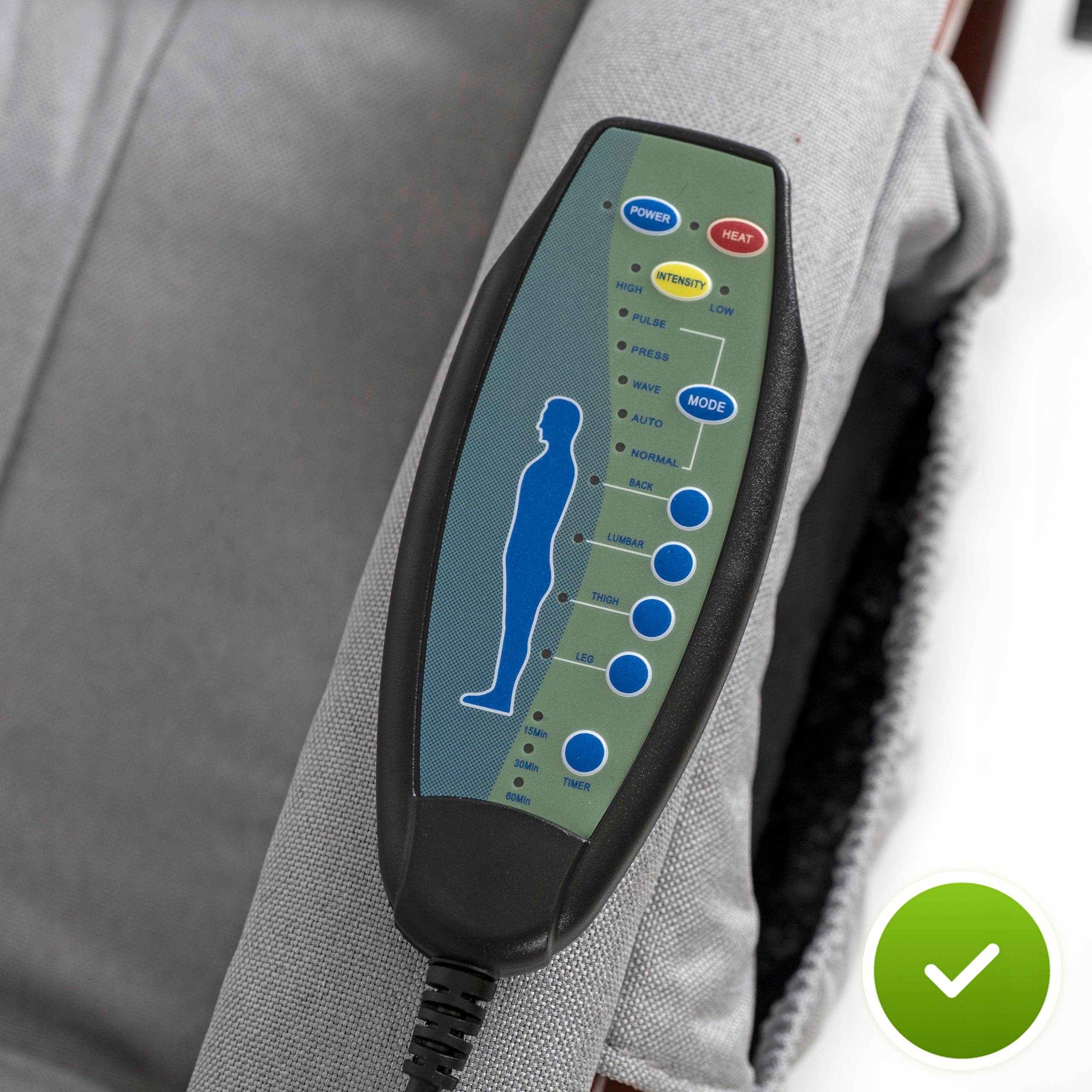 Całością sterujesz za pomocą intuicyjnego pilota, bez konieczności wstawania z fotela – komfort, regeneracja i relaks zawsze w zasięgu ręki.
