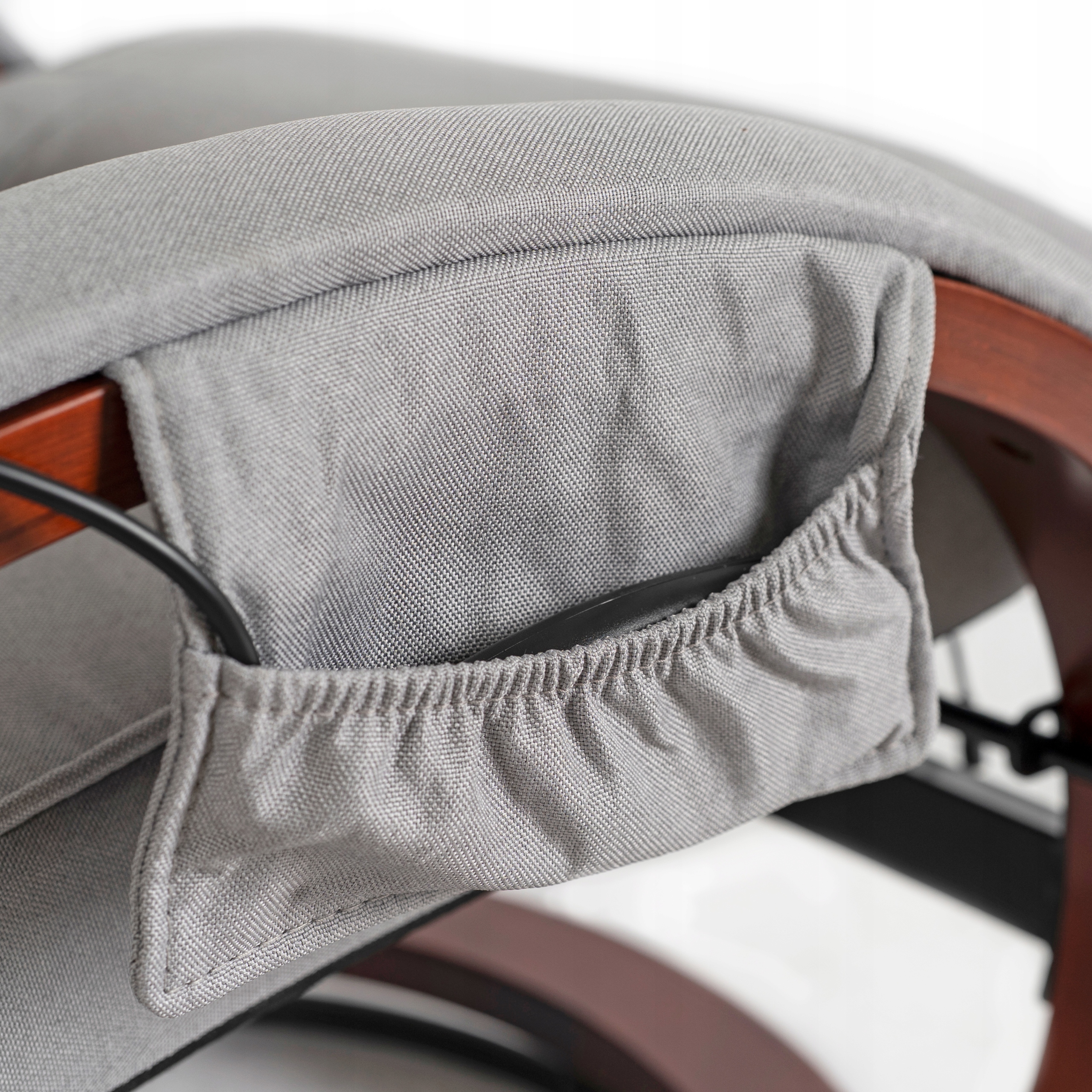 Dodatkowo pilot ma swoje stałe miejsce – poręczną boczną kieszeń, dzięki której zawsze jest pod ręką. To rozwiązanie sprawia, że korzystanie z fotela jest nie tylko komfortowe, ale też wyjątkowo wygodne na co dzień.