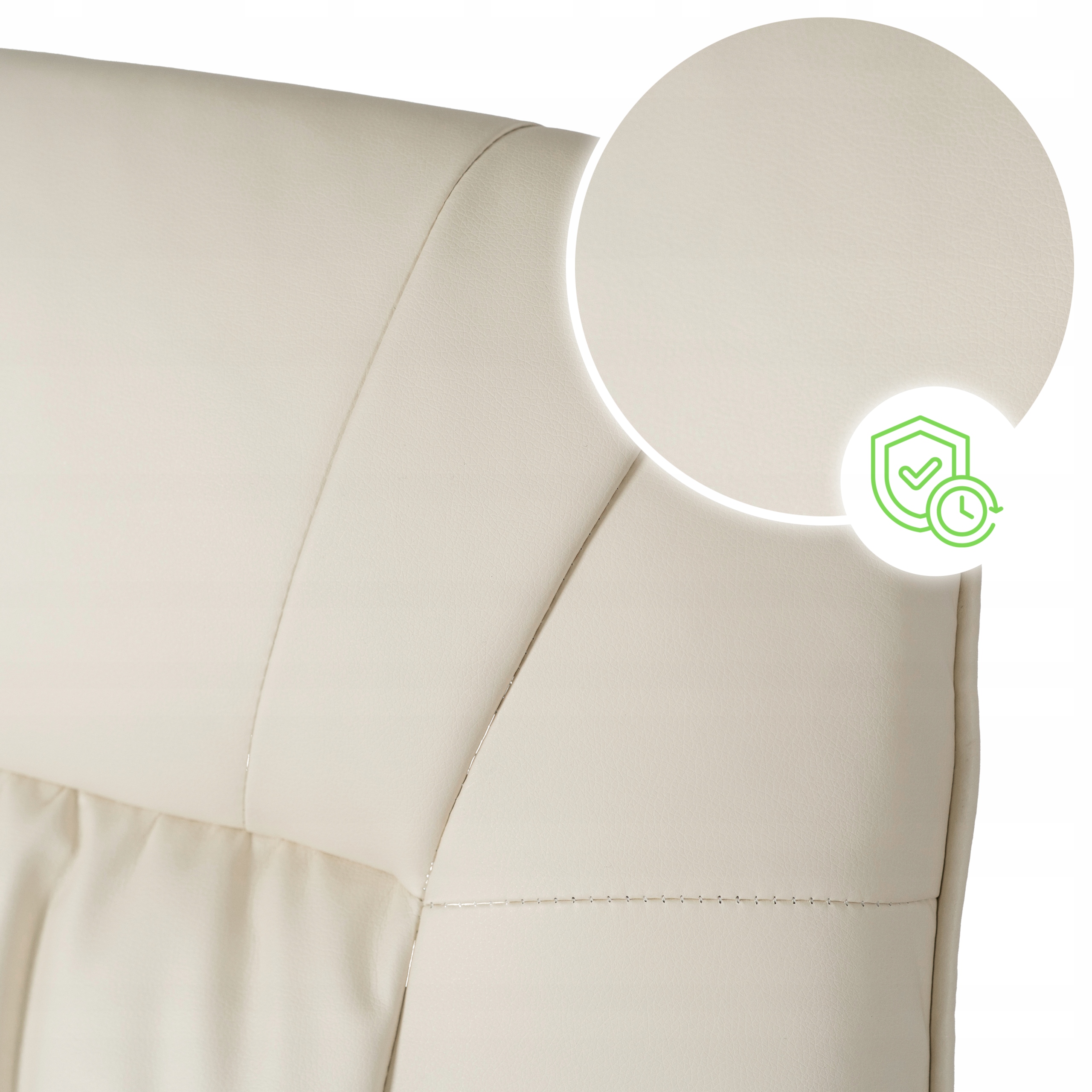 Tapicerowany wysokiej jakości ekoskórą, która jest odporna na codzienne użytkowanie i łatwa w czyszczeniu.