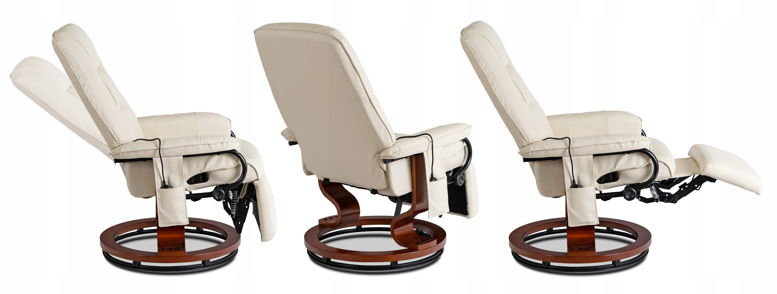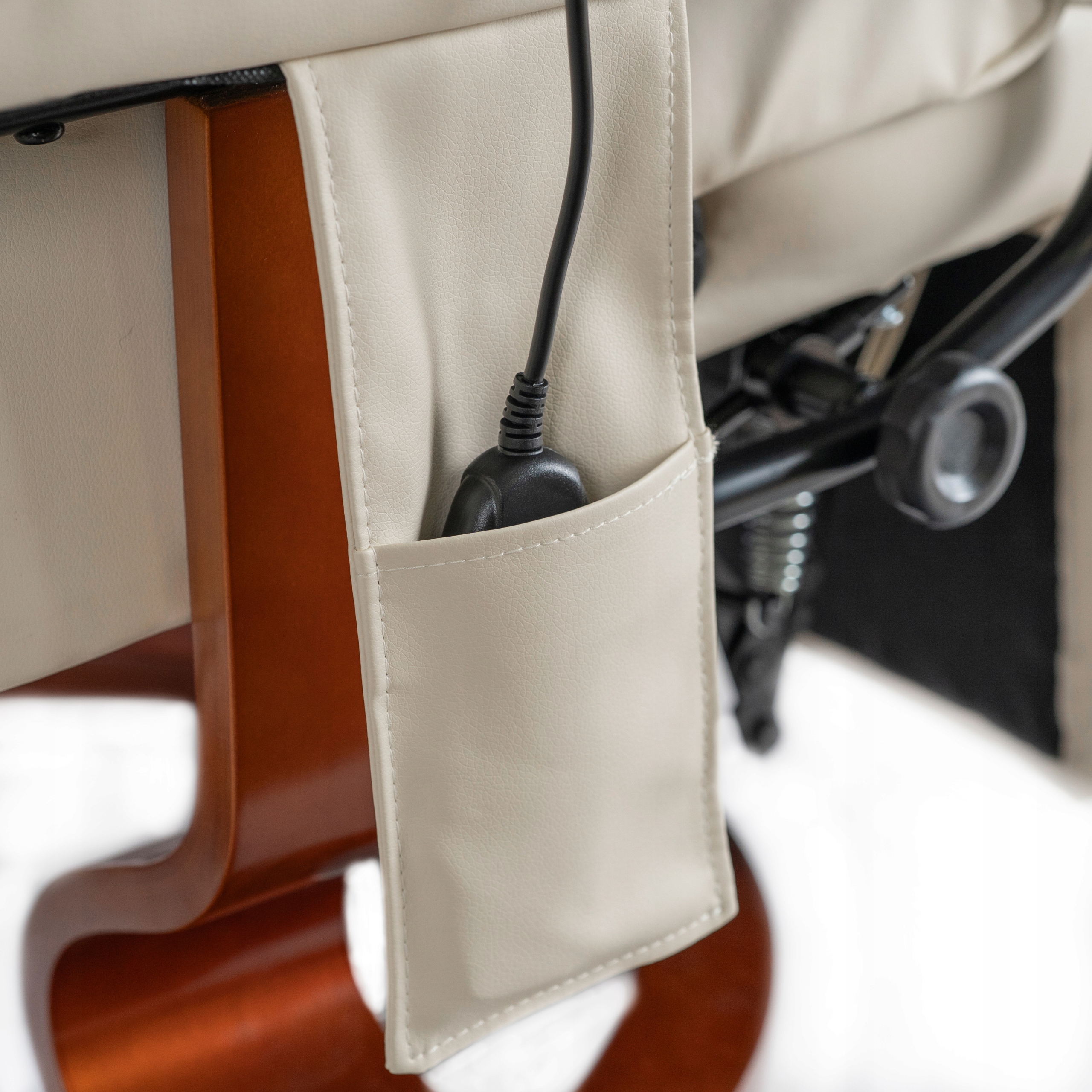Dodatkowo pilot ma swoje stałe miejsce – poręczną boczną kieszeń, dzięki której zawsze jest pod ręką. To rozwiązanie sprawia, że korzystanie z fotela jest nie tylko komfortowe, ale też wyjątkowo wygodne na co dzień.