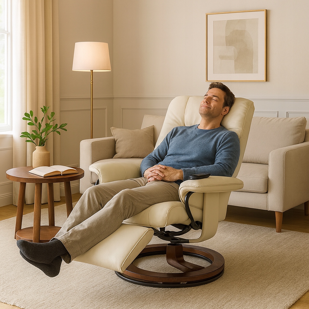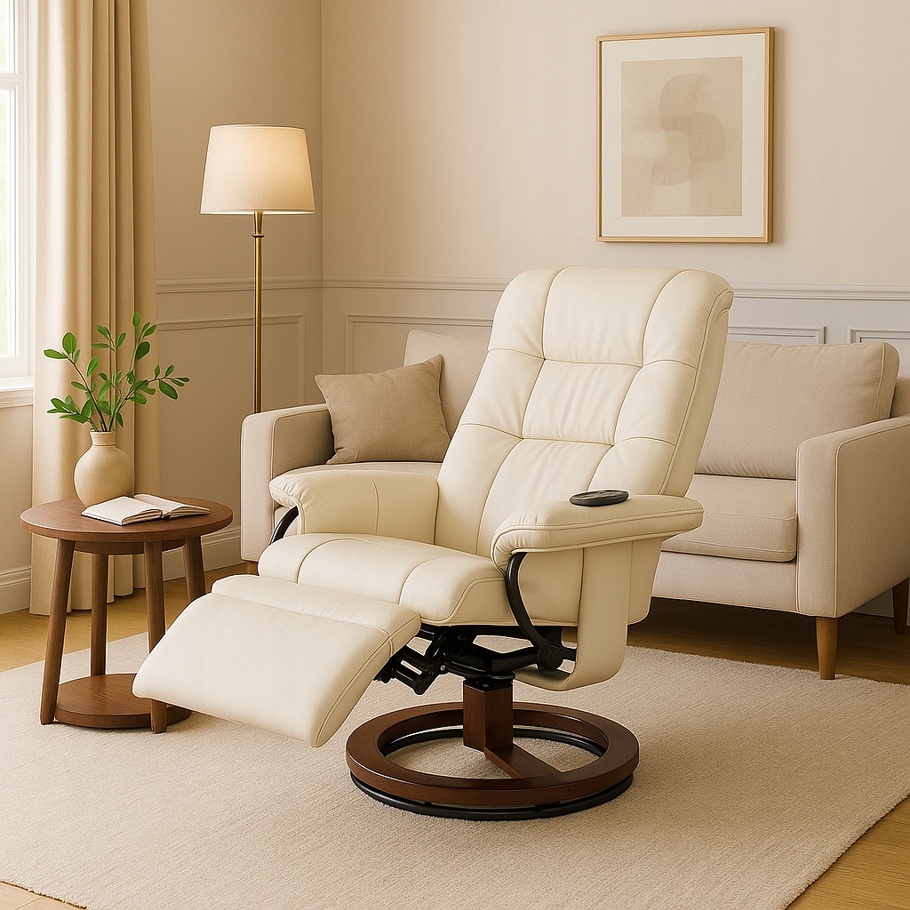 Całością sterujesz za pomocą intuicyjnego pilota, bez konieczności wstawania z fotela – komfort, regeneracja i relaks zawsze w zasięgu ręki.