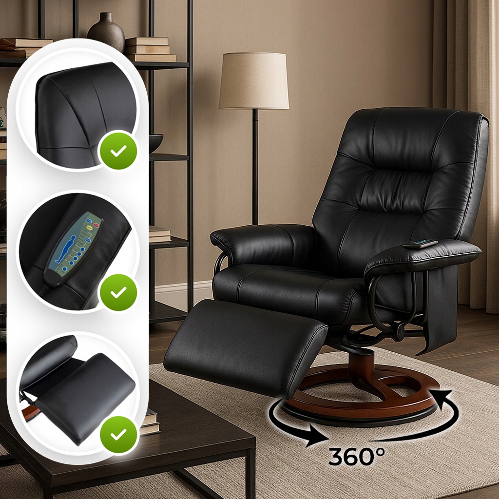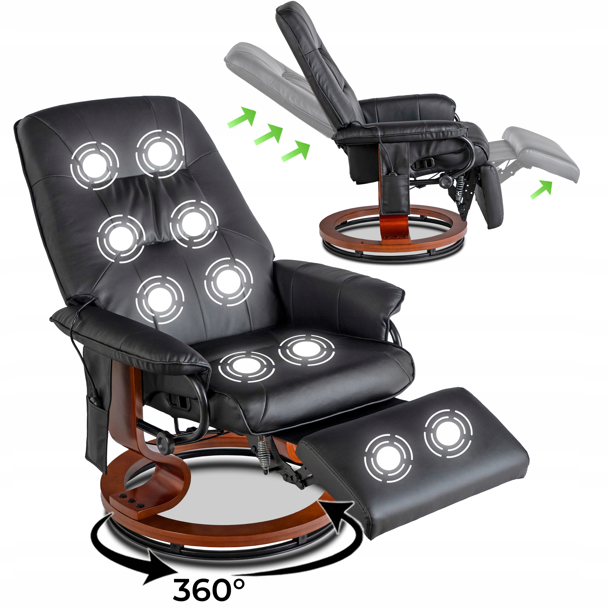✨ Fotel Masujący Z Podnóżkiem Wypoczynkowy Z Masażem Wygodny Czarny WEST