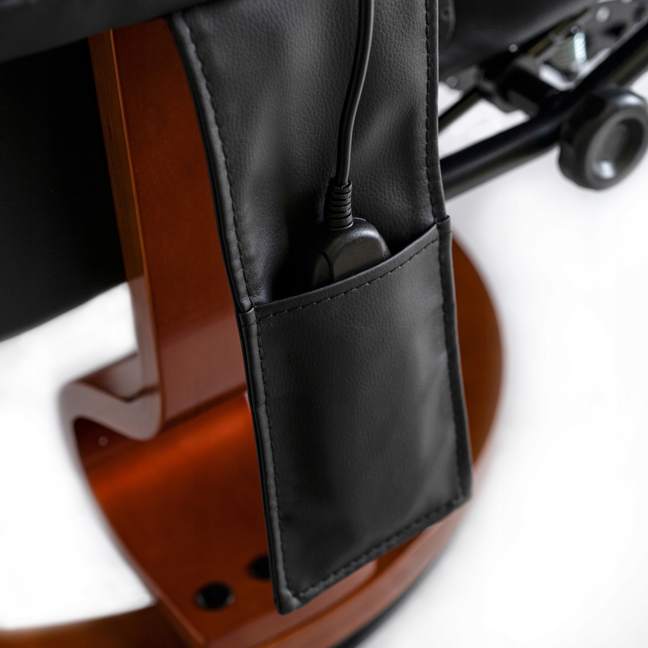 Dodatkowo pilot ma swoje stałe miejsce – poręczną boczną kieszeń, dzięki której zawsze jest pod ręką. To rozwiązanie sprawia, że korzystanie z fotela jest nie tylko komfortowe, ale też wyjątkowo wygodne na co dzień.