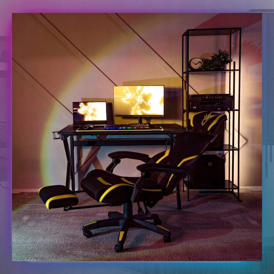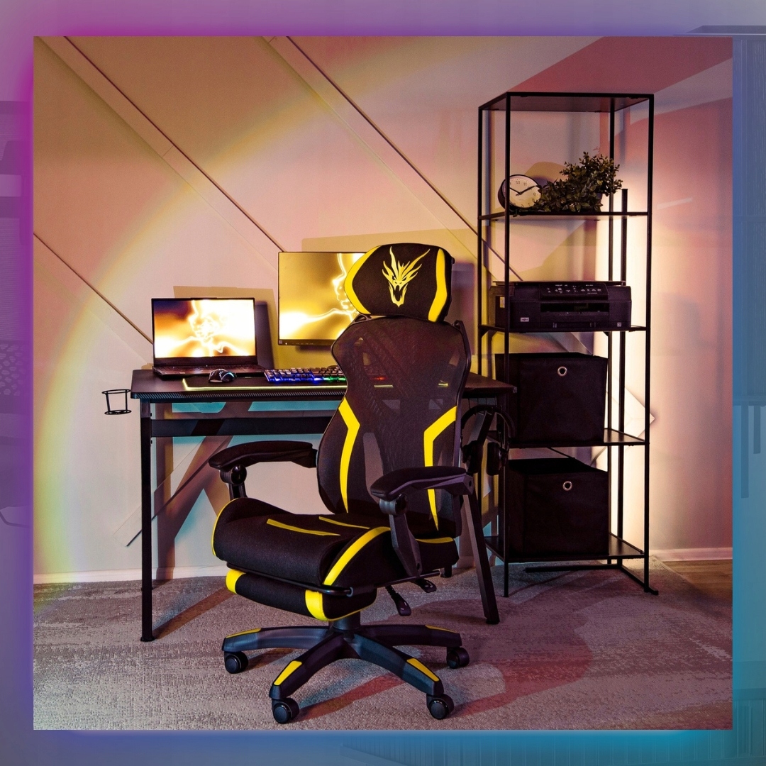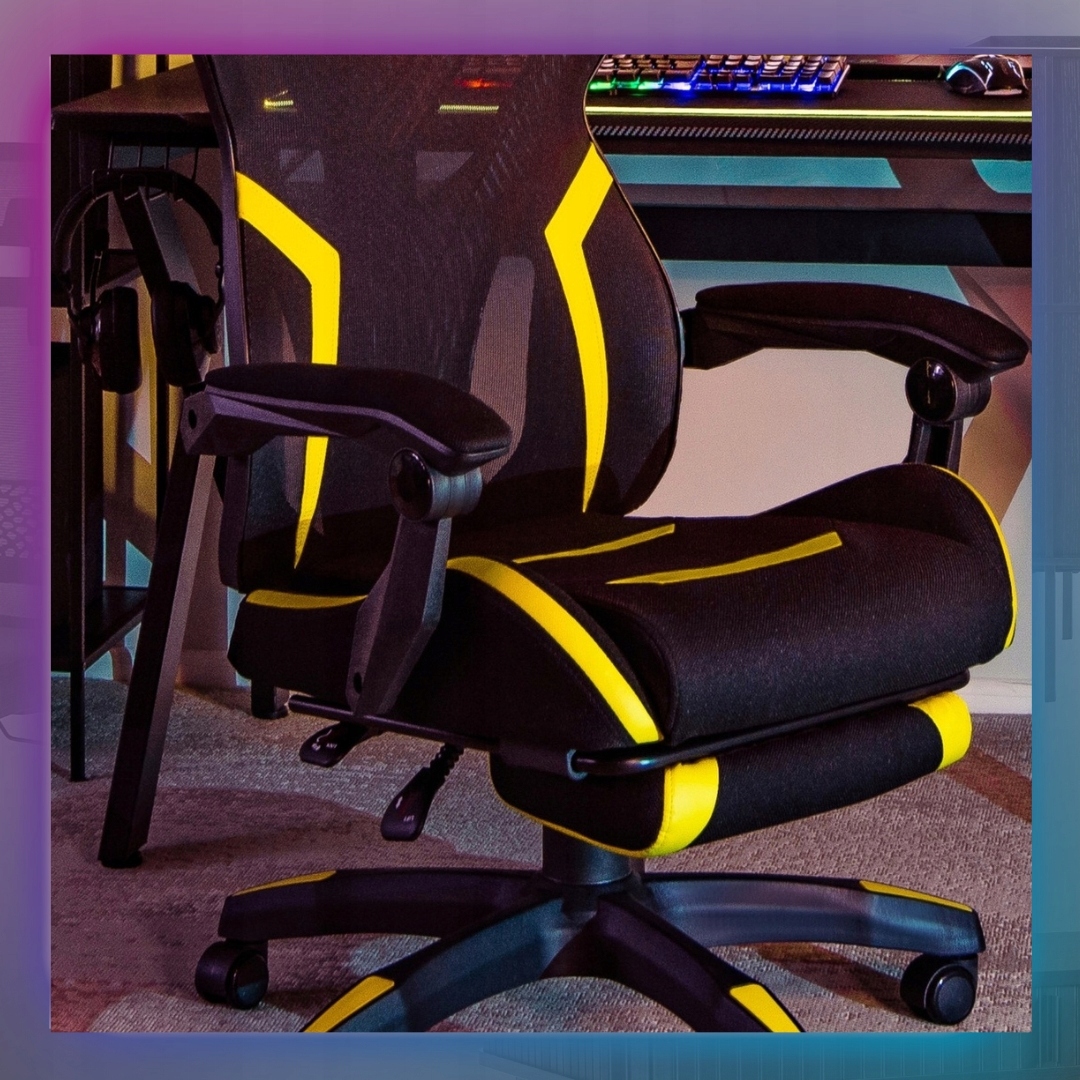 Fotel Obrotowy Gamingowy z Podnóżkiem Młodzieżowy Czarny Żółty MAXIMO ⭐⭐⭐⭐⭐