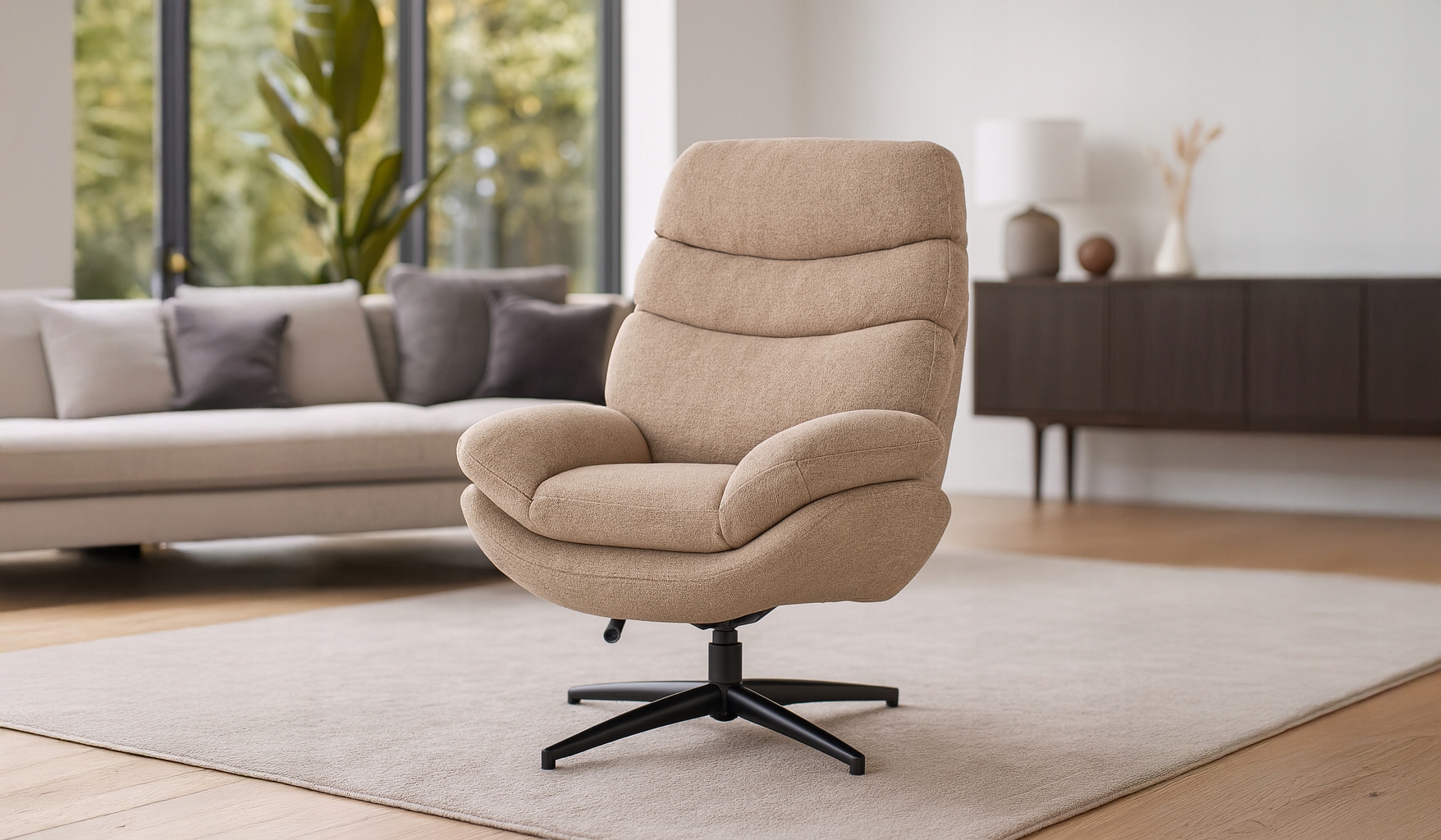 Nowoczesna forma, miękkie siedzisko i unikalne przeszycia sprawiają, że fotel przyciąga spojrzenia. Elegancka,beżowa tkanina pasuje do każdego wnętrza – od minimalistycznych aranżacji po luksusowe salony. Fotel ASTURIA zapewnia relaks na najwyższym poziomie.