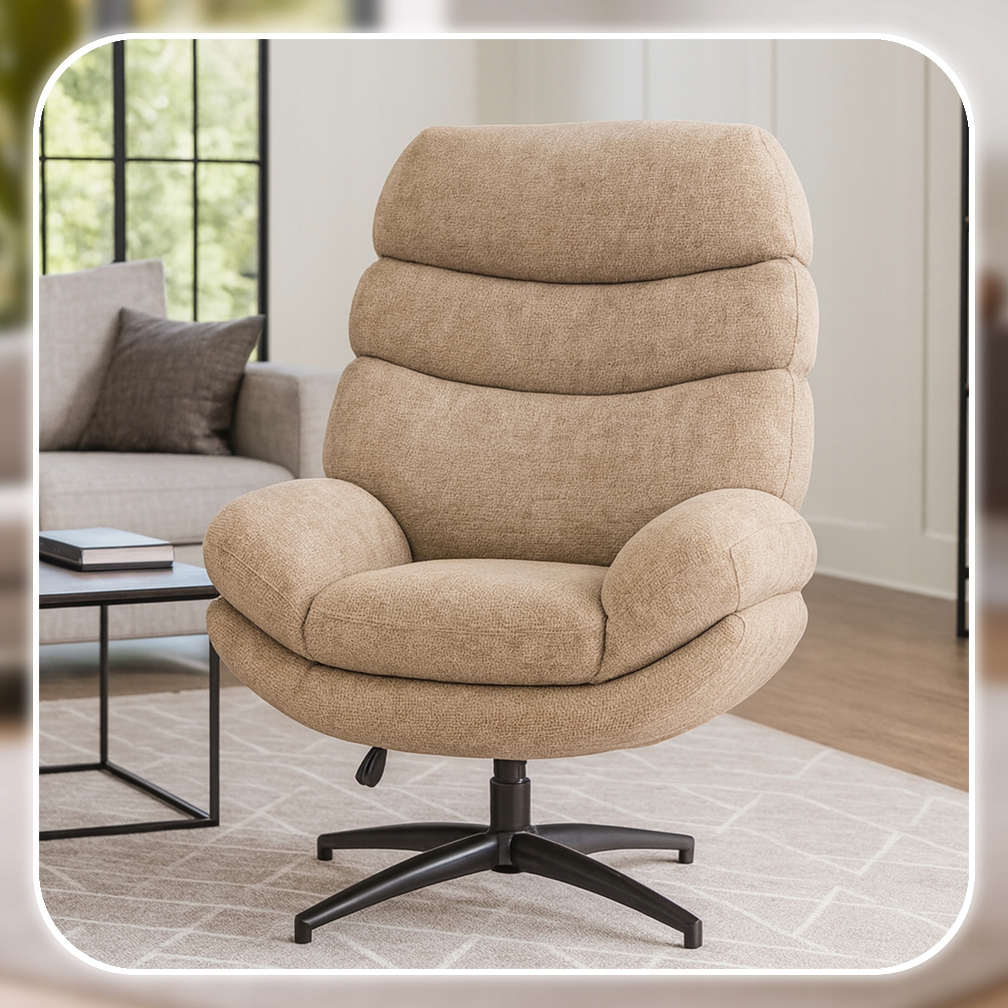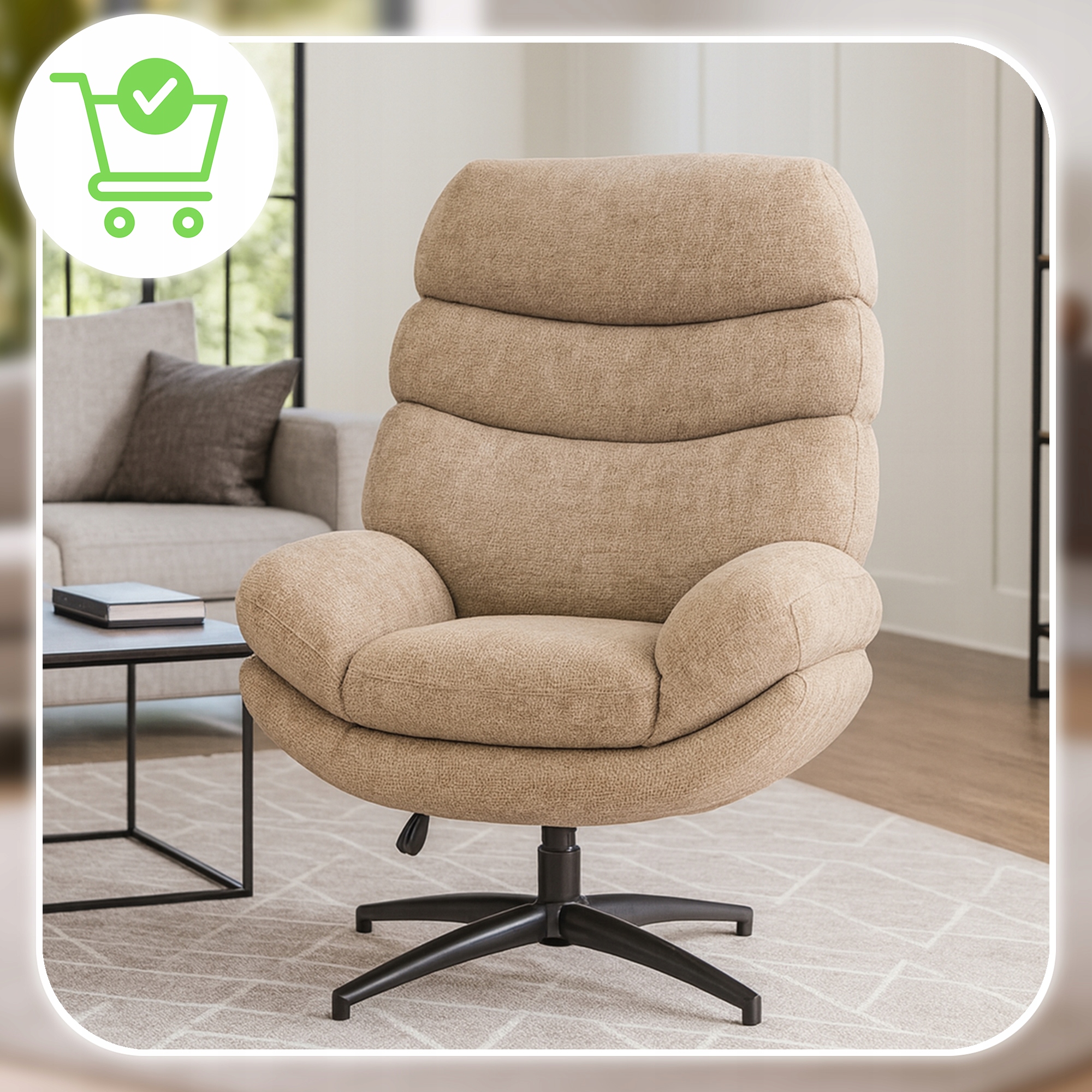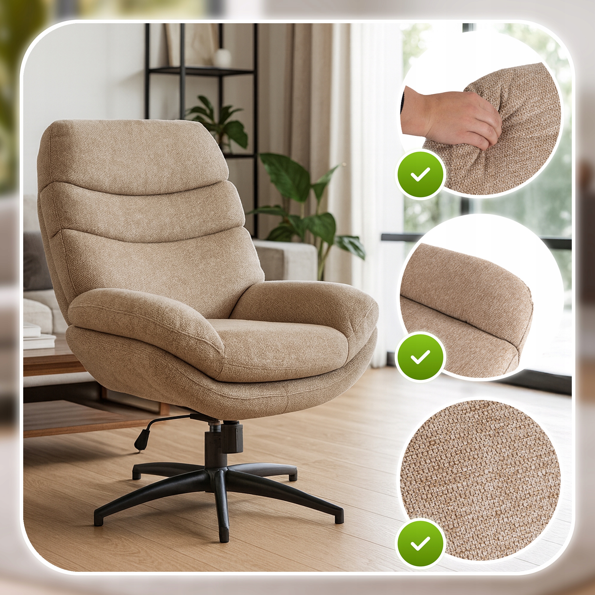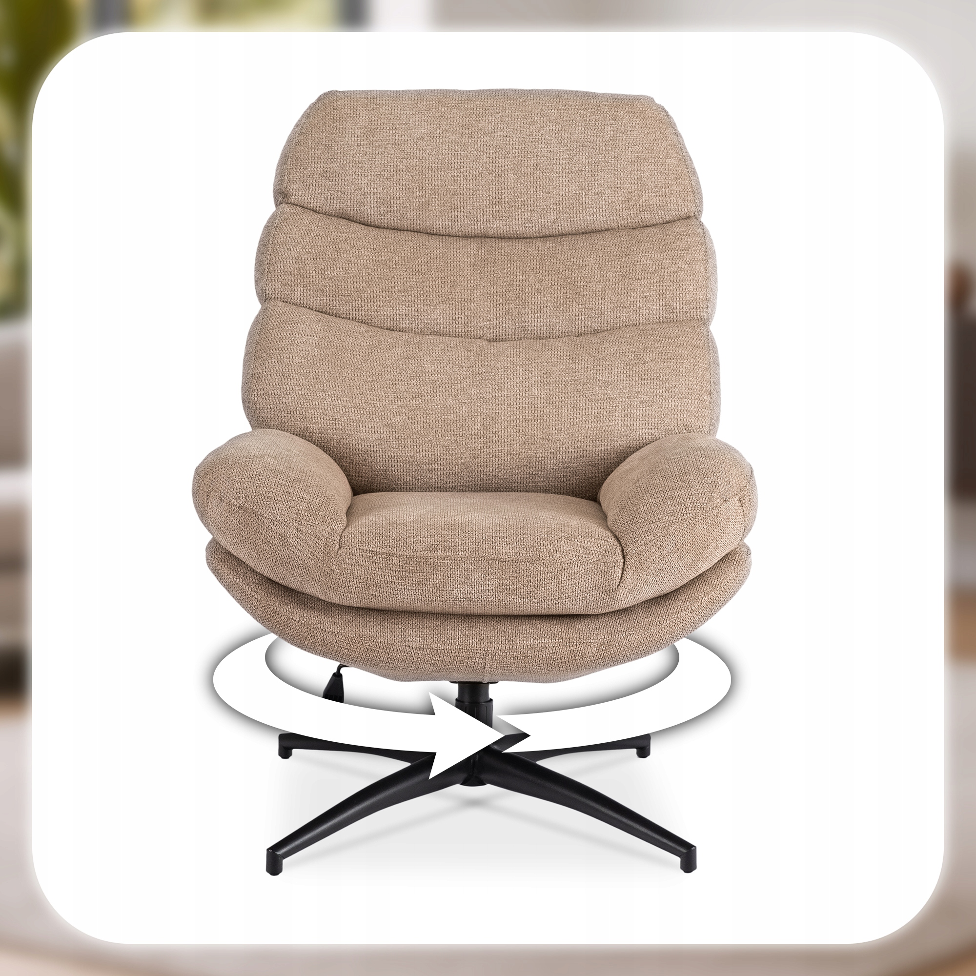 ✨ Fotel Obrotowy Wypoczynkowy Tapicerowany Do Salonu Sypialni Beżowy ASTURIA
