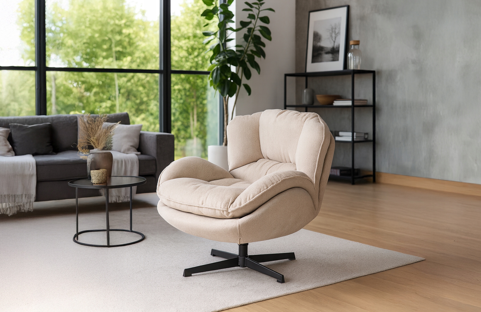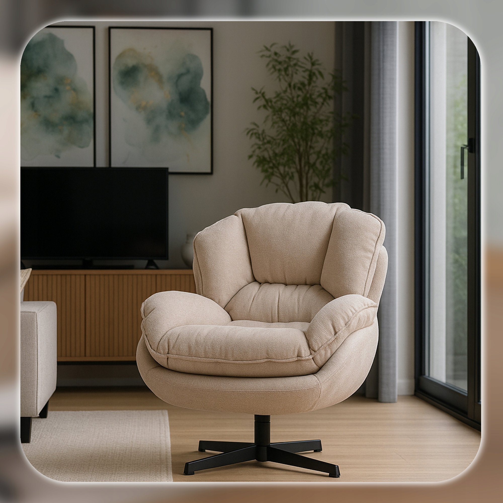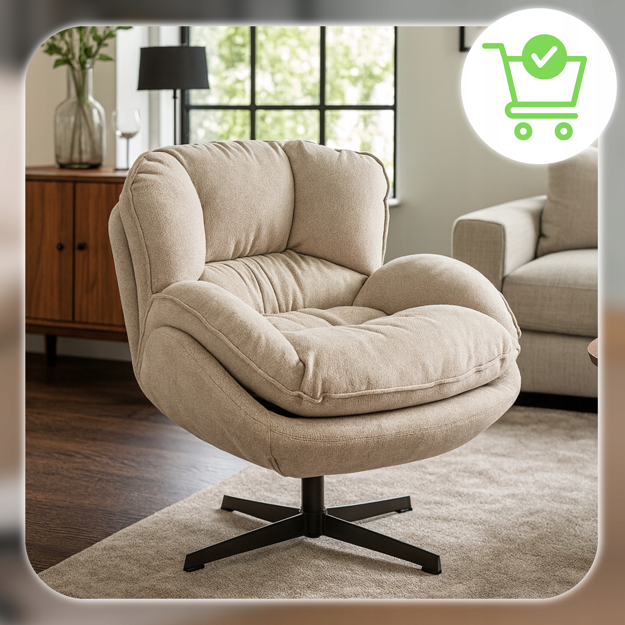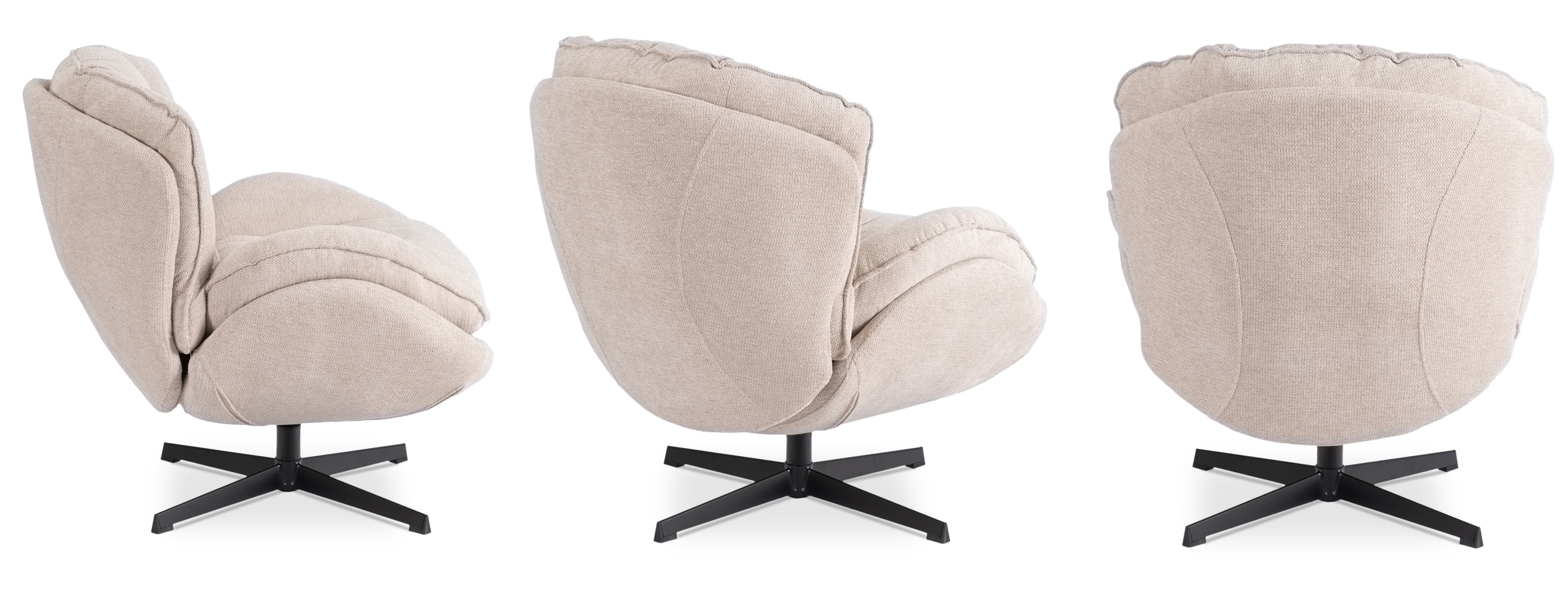 Fotel wyposażony jest w funkcję obrotu o 360°, co zapewnia pełną swobodę ruchu i wygodę w każdej sytuacji. Dzięki stabilnej podstawie i płynnemu mechanizmowi obrotowemu możesz łatwo zmieniać kierunek siedzenia, nie wstając z miejsca. Idealny do salonu, biura lub garderoby – tam, gdzie liczy się komfort i funkcjonalność.