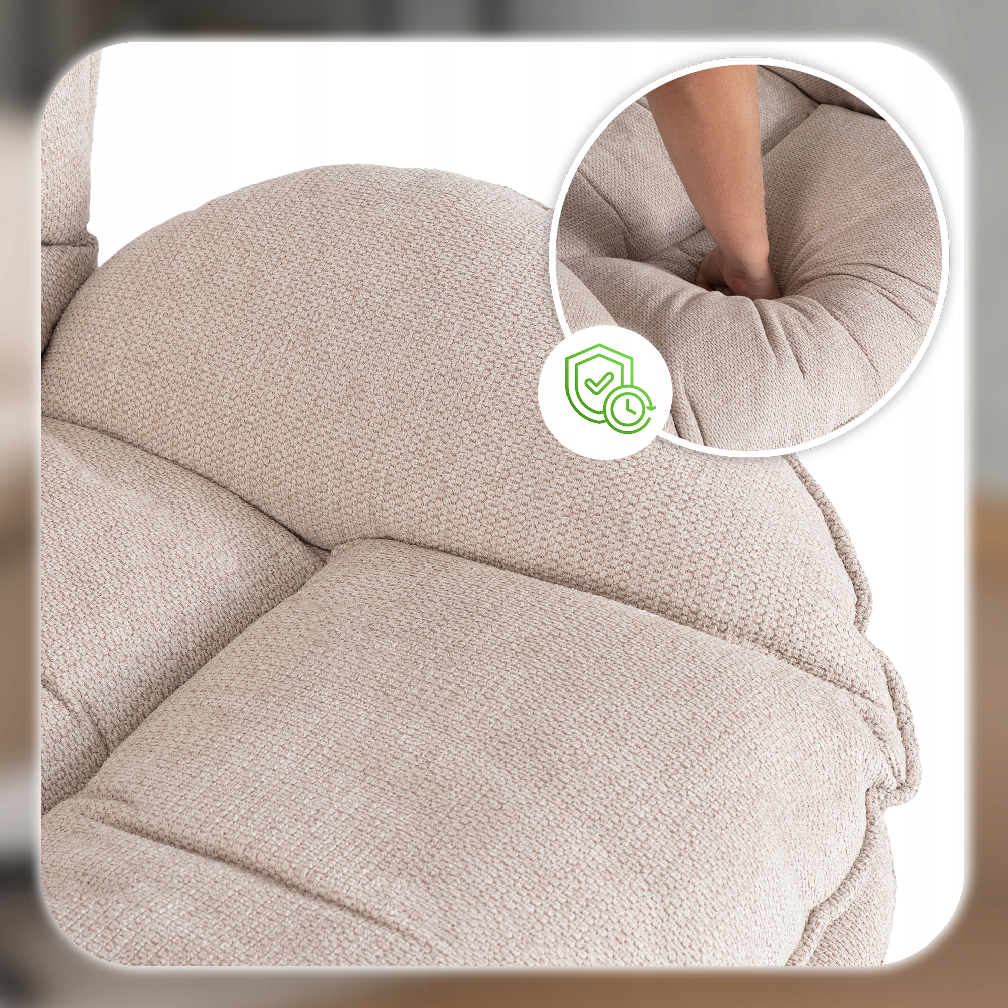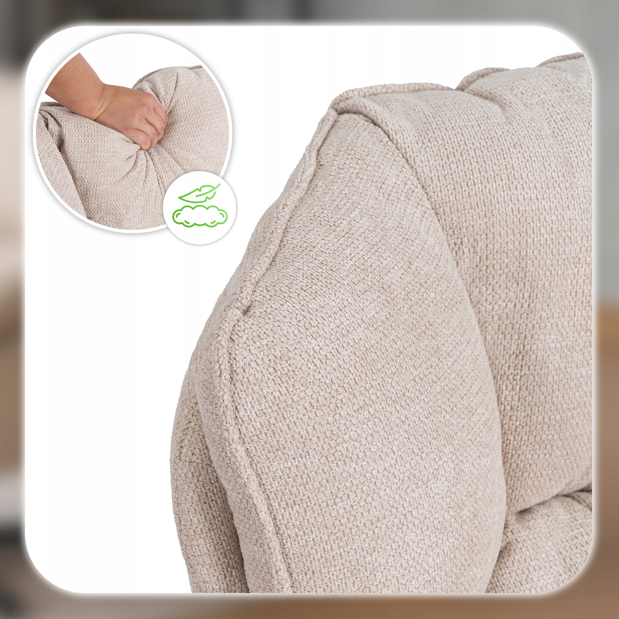 Nowoczesna forma, miękkie siedzisko i unikalne przeszycia sprawiają, że fotel przyciąga spojrzenia. Elegancka, kremowa tkanina pasuje do każdego wnętrza – od minimalistycznych aranżacji po luksusowe salony. Fotel ROSA zapewnia relaks na najwyższym poziomie.