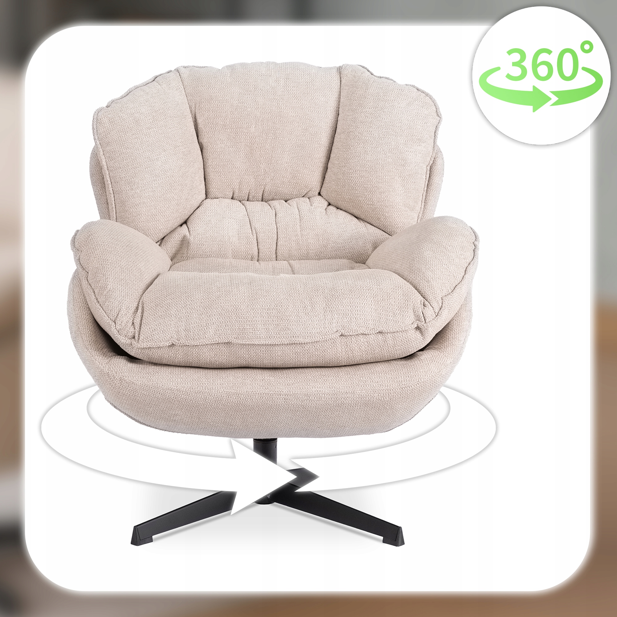 ✨ Fotel Obrotowy Wypoczynkowy Tapicerowany Do Salonu Sypialni Kremowy ROSA